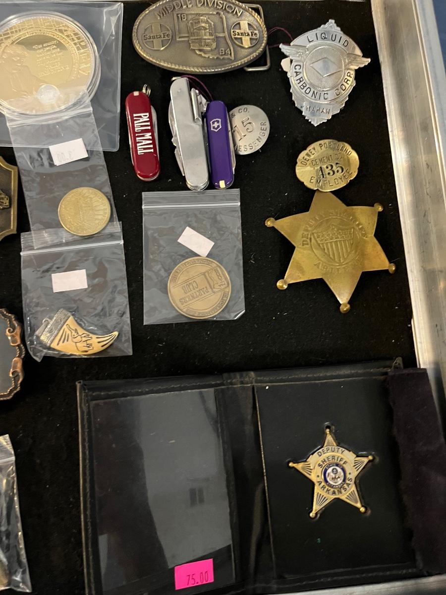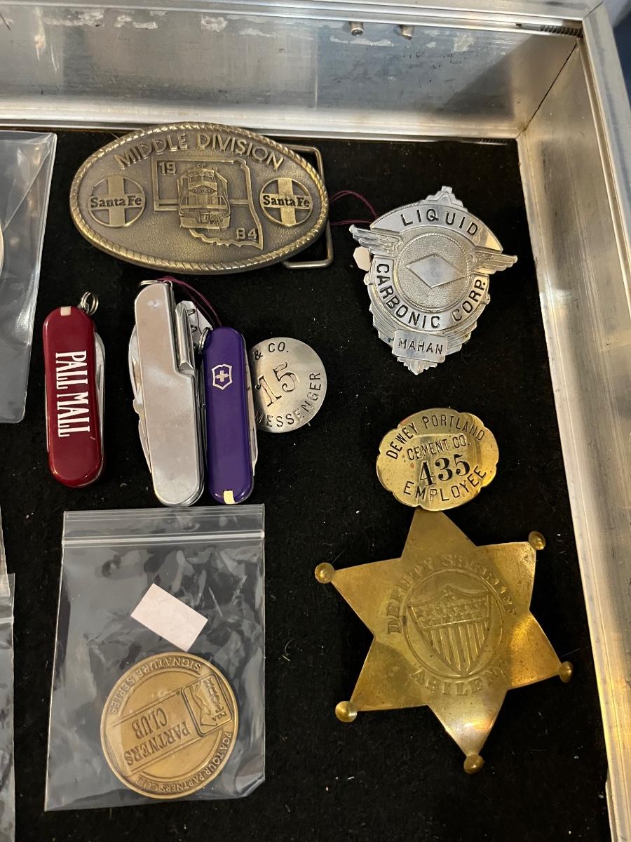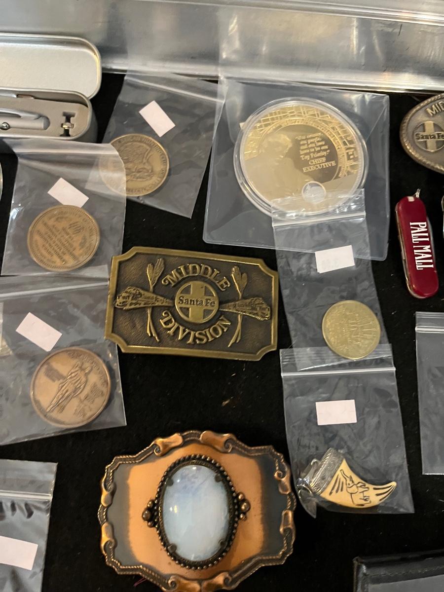 Belt Buckles, Collectors items, Vintage Badges and more.