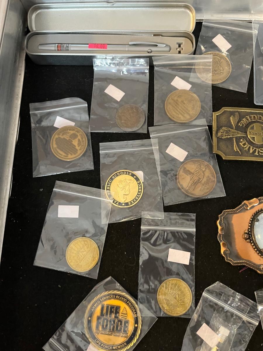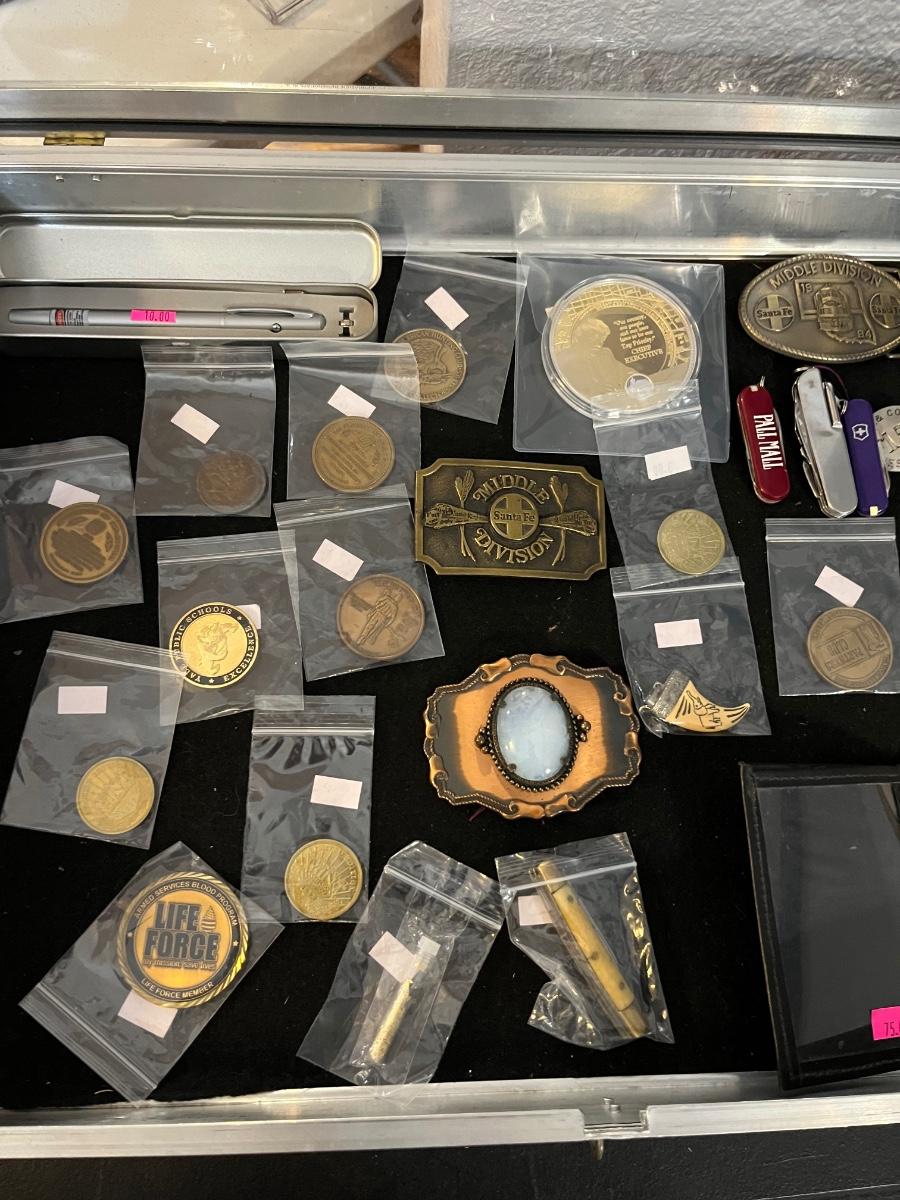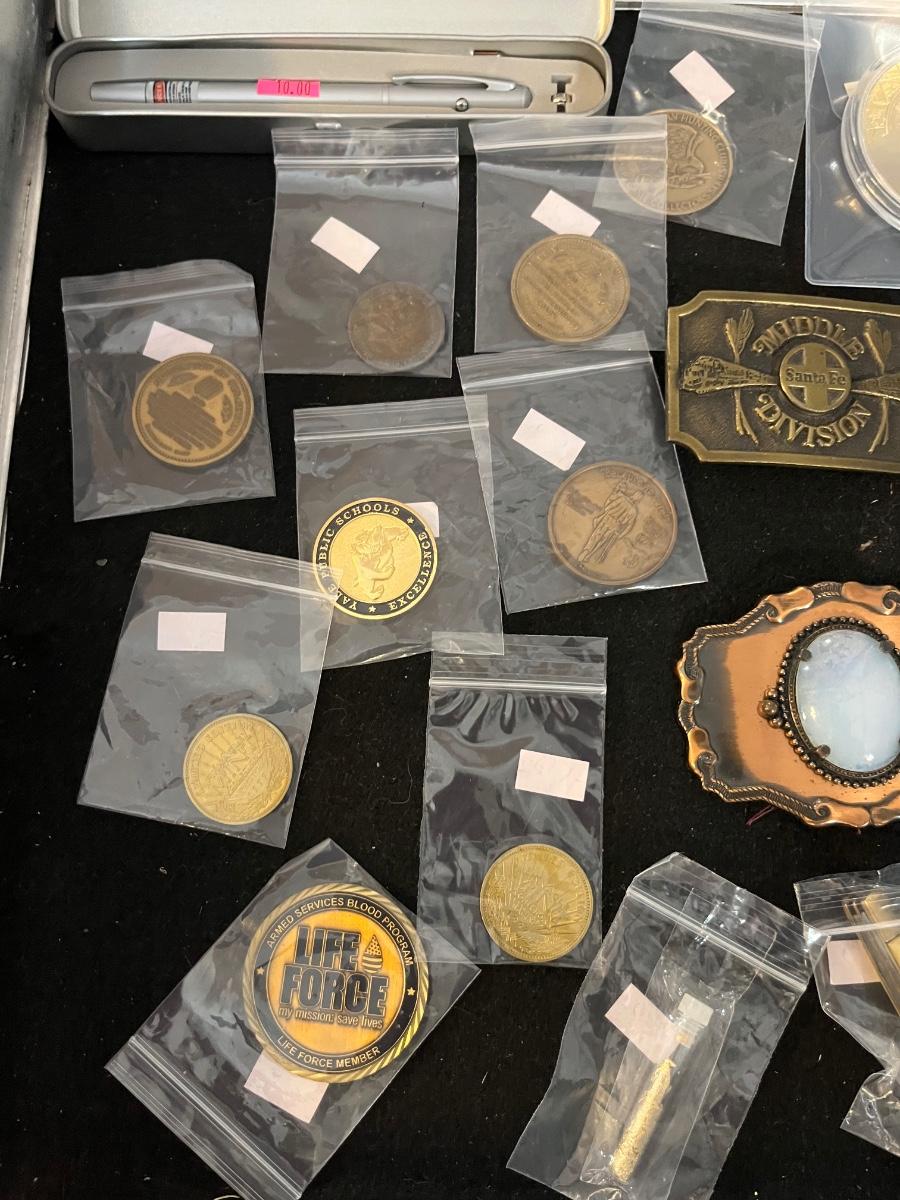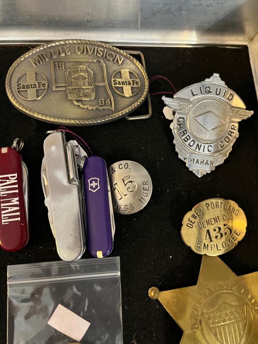Belt Buckles, Collectors items, Vintage Badges and more.
