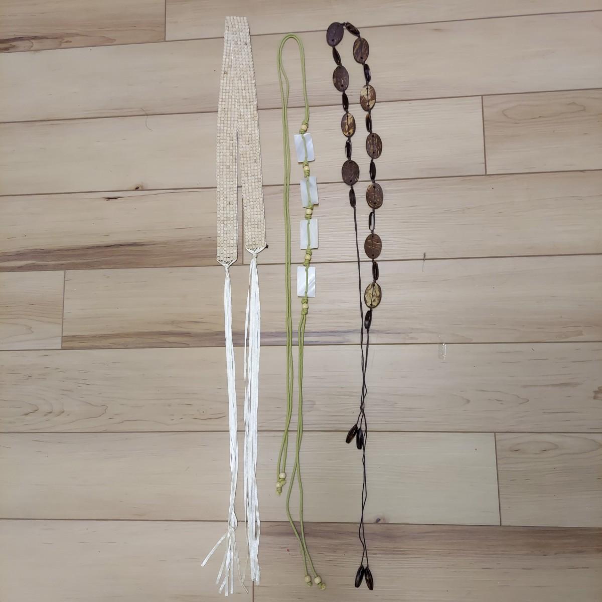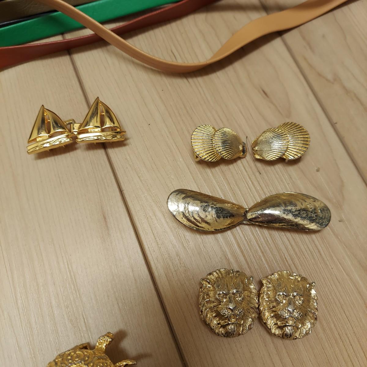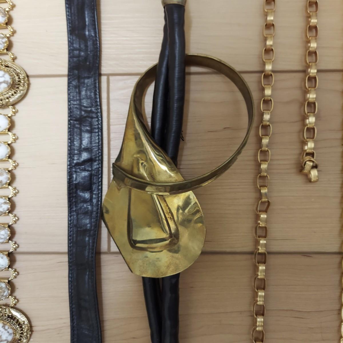 Various styles of vintage belts. Some may be more current but most appear to be vintage. There are many chain styles as well as several that have interchangeable belts and buckles. Most fit small to medium. Shipping available.