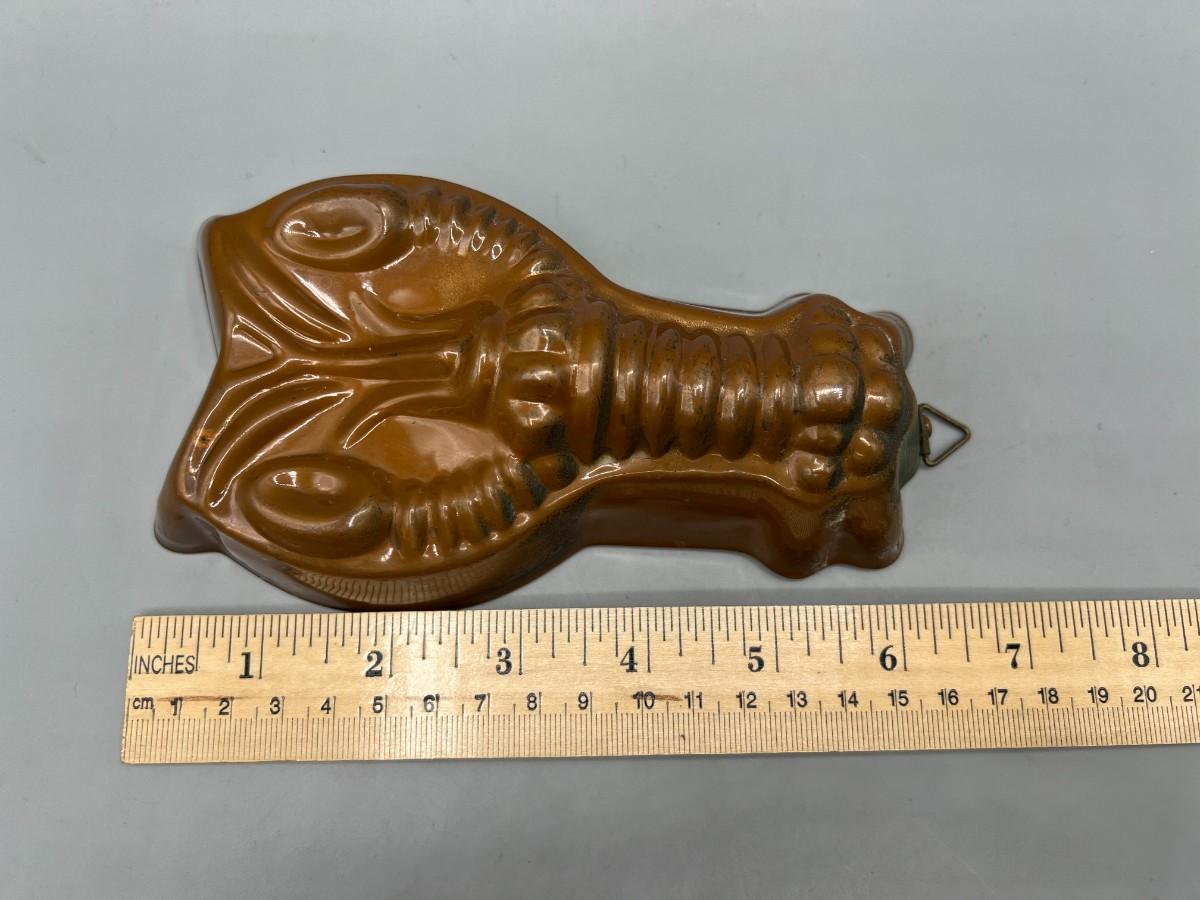 Vintage Benjamin and Medwin Copper Lobster Bakeware Mold, there is some light wear to the mold, but there is no signifncant damage and is in good vintage condition. Check pictures for more details and for sizing.