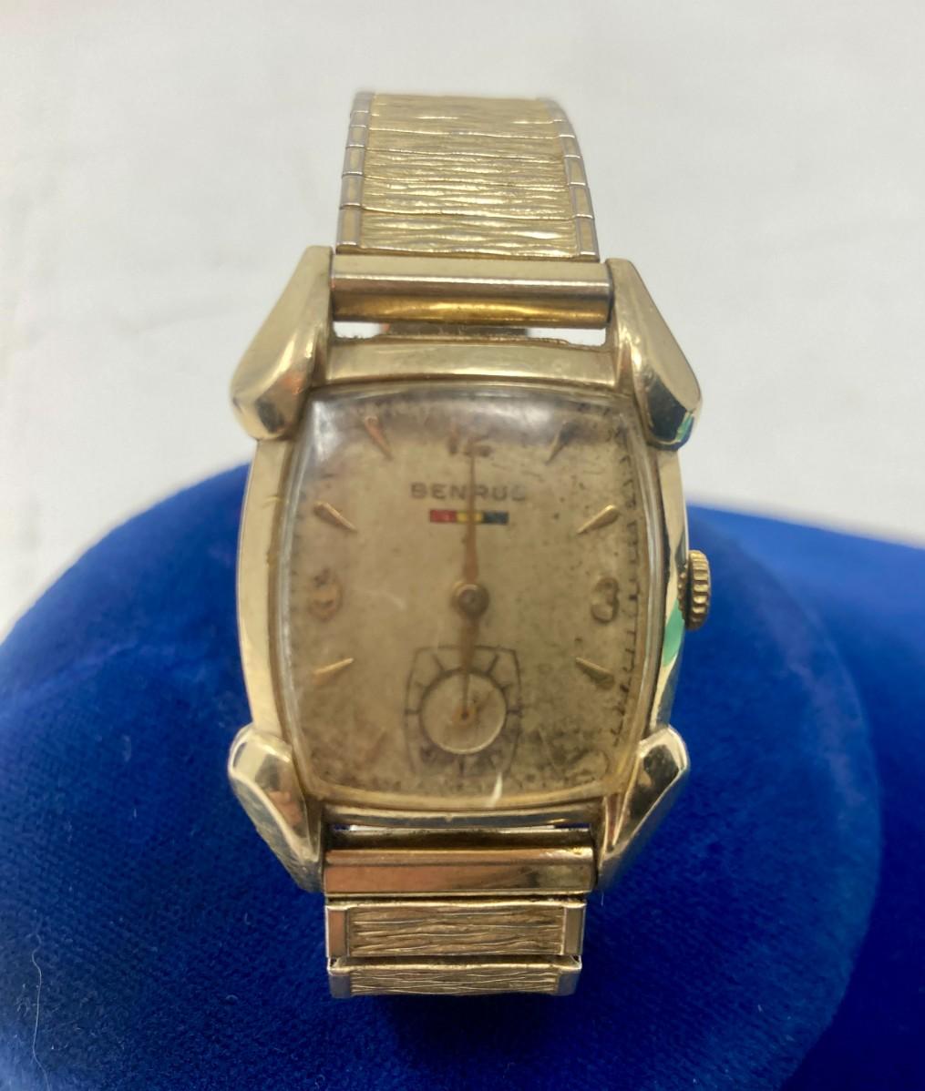 Vintage Benrus Men's 10K Gold watch w/ domed crystal - Not working