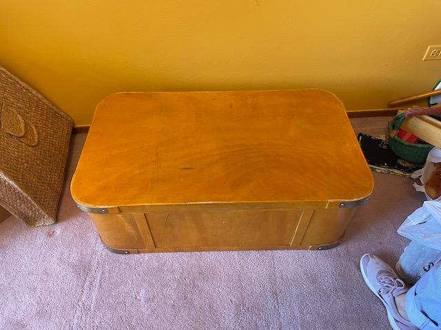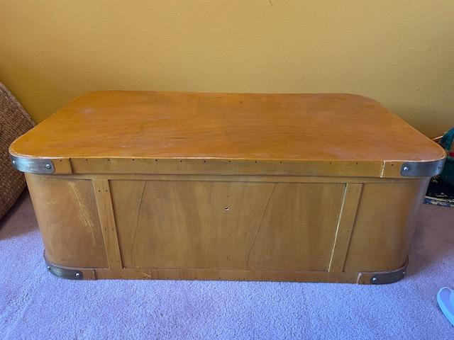 vintage bentwood large covered trunk 36x 20.5 x 12