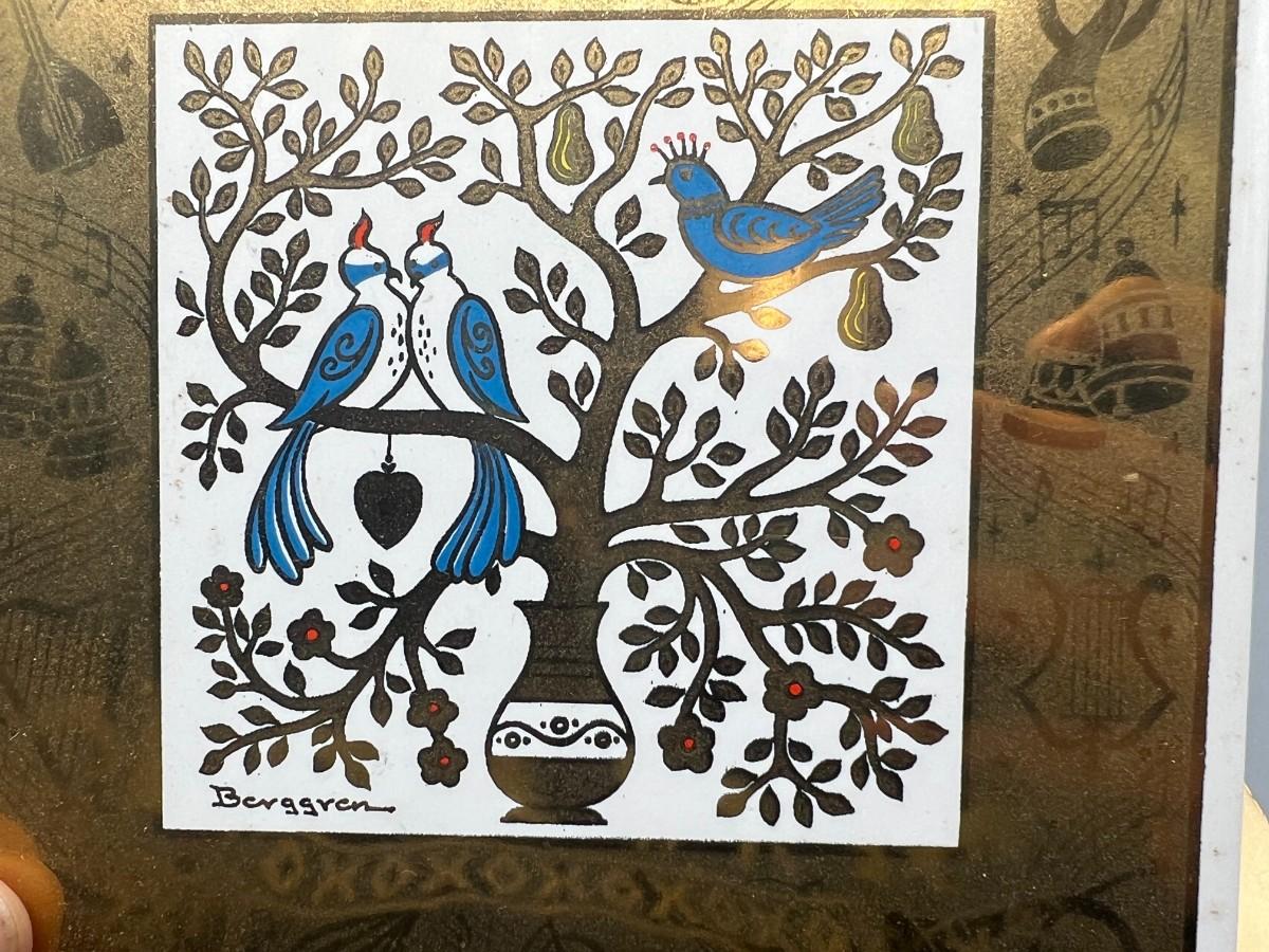 Vintage Berggren Christmas Holiday On The Second Day of Christmas Gold Trivet Tile