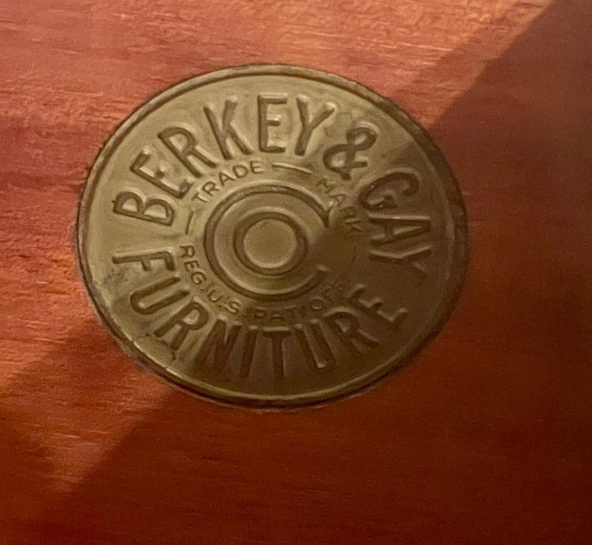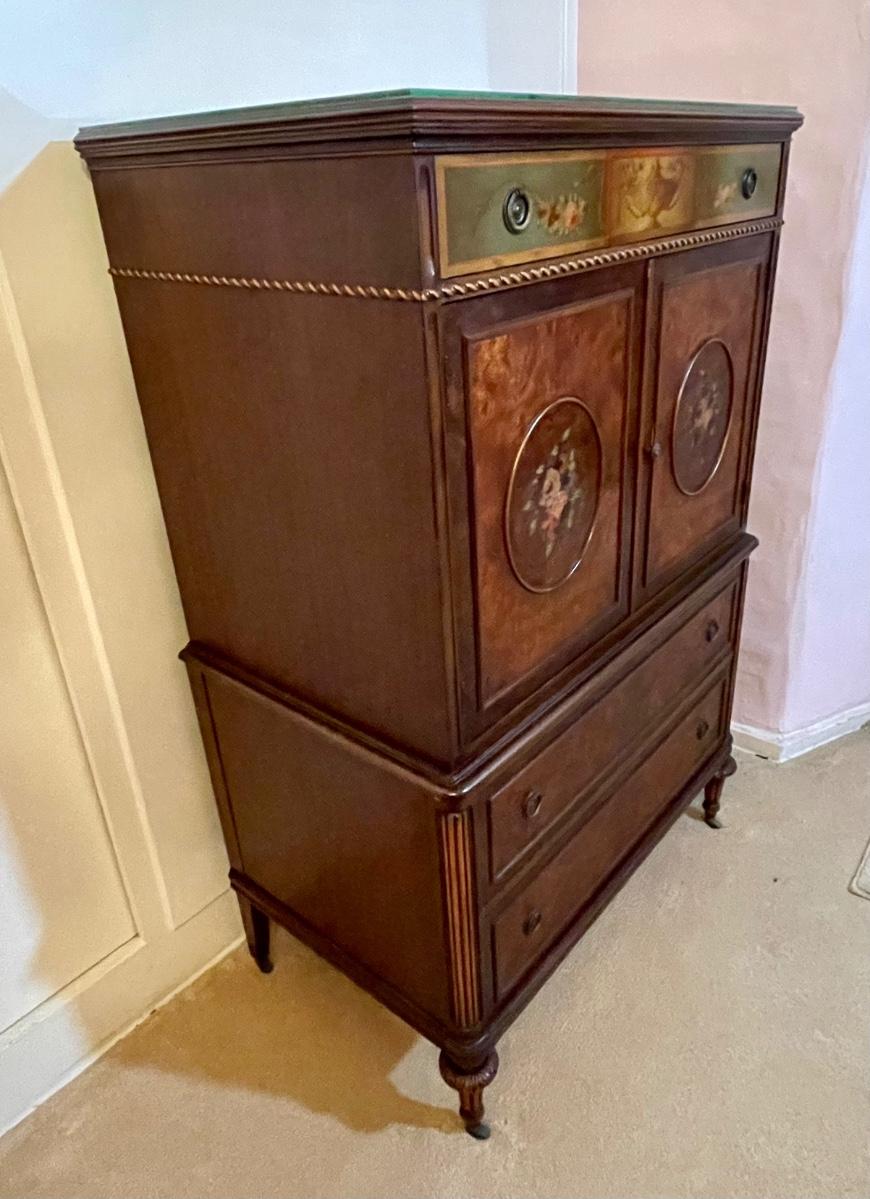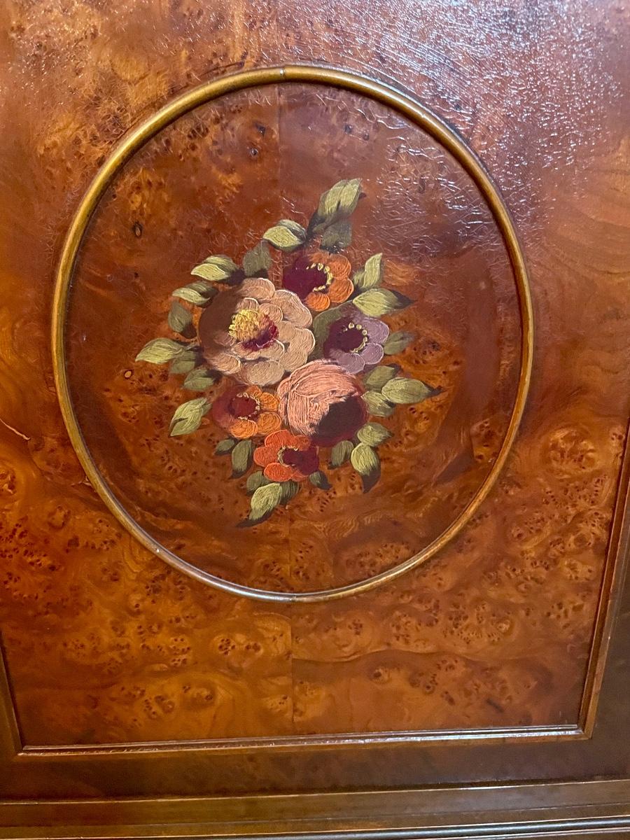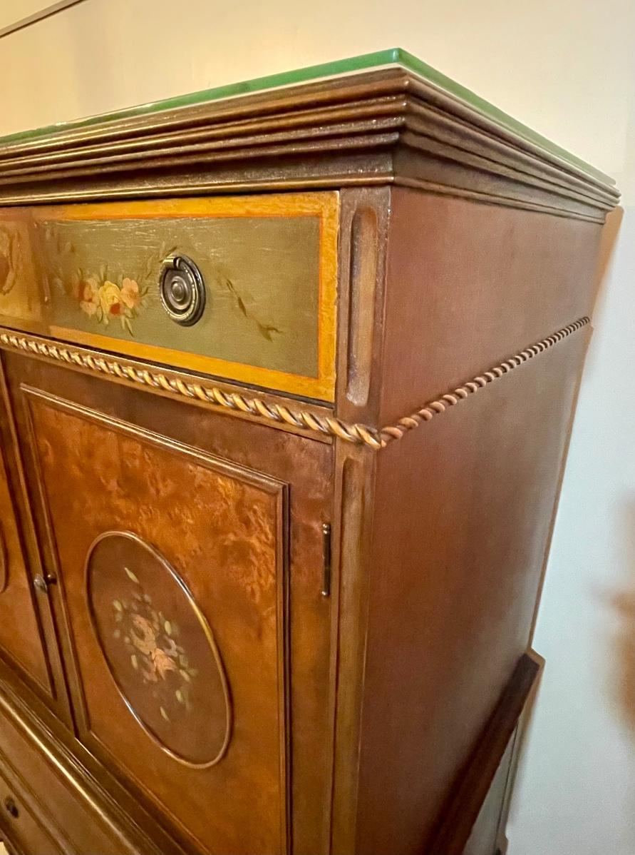 Vintage Berkey and Gay Tall Boy Painted Dresser Inlay Burl Wood and Mahogany
