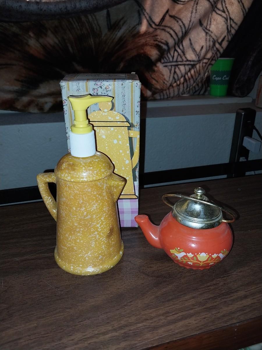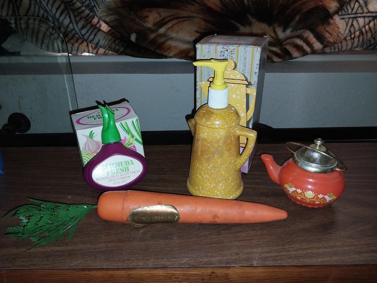 VINTAGE BERMUDA FRESH MOUTHWASH-COFFEE POT HANDLOTION-CARROT AND TEAPOT