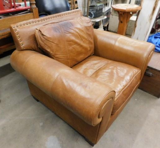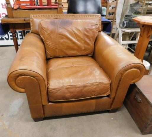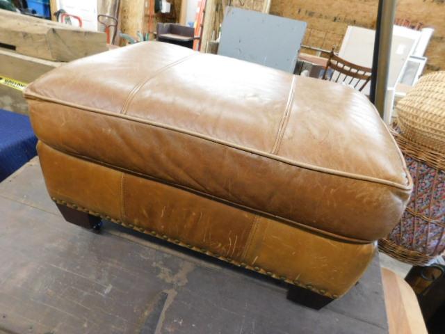 Vintage Bernhardt Leather Chair with Matching Ottoman (See all Pictures) has some fading and age but comfortable