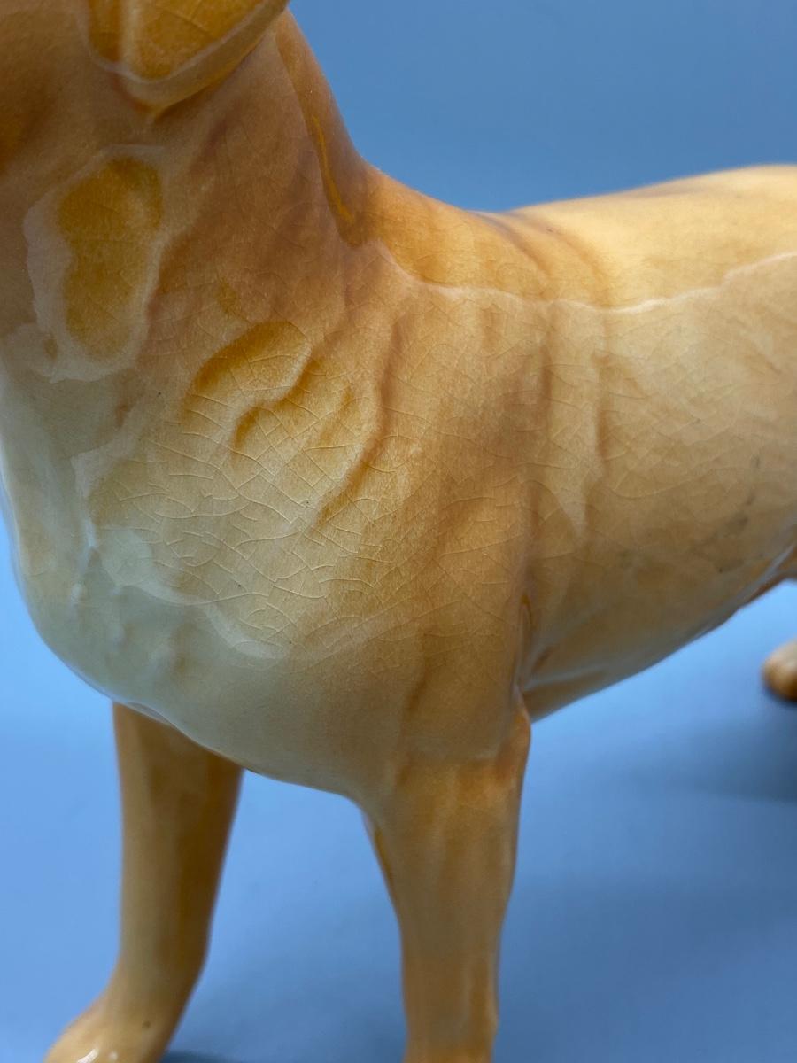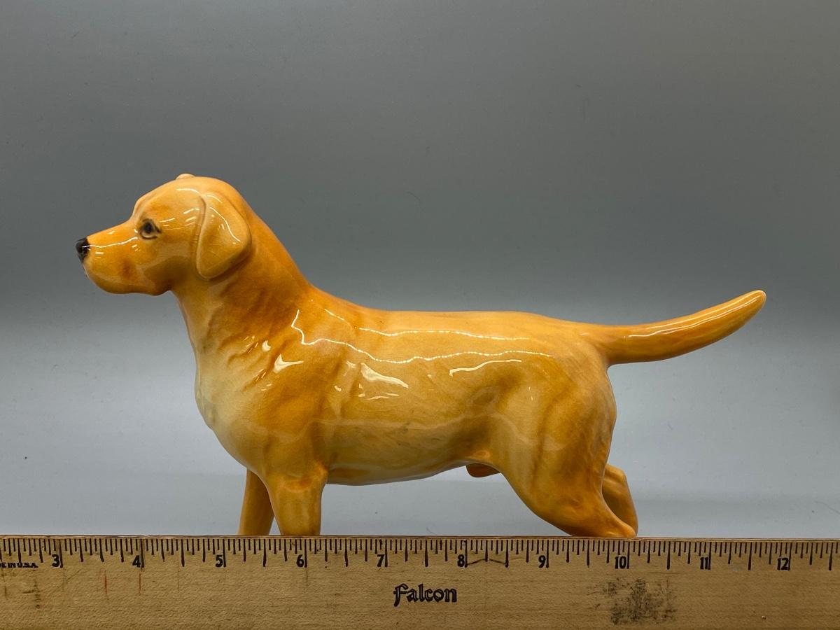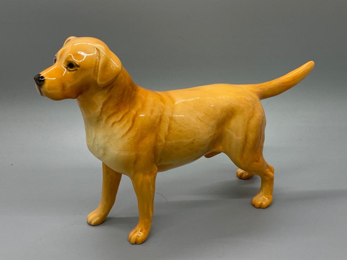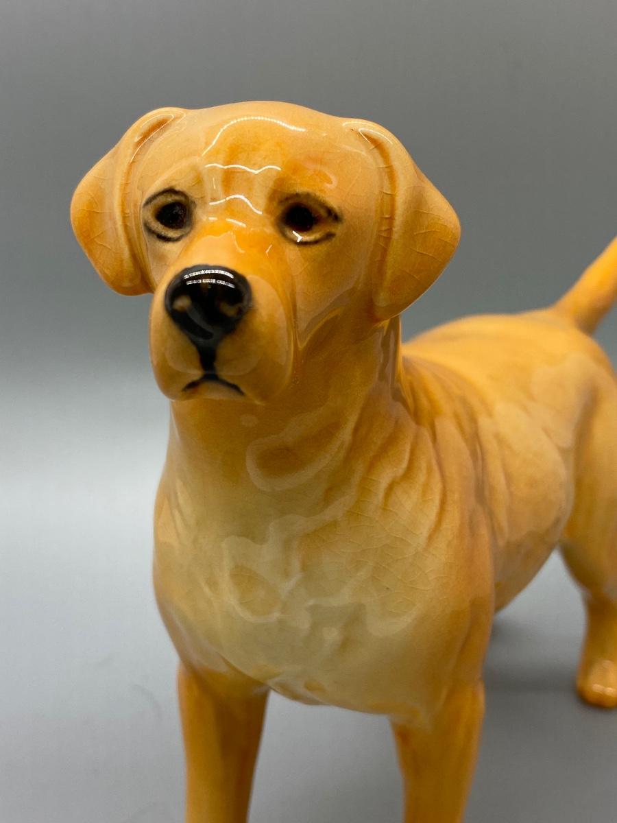 Vintage yellow lab figurine. Made by Beswick England. Marked on the feet. In good condition, but there is crazing from age. Good size, about 8" length and 6" tall.
