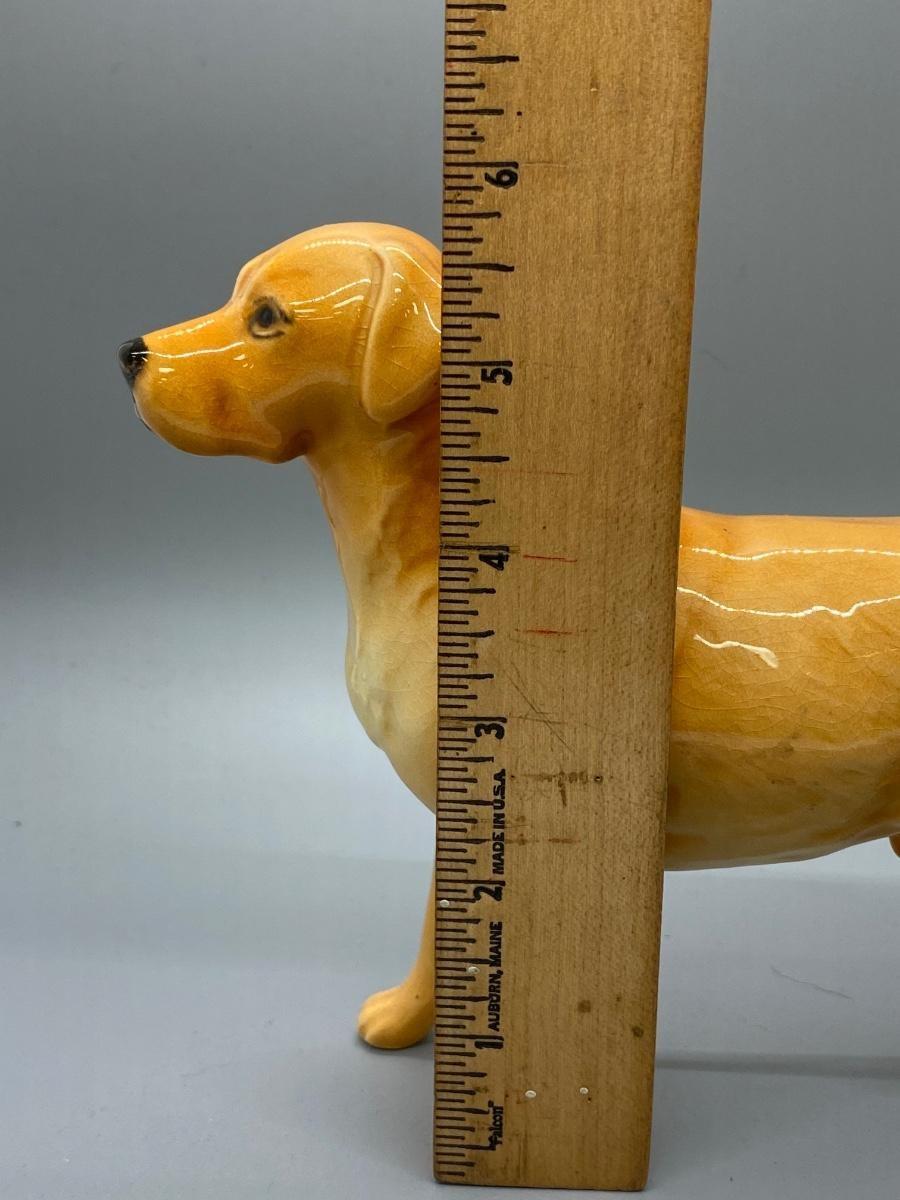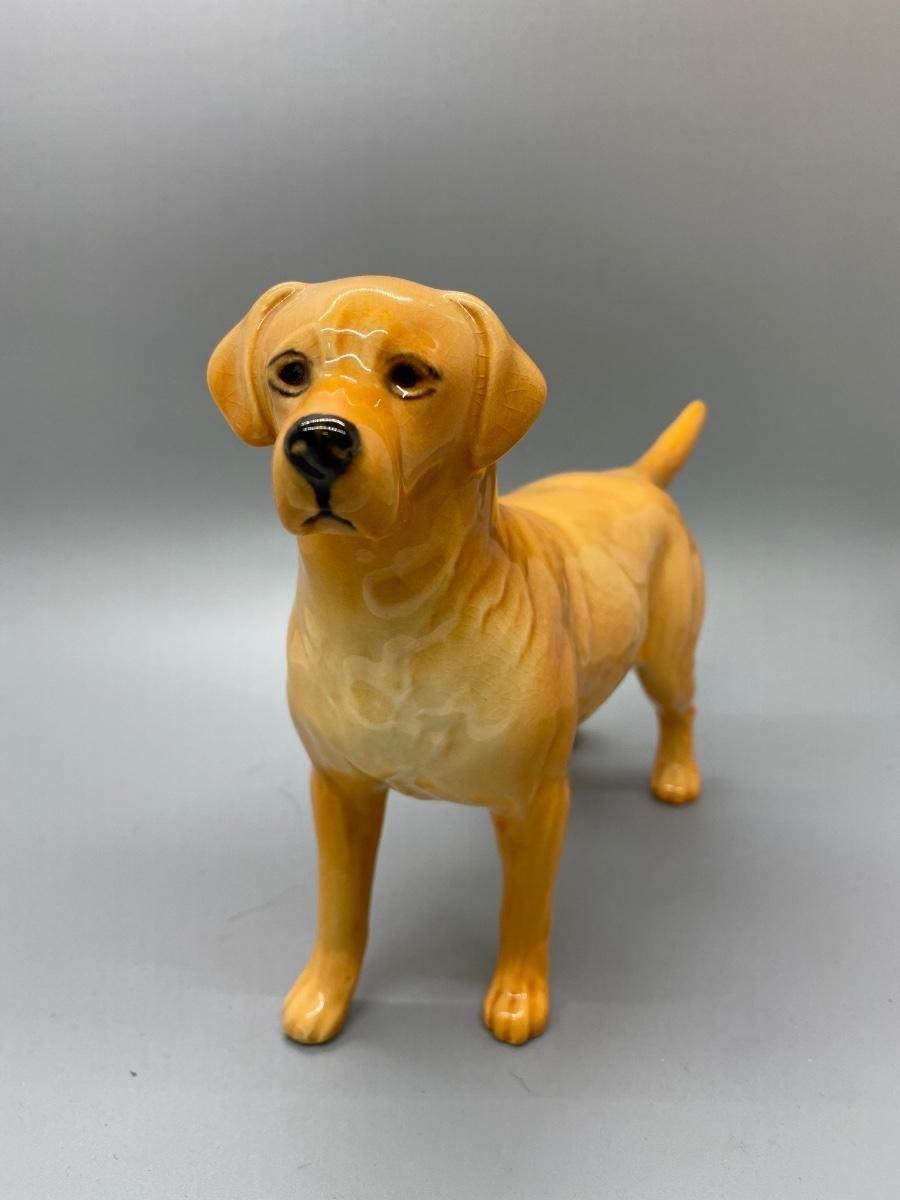 Vintage yellow lab figurine. Made by Beswick England. Marked on the feet. In good condition, but there is crazing from age. Good size, about 8" length and 6" tall.