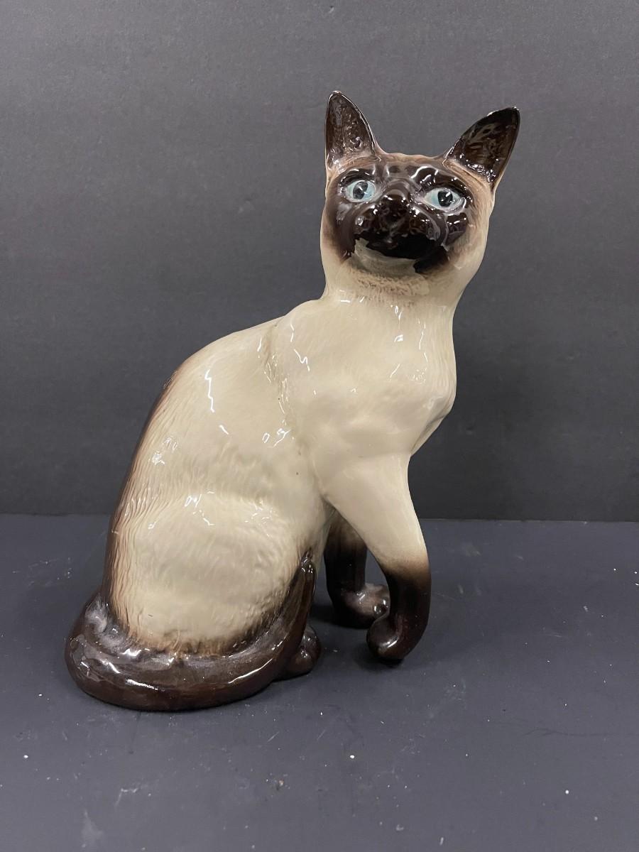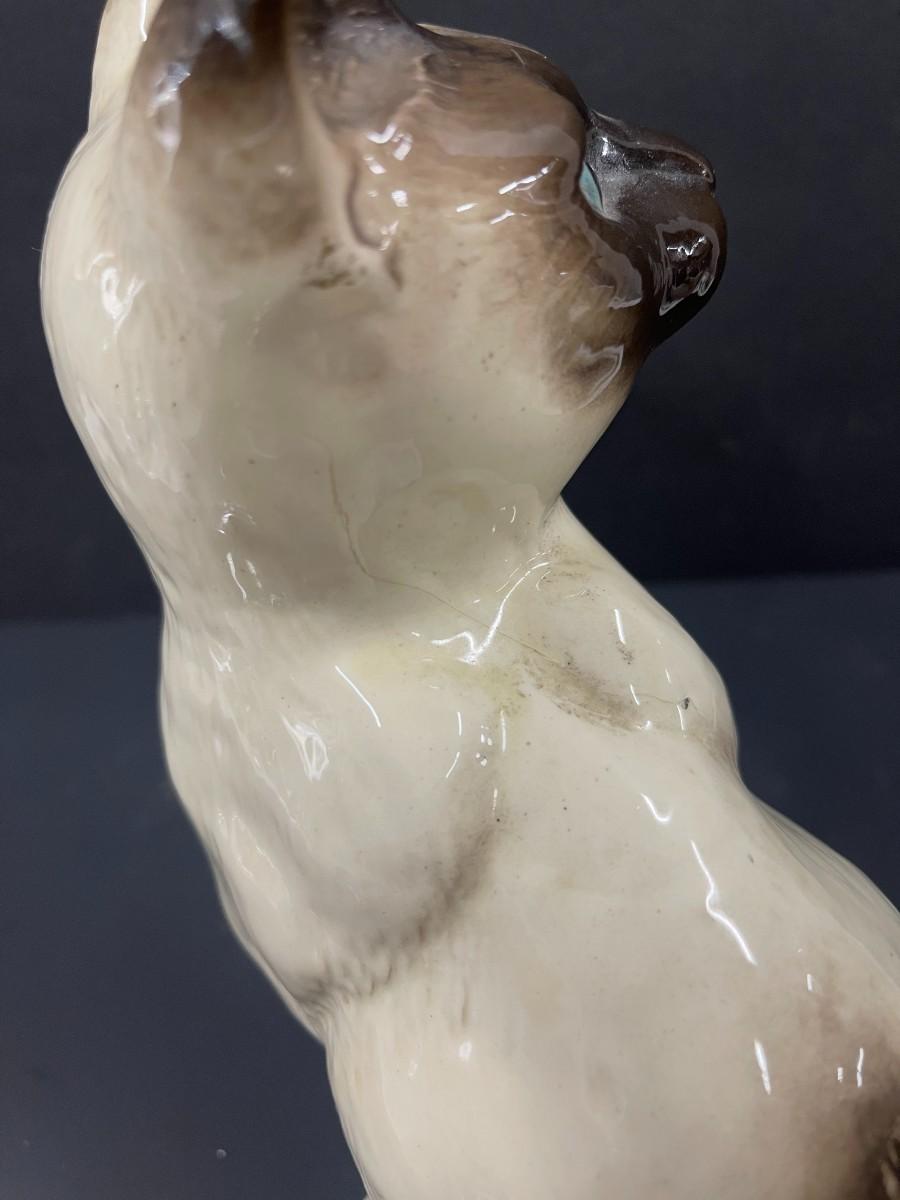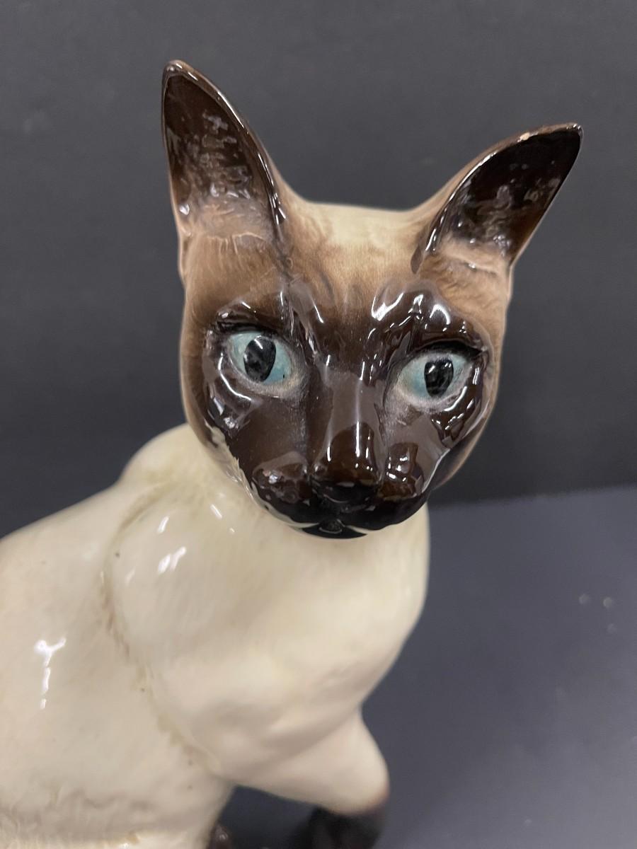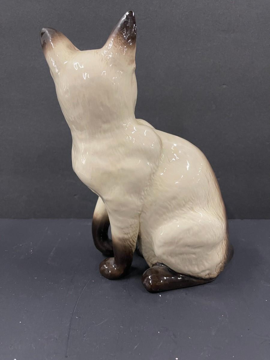 Vintage Beswick Porcelain Siamese Cat Figure. Has what appears to be a minor crack along its back. Please examine photos carefully. 9"