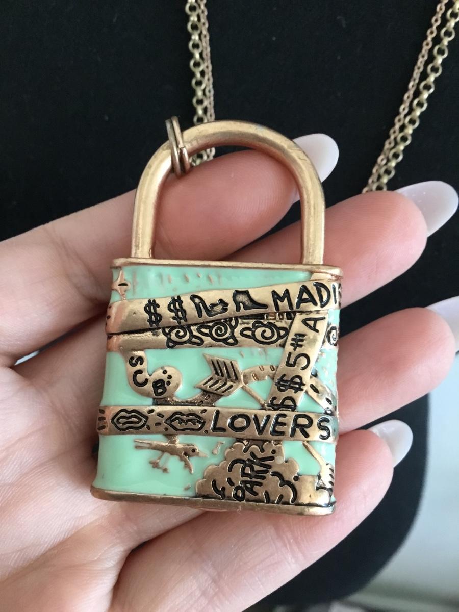 Vintage Betsey Johnson, lovers log gold tone, chain necklace