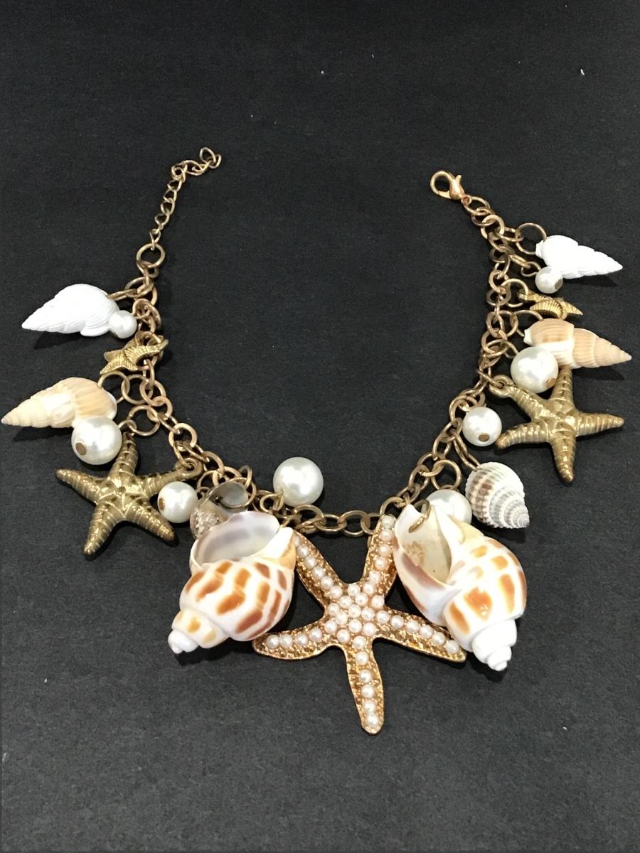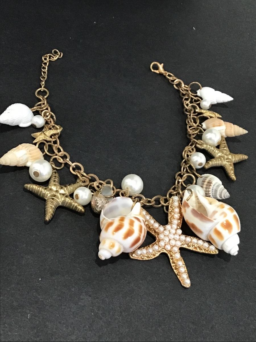 Vintage Betsey Johnson, seashell, starfish, anklet bracelet, beach, jewelry