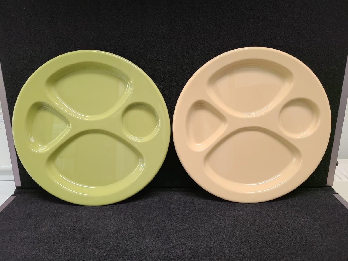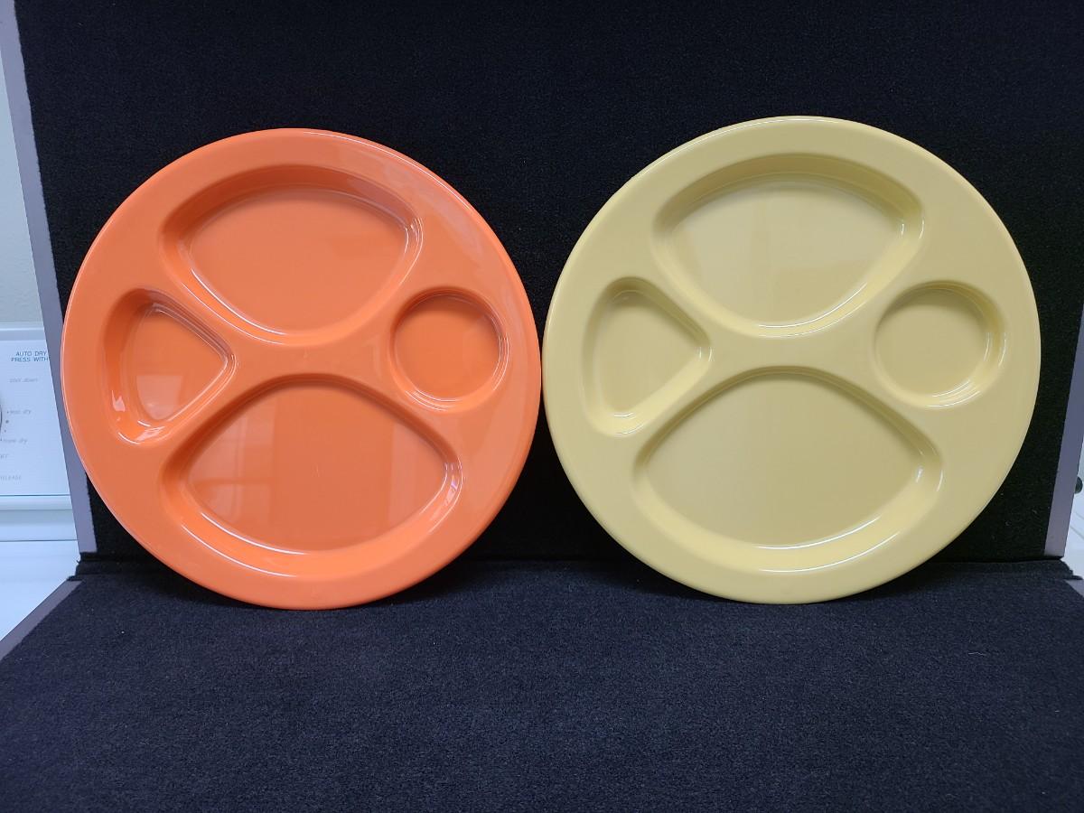 Never Used, Set of 4 Large Divider Plates & 4 Matching Thermi-Cups .No. 575 . Comes with original box that is not in great condition. See pics.