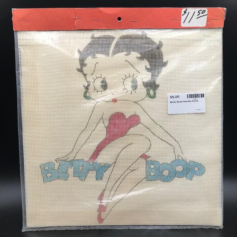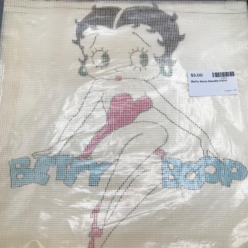 One vintage Betty Boop needlepoint that’s still sealed in its original packaging. Needlepoint itself measures 12“ x12”.