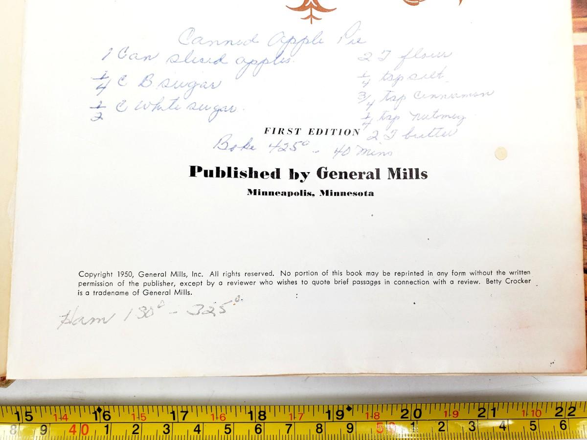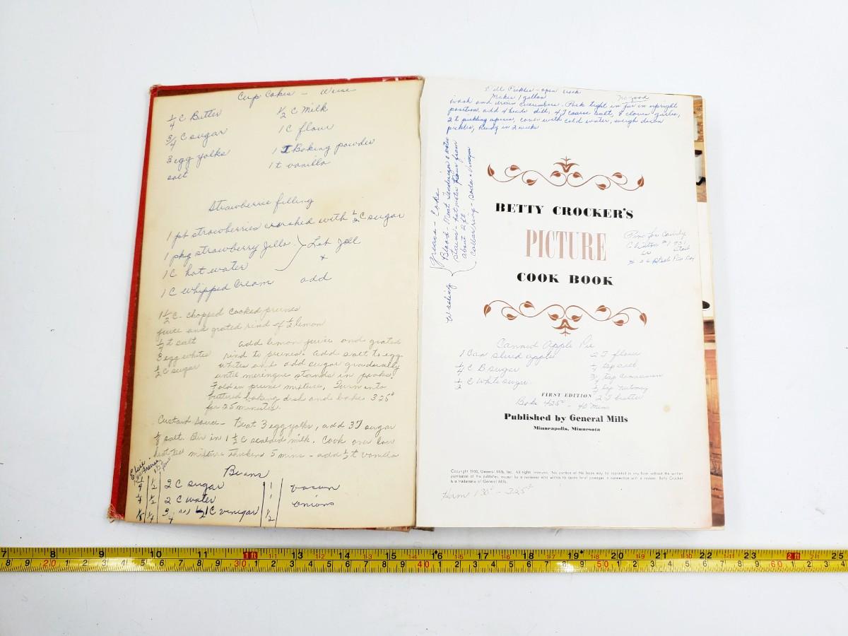 Vintage Betty Crocker's Picture Cook Book hardback published by General Mills, spine has been taped and some of the pages near the front of the book have begun to pull away from the spine, see photos. Recipes have been hand written on inside of front and back cover, see photos.