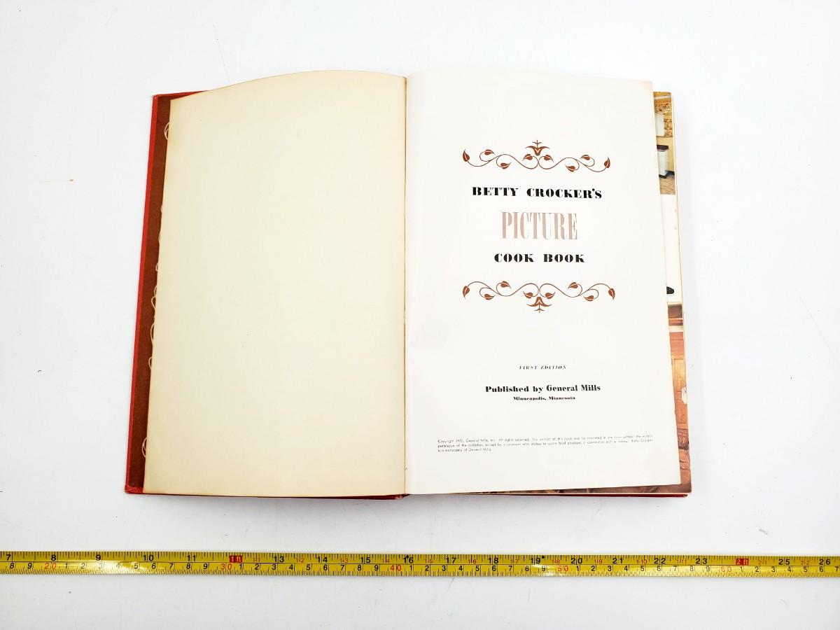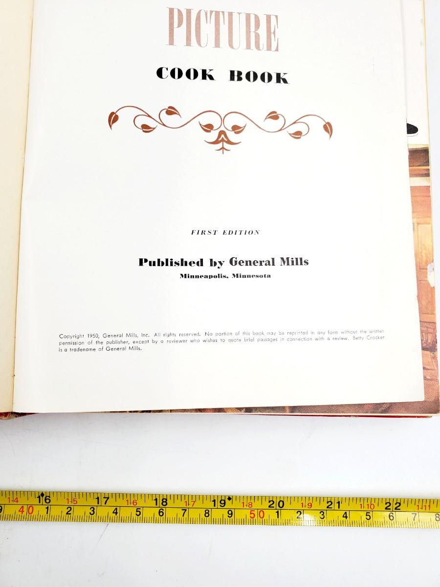 Vintage Betty Crocker's Picture Cook Book hardback published by General Mills, copyright 1950 First Edition, some wear around the edges of Book but no tape on spine and spine seems to be in good overall condition for age. Some pencil writing on inside of front cover. This book seems to be in good overall condition and an excellent addition to any collection!