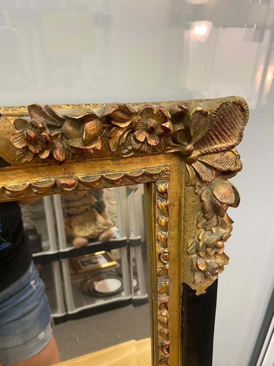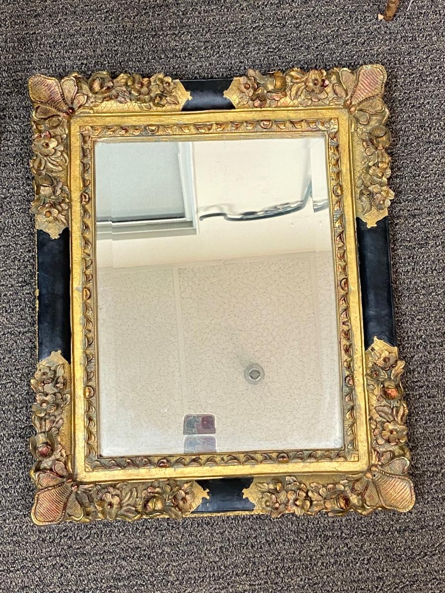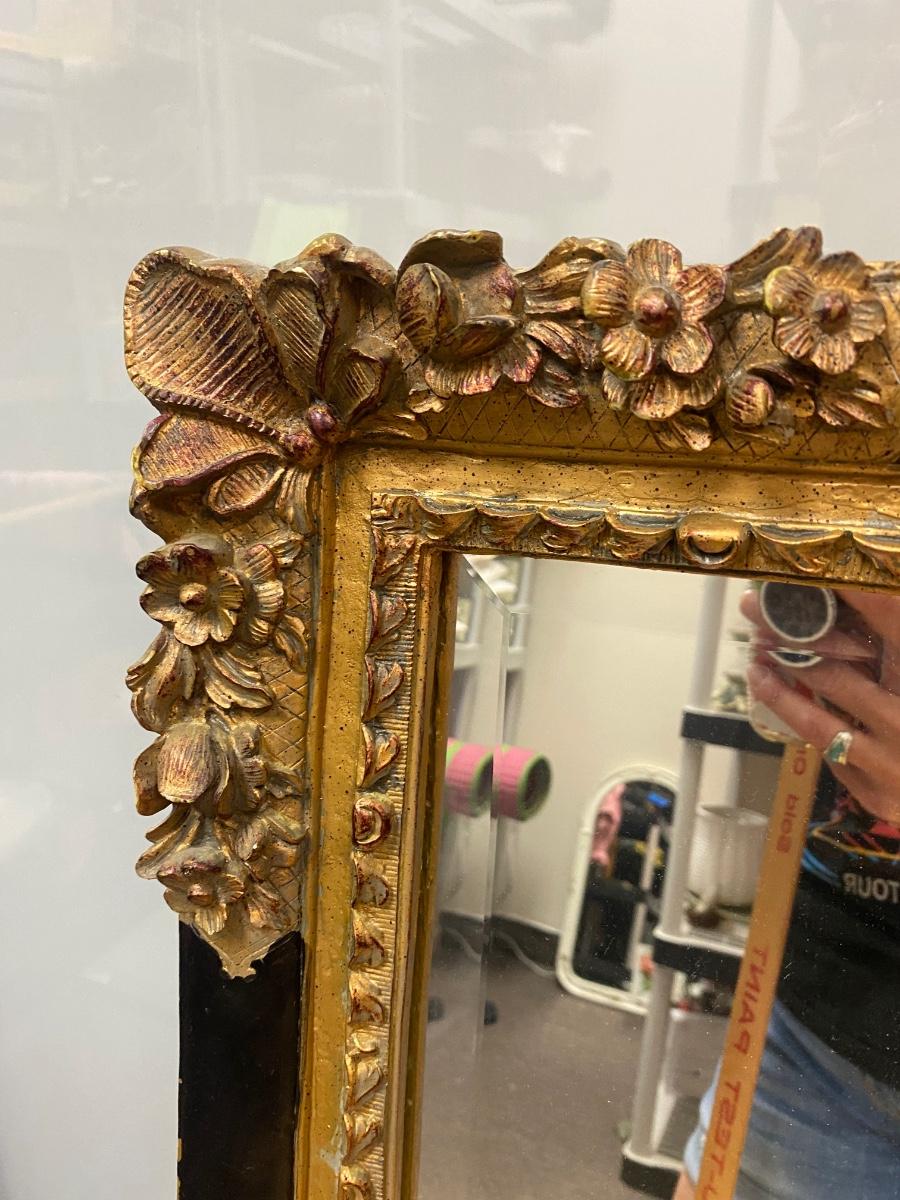 Vintage Beveled Glass Mirror with Ornate Black & Gold Frame