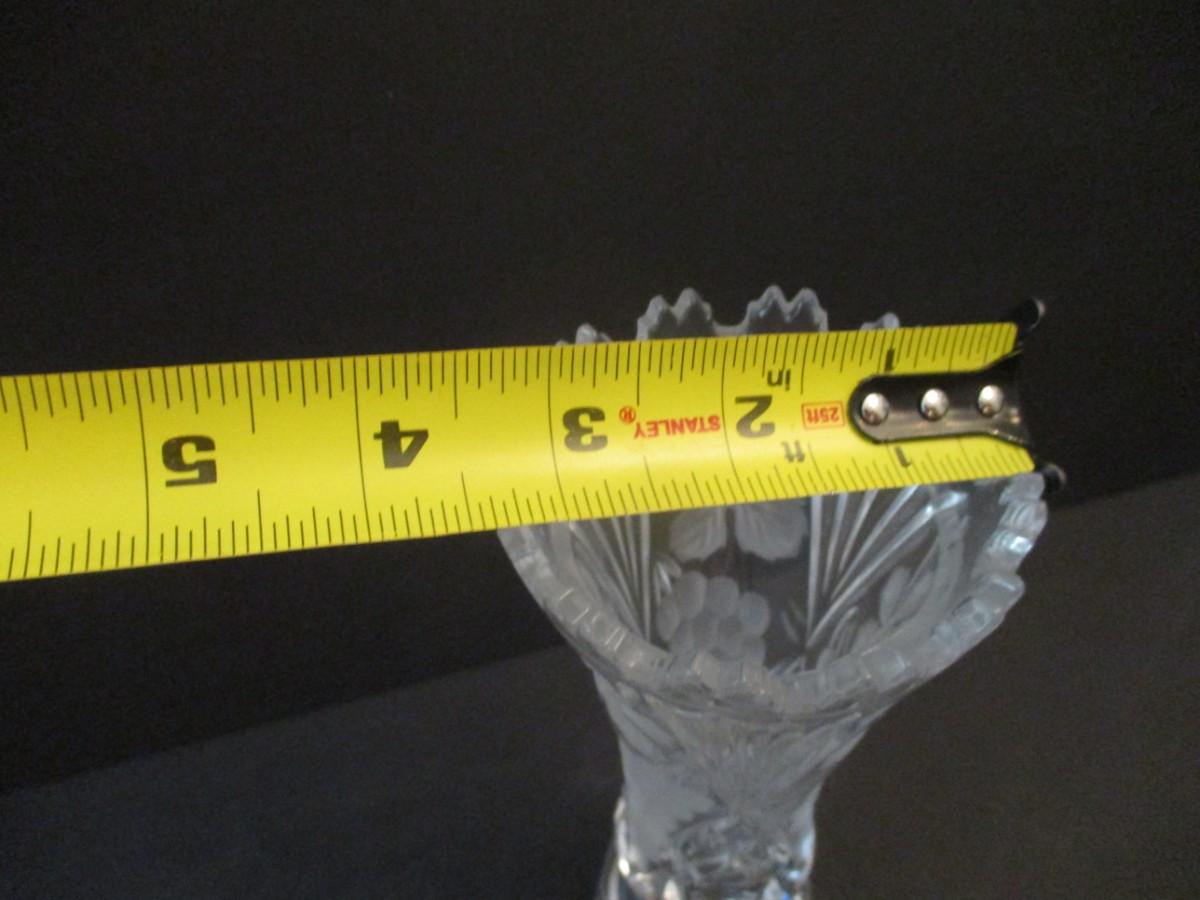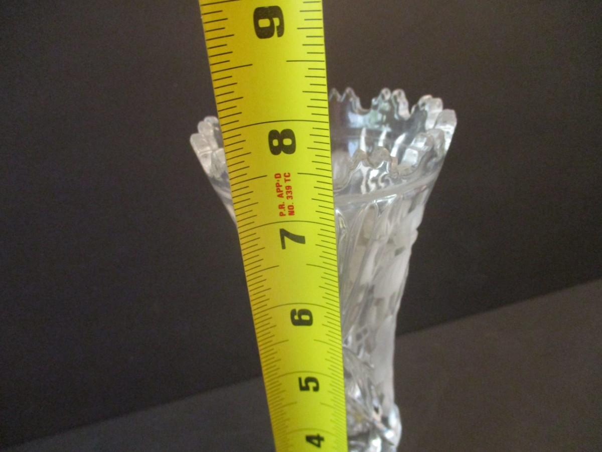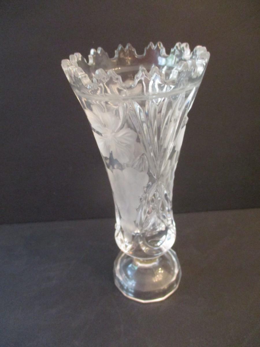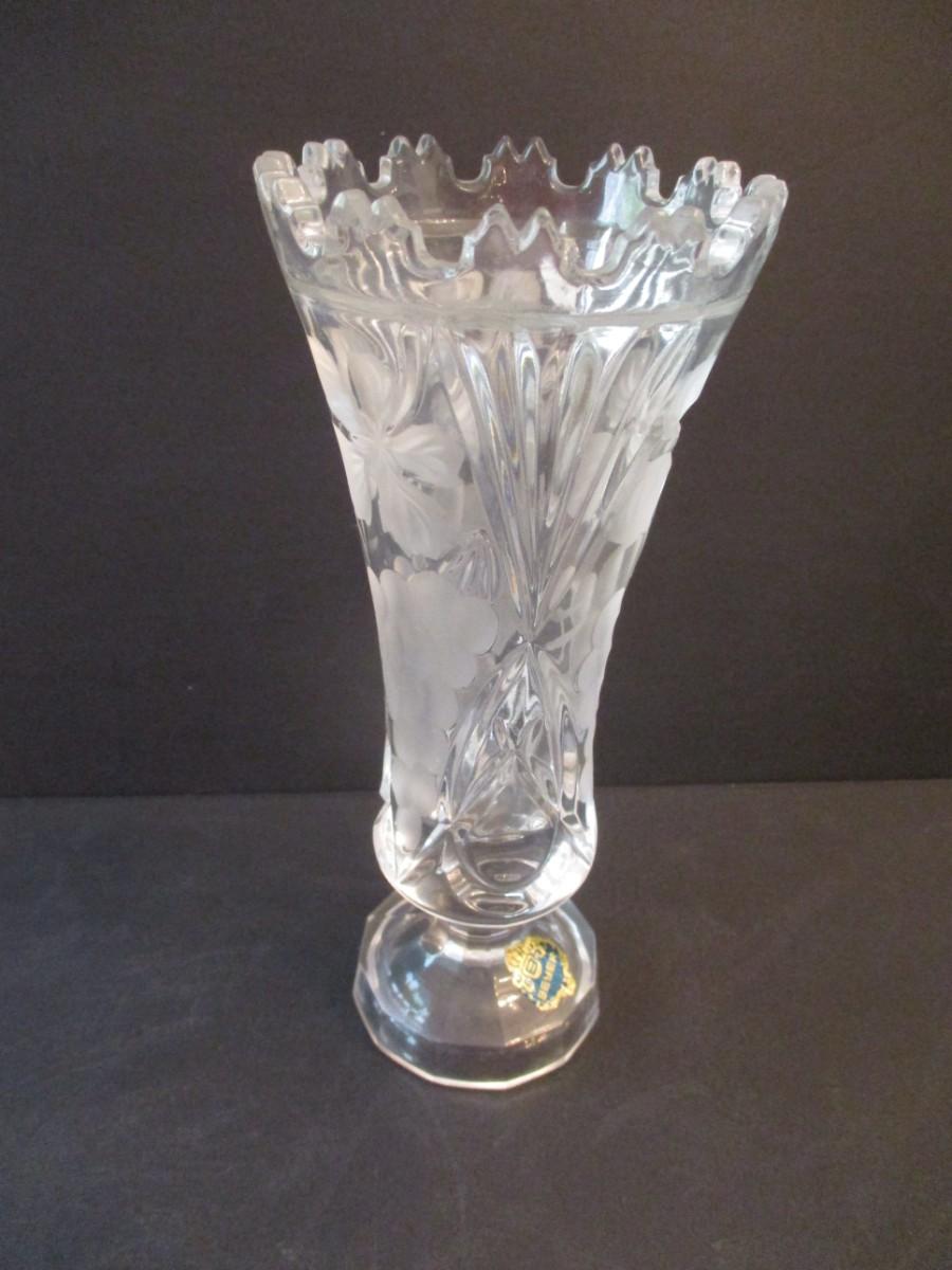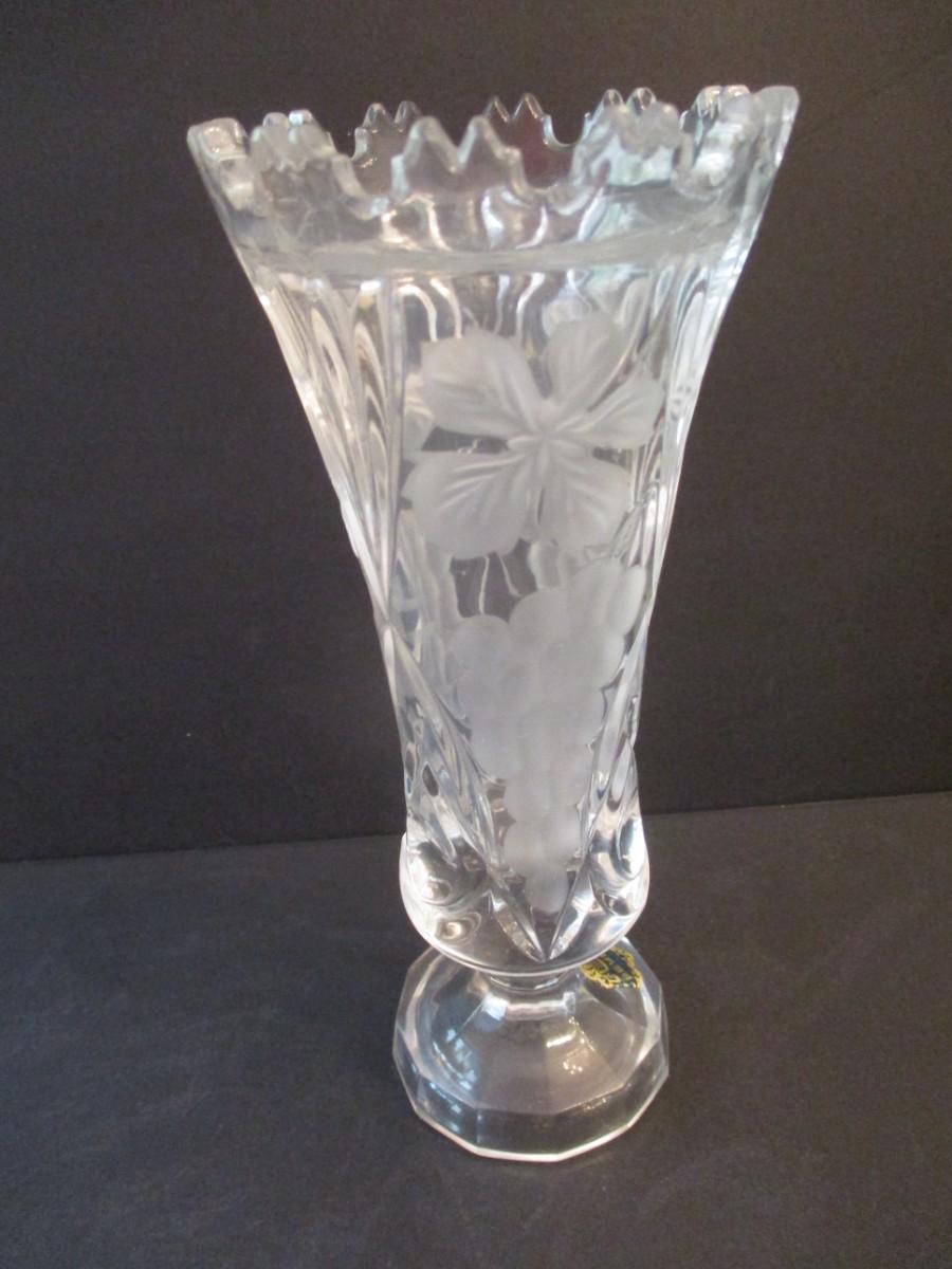 Vintage Beyer Lead Crystal Glass Vase With Leaves & Grapes Approx 7 1/2" Tall