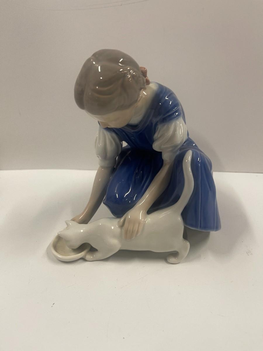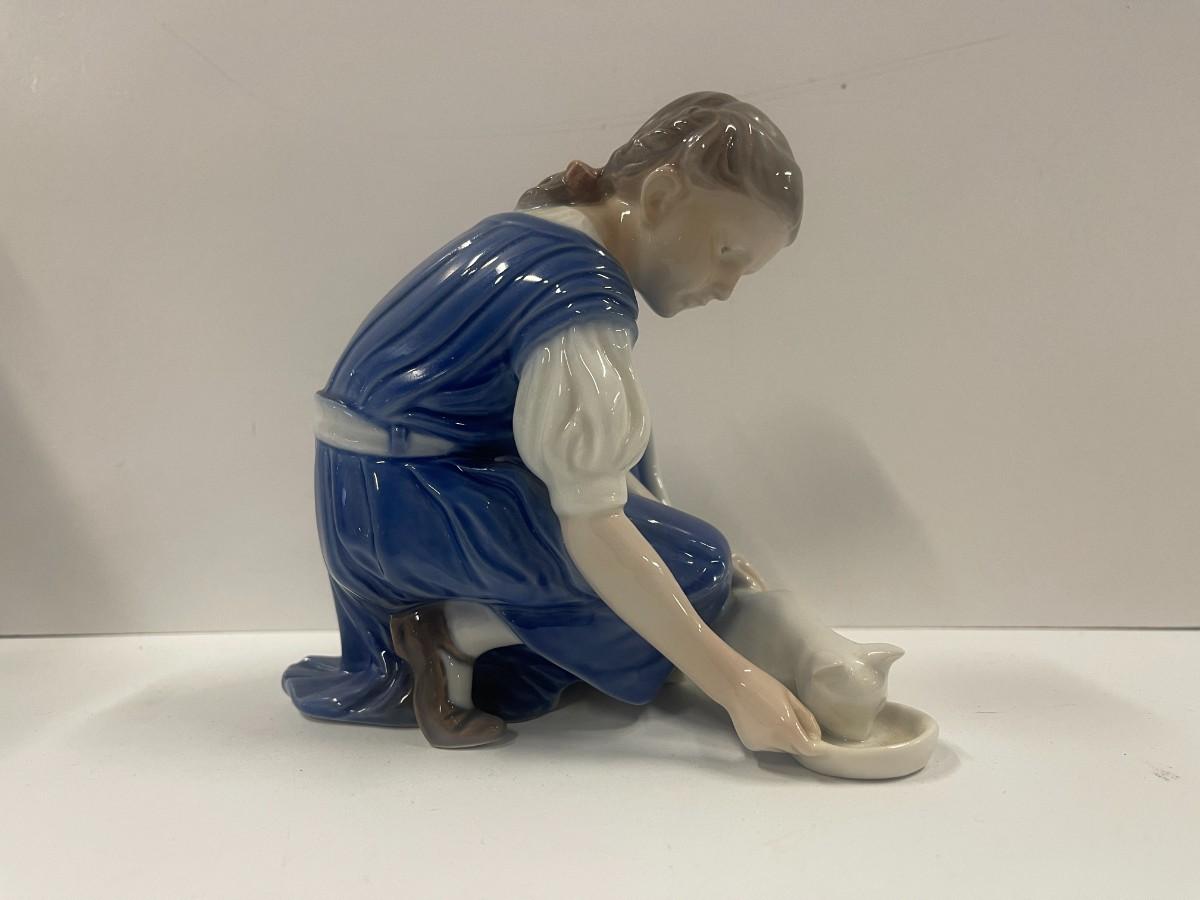 Vintage B&G Bing & Grondahl Porcelain Figurine -Girl with Cat