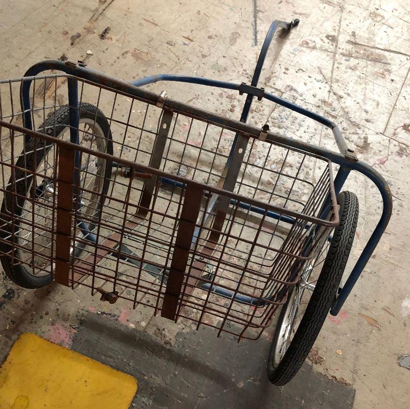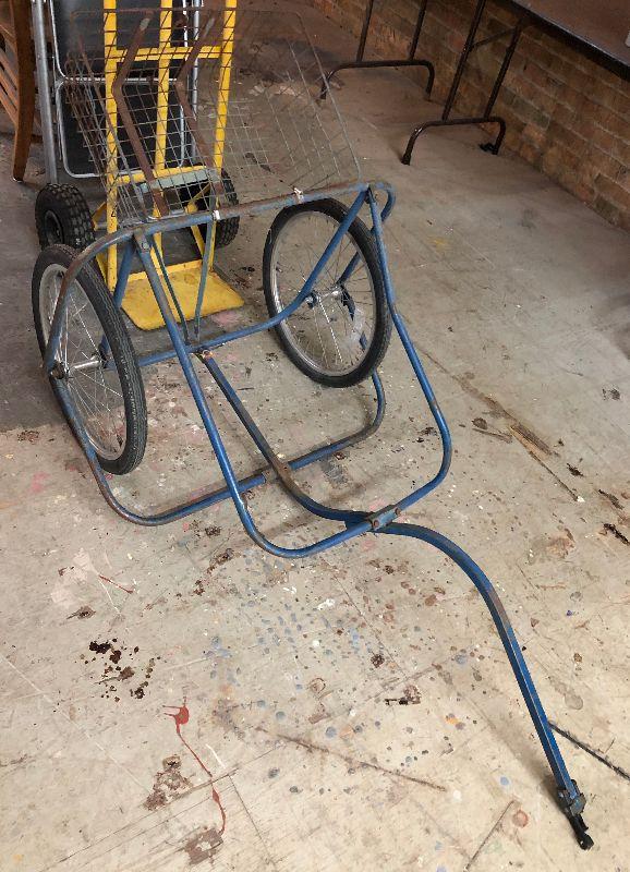Pneumatic tires and a large basket on this bike trailer...Used condition...