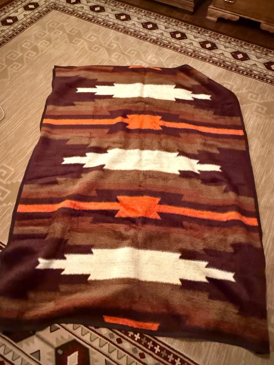 Vintage Biederlack brown/orange Acrylic/Cotton Blanket