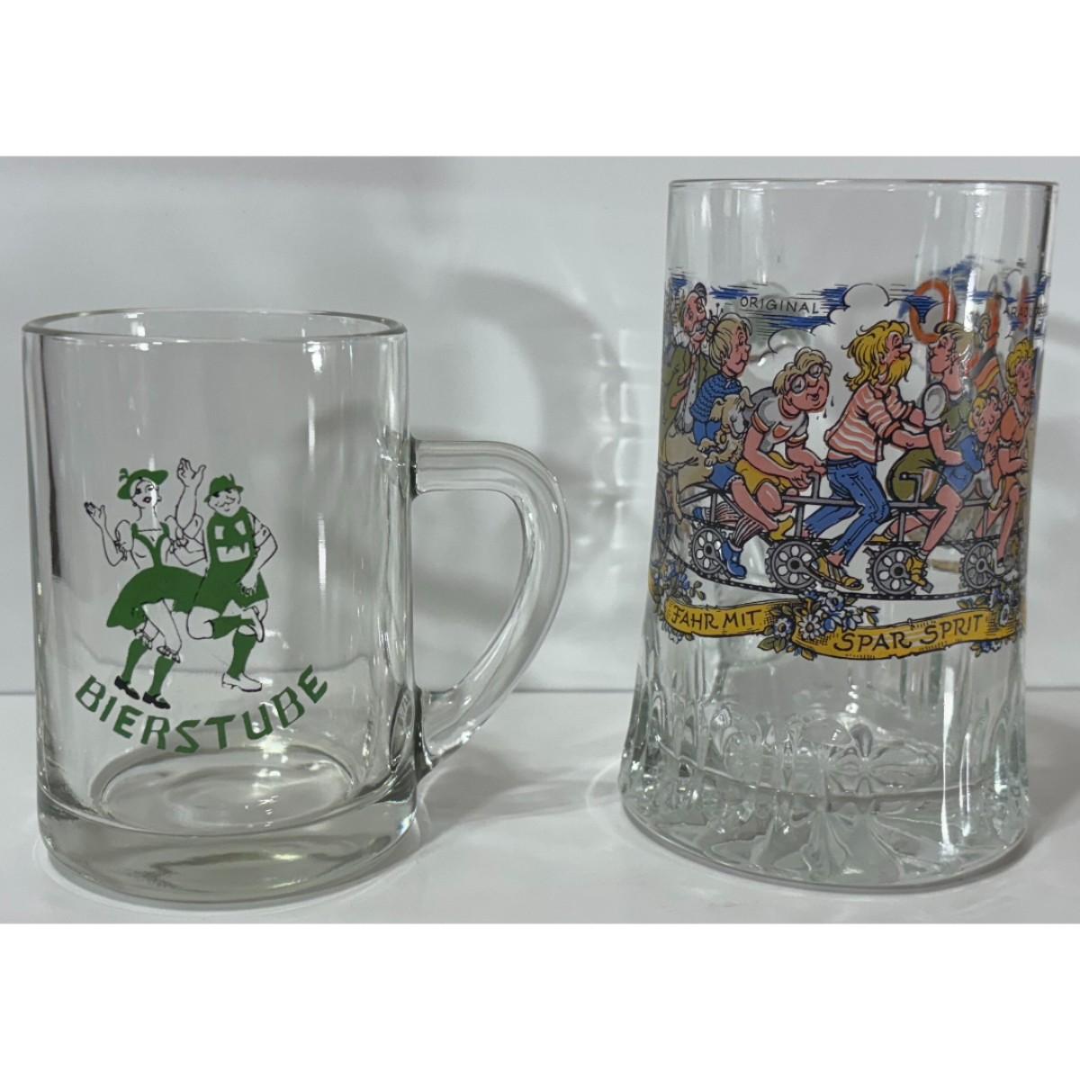 Vintage Bierstube & Radlerseidel Beer Glasses German Bar Cyclist Bicycle Dancing