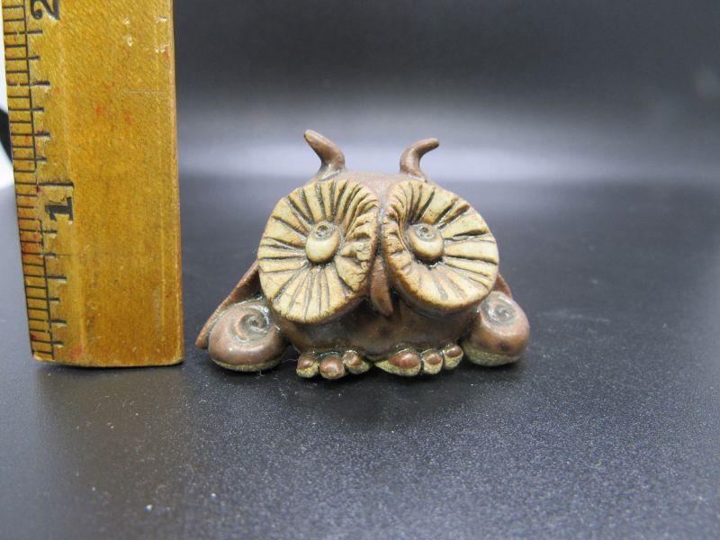 Cute vintage big eyed owl figurine. Miniature size, just over an inch. Unmarked.