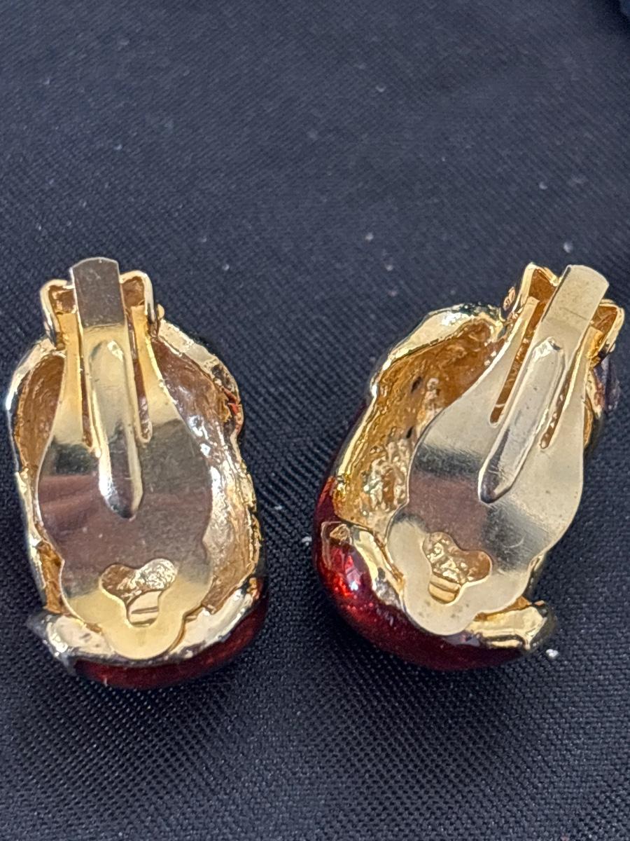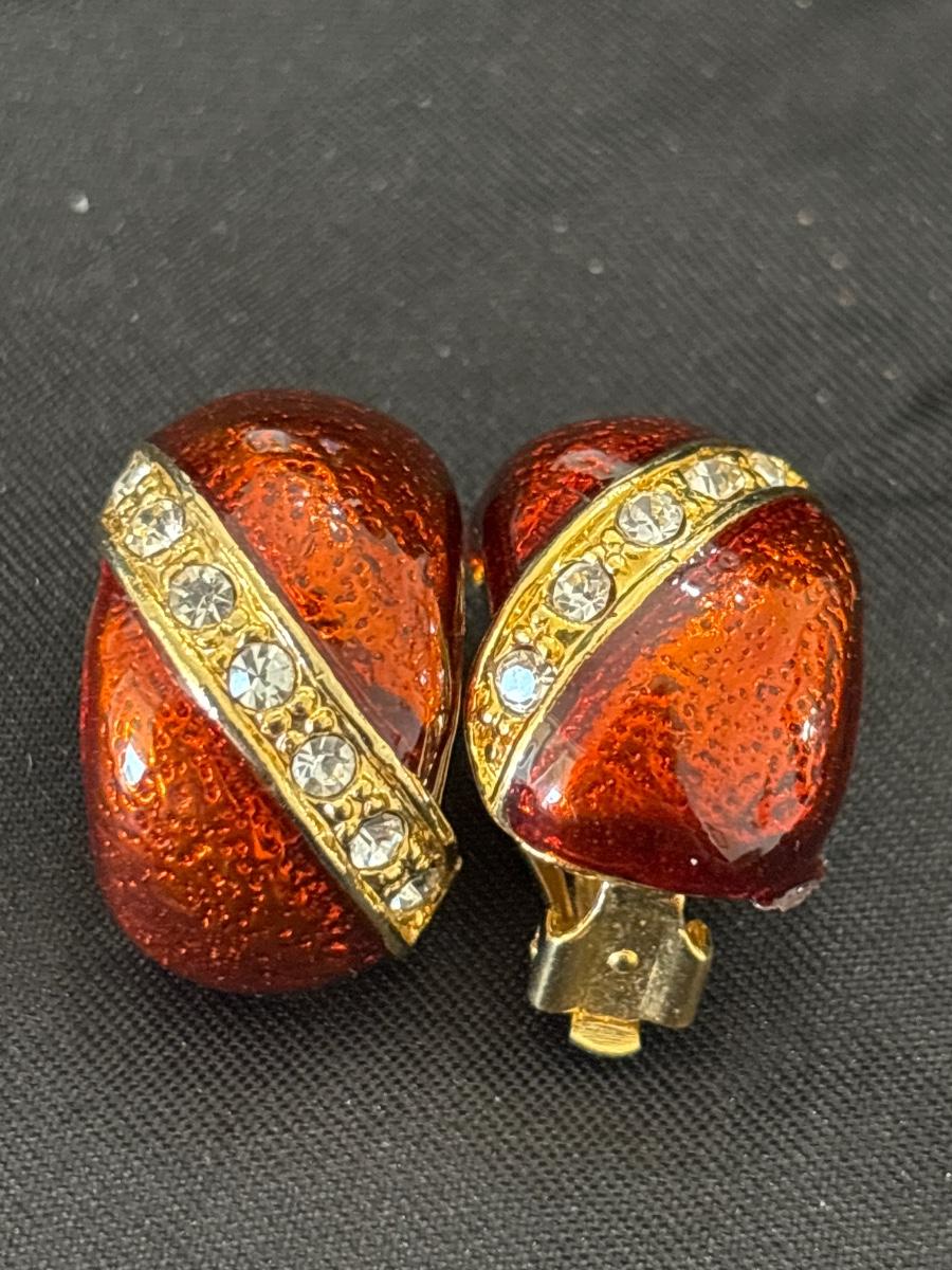 Vintage big stud amber gold toned rhinestone clip on earrings