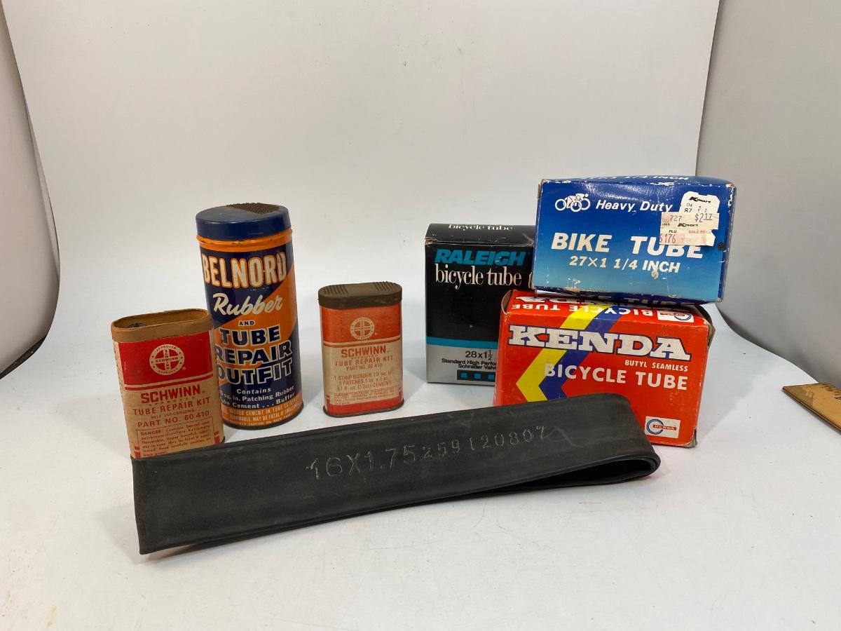 Vintage Bike Bicycle Tube & Patch Kit Lot. Old stock, good for display, tubes are unused.