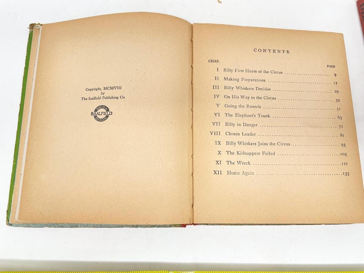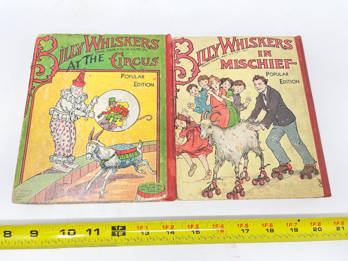 In good condition for their age - includes “Billy Whiskers At The Circus” (copyright 1908) and “Billy Whiskers in Mischief” (copyright 1926).