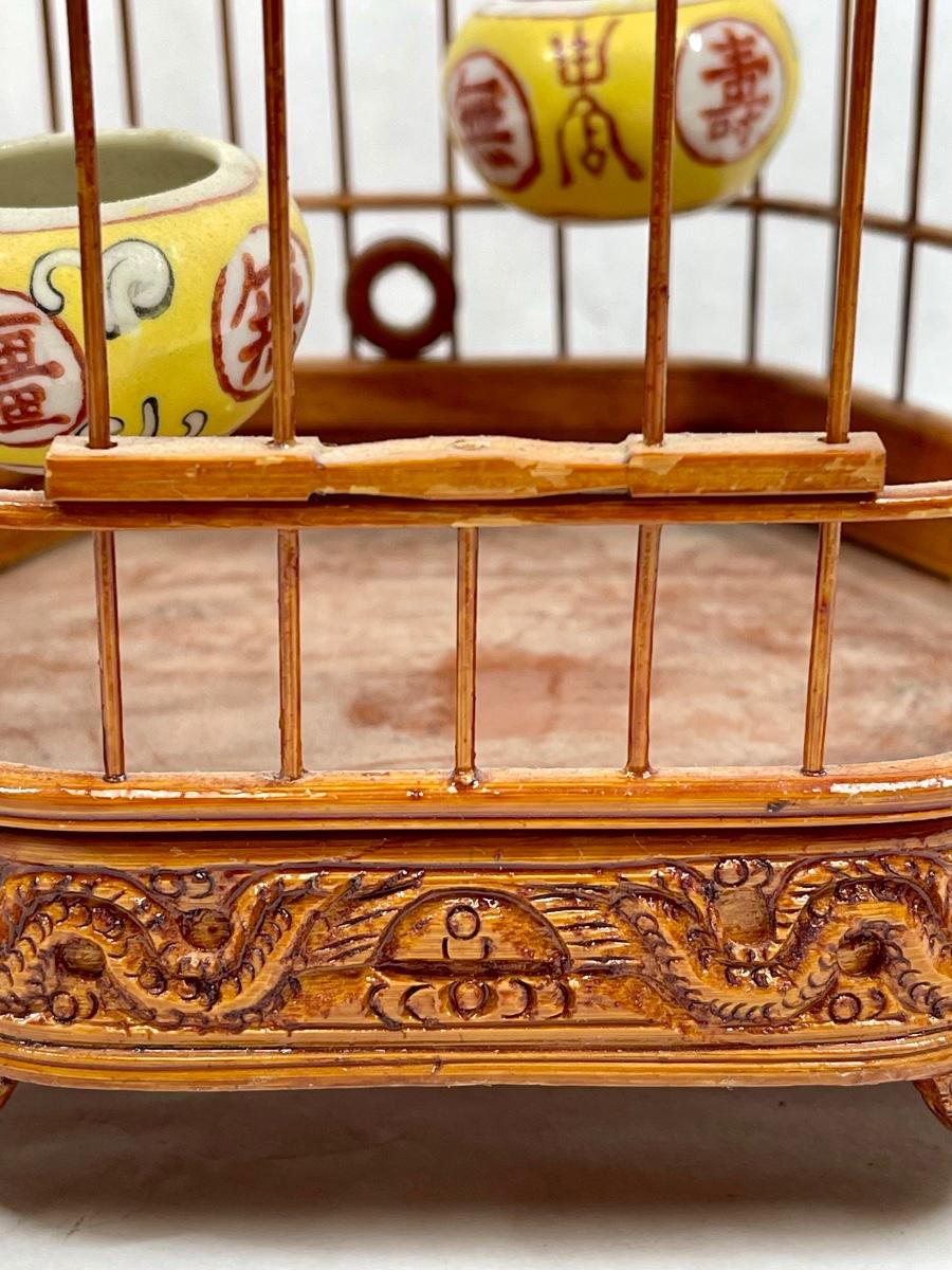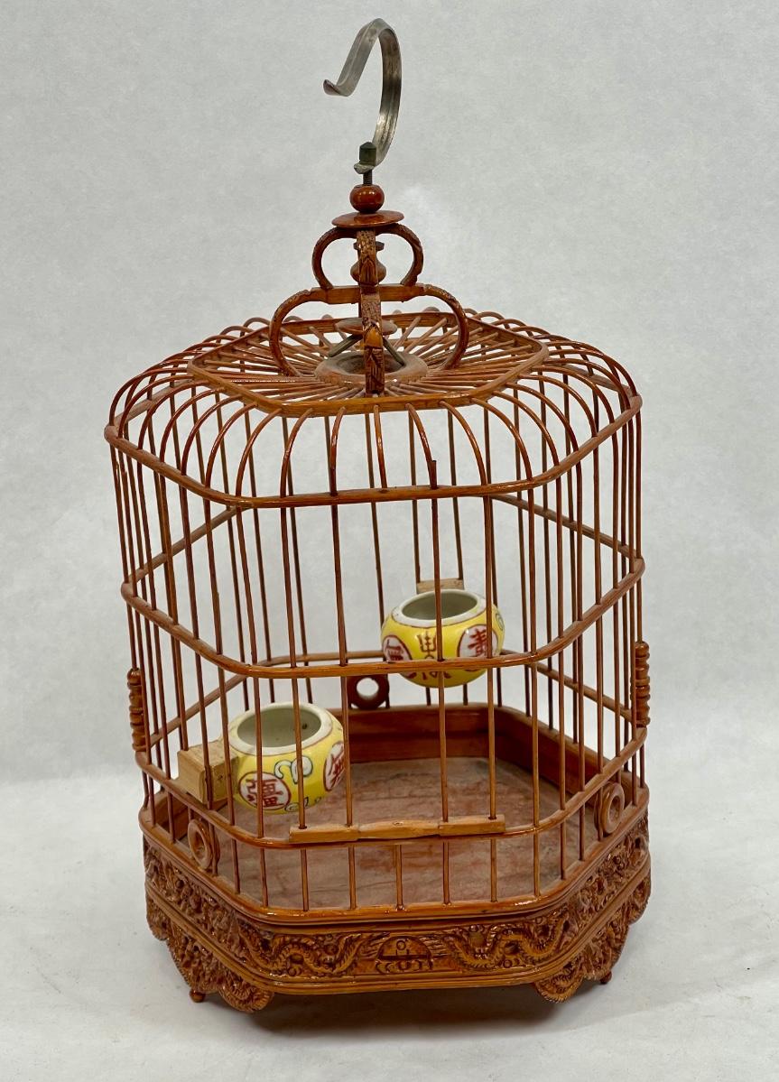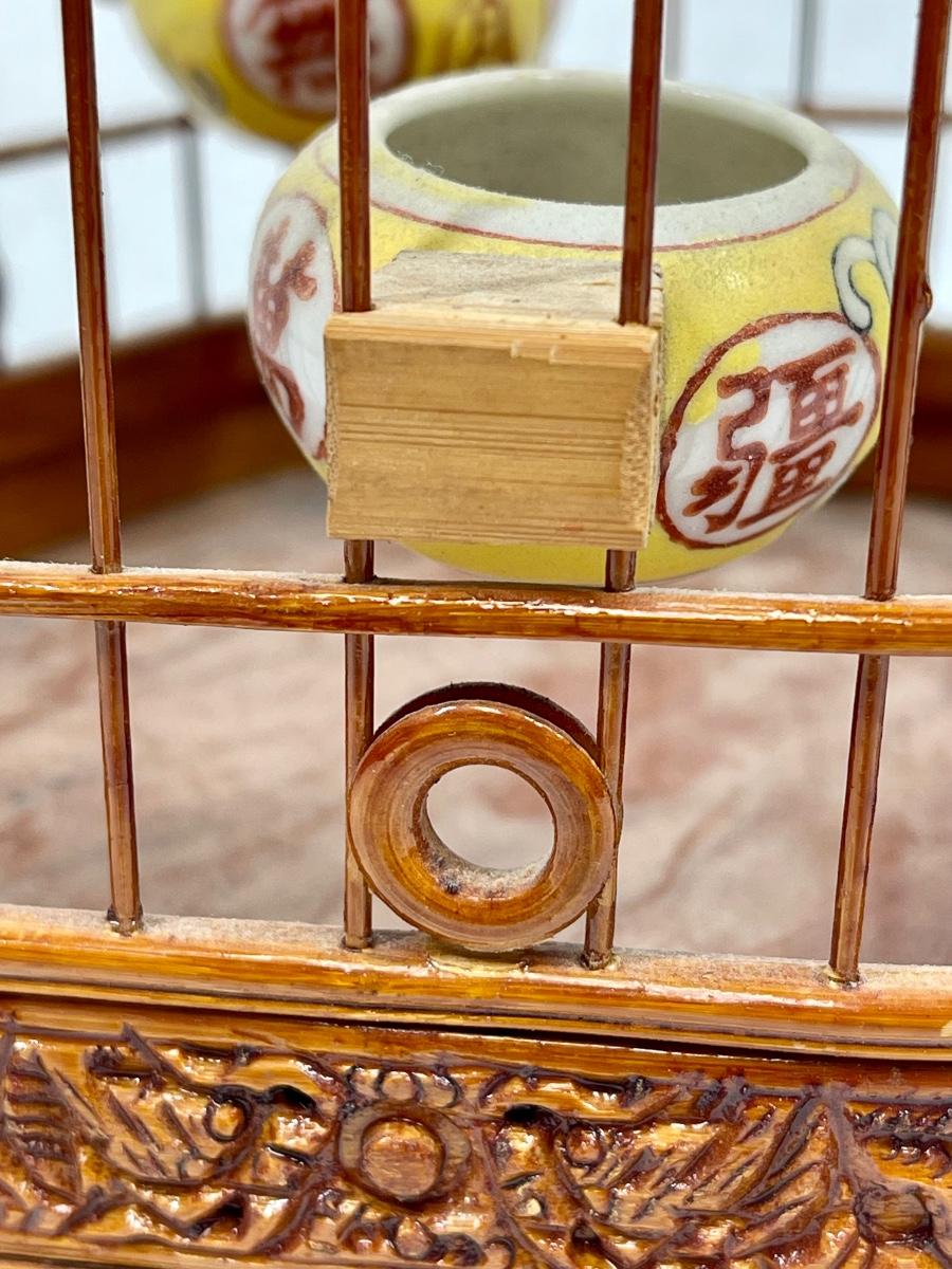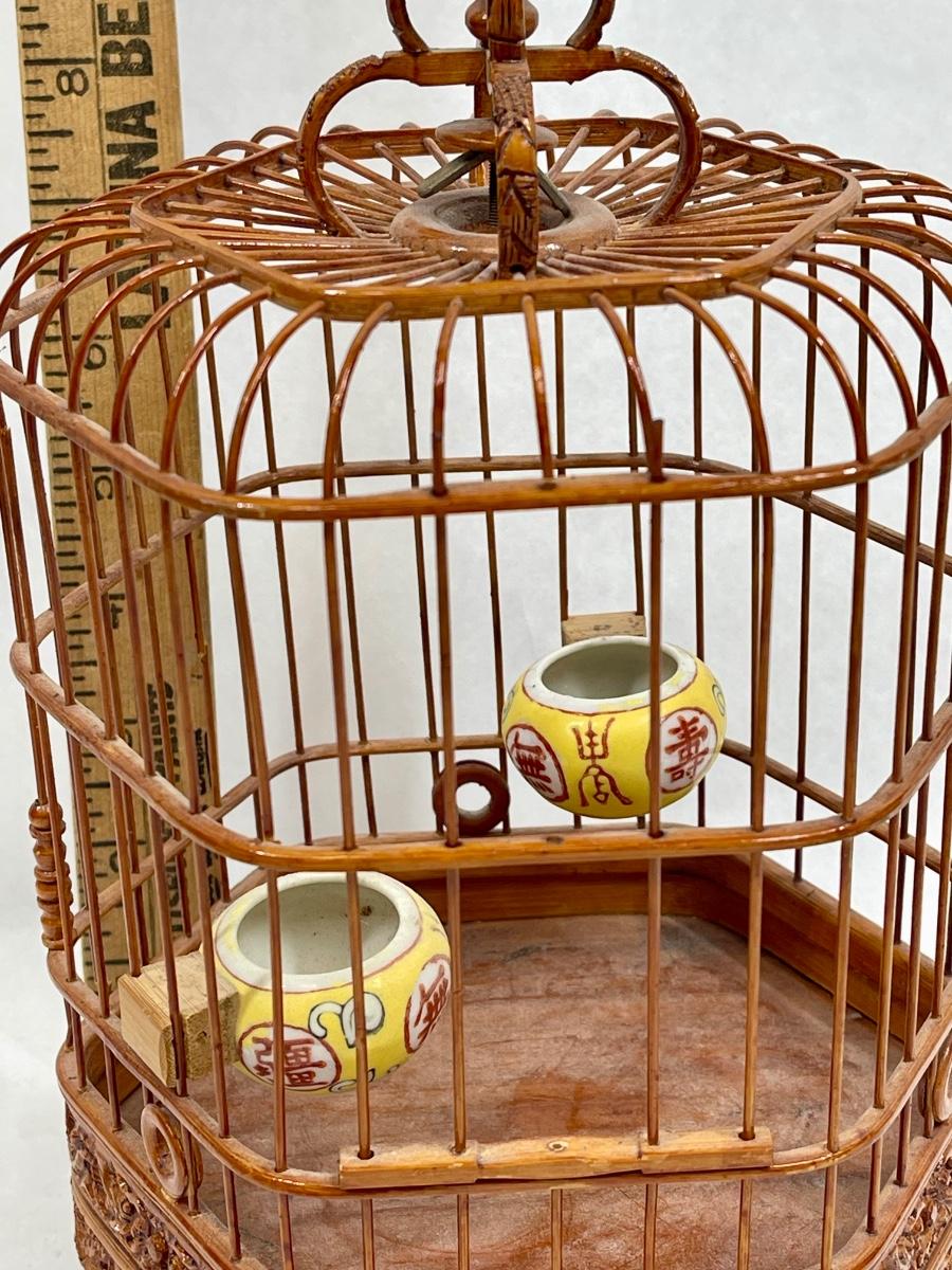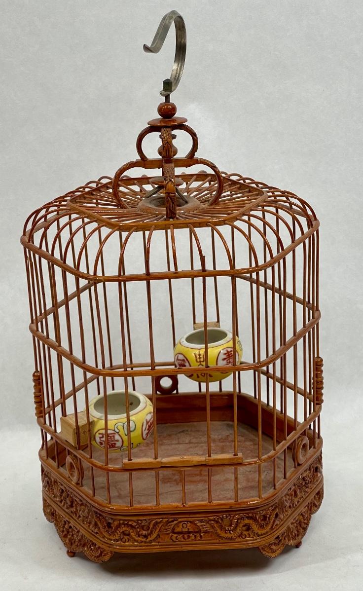 Vintage Bird Cage with 2 ceramic bowl feeders