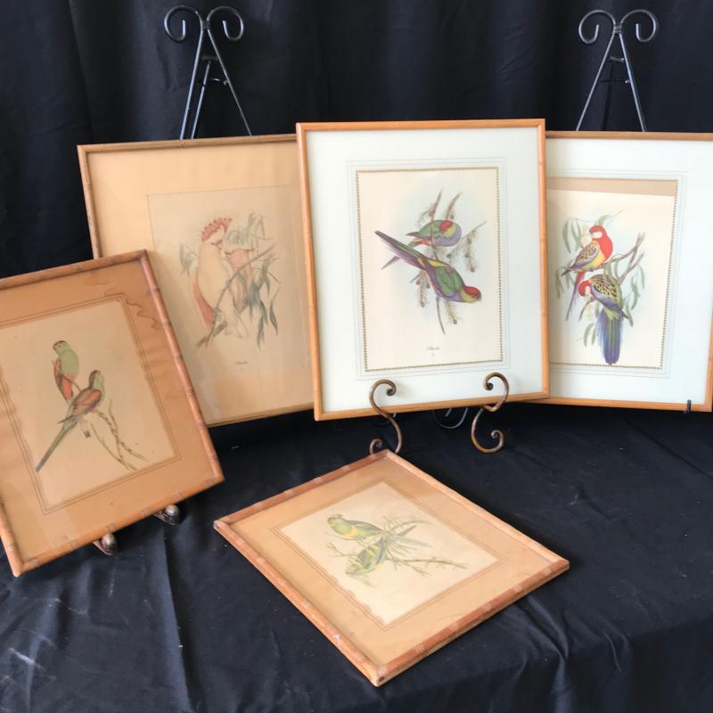 Five vintage bird prints. Three are approx. 16.5” x 14.5” and two are approx. 14.5” x 12”. Shipping available or local pickup in Hendersonville, NC. Note: shipping art can be expensive so please call UPS for a quote prior to bidding.