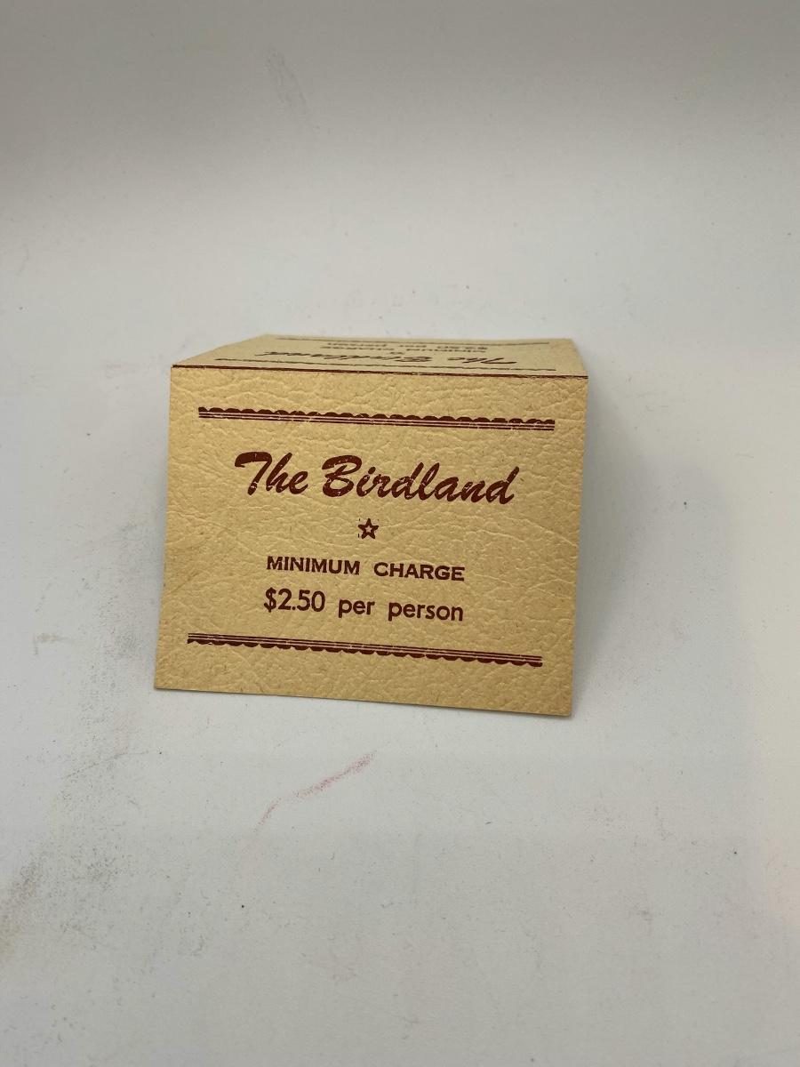 In mint condition, table top advertizing place card for The Birdland, jazz club. Defintely vintage