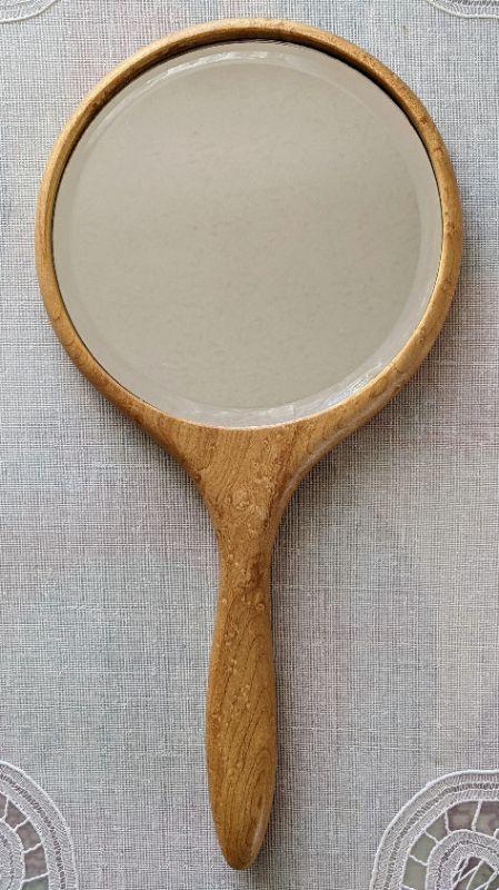 Vintage Birdseye maple hand mirror Beveled 10.5" Beautiful!