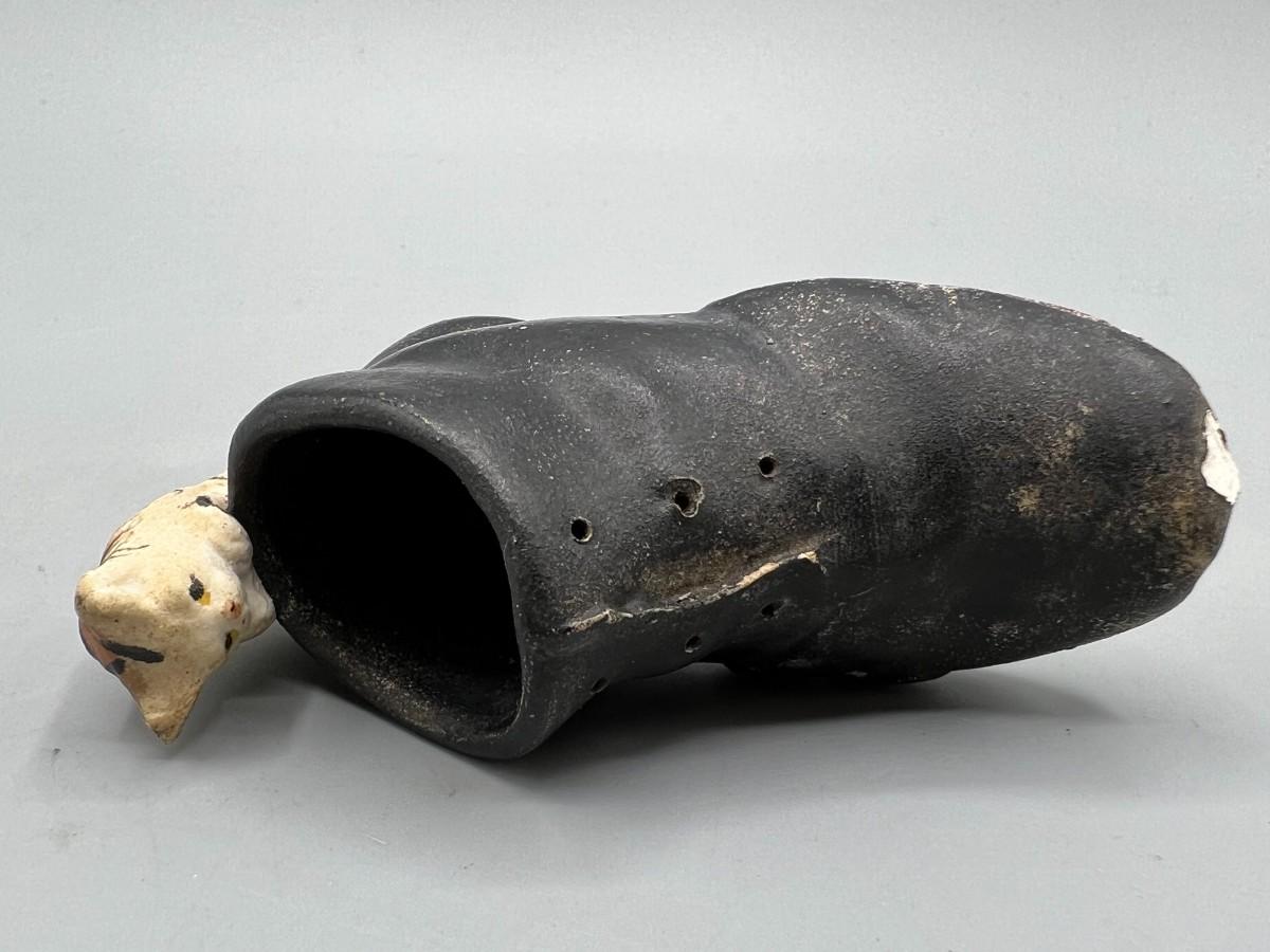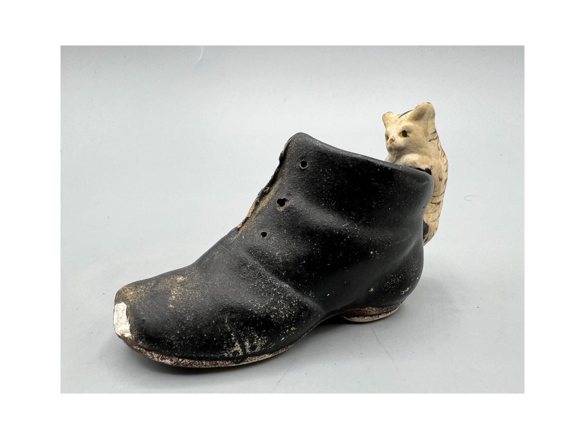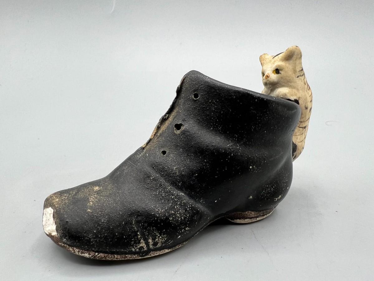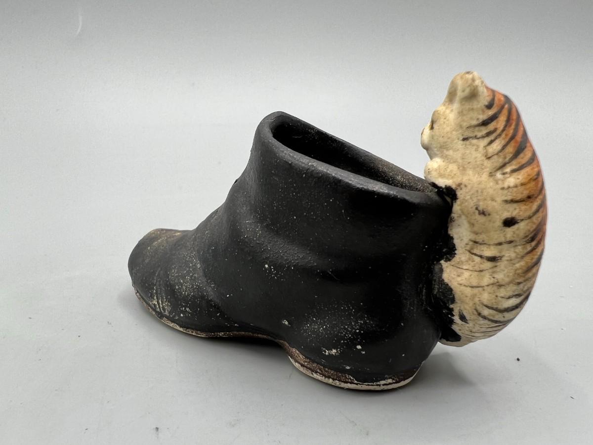 Vintage Bisque Ceramic Vesta Match Holder Shoe with Curious Kitten