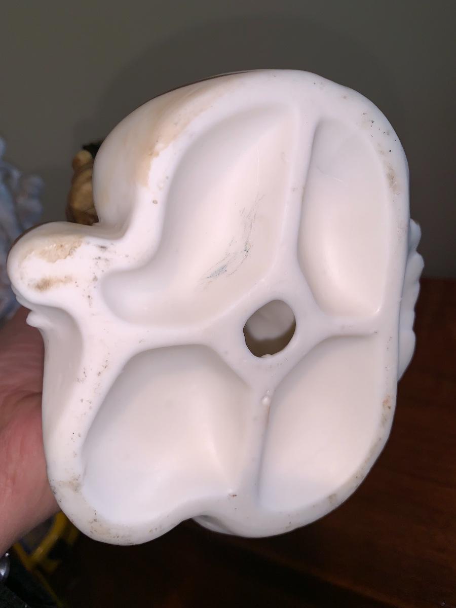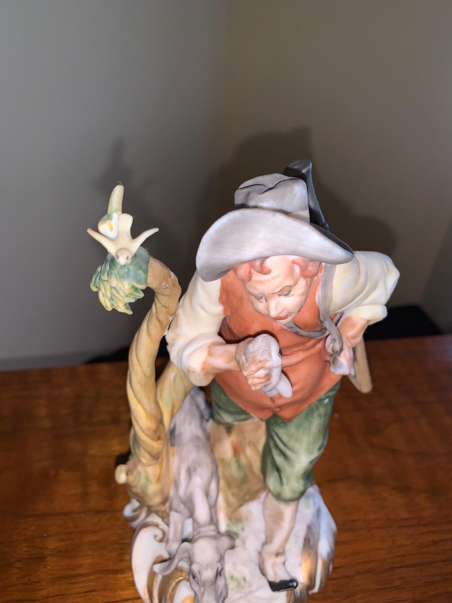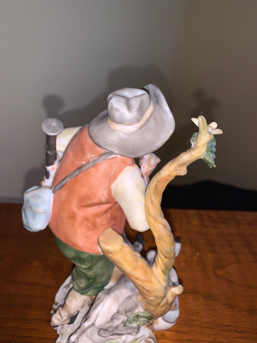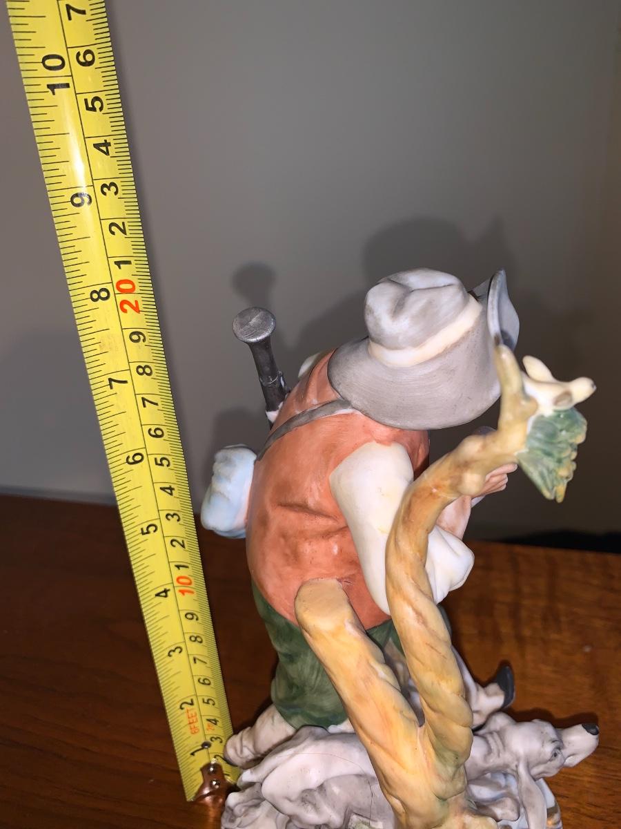 Unsigned bisque figure of hunter with dog in the woods. No damage