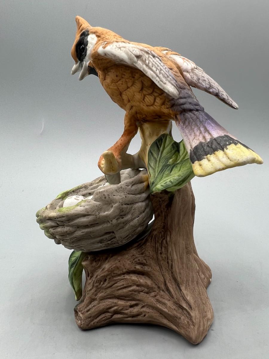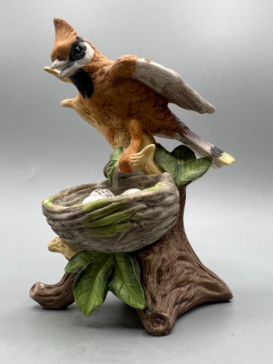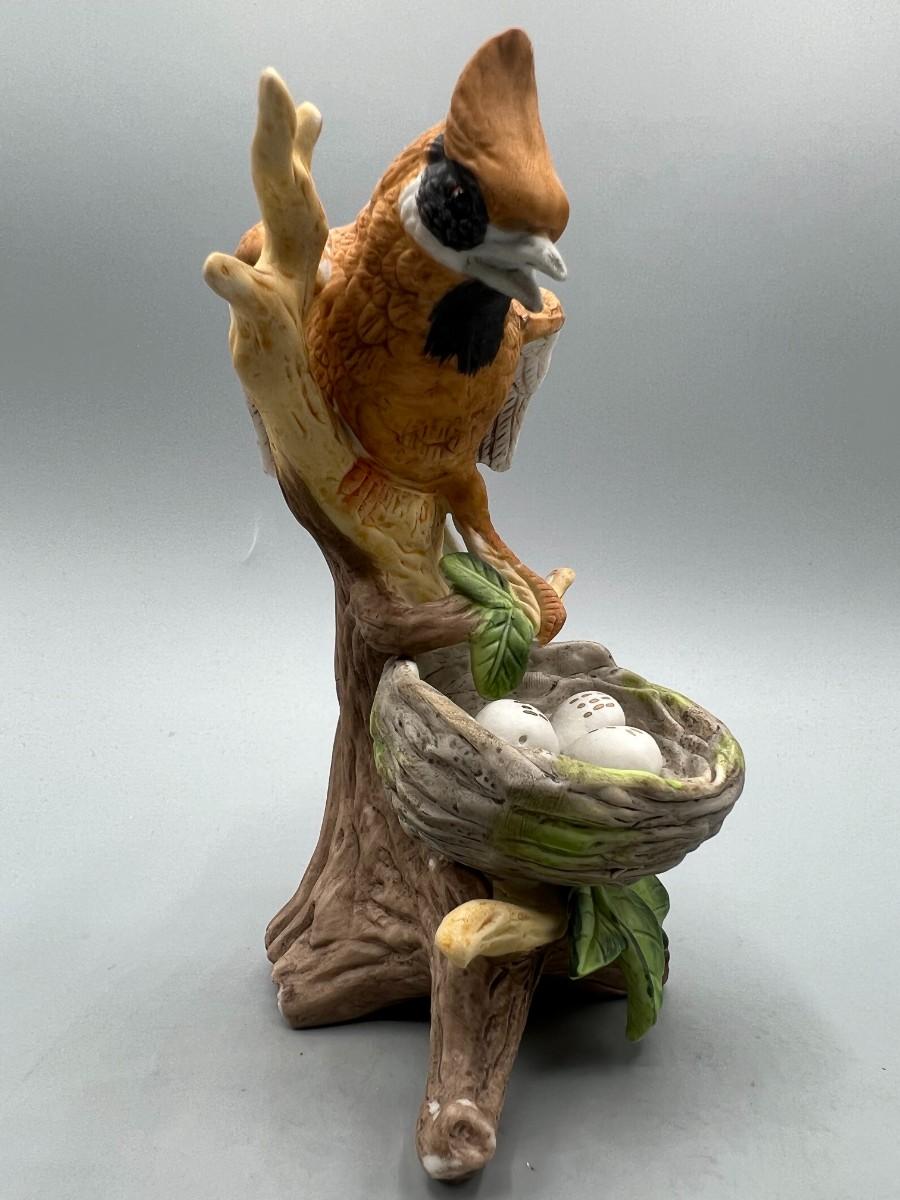 Vintage Bisque Porcelain Bird Figurine. About 6" size. Signed on the bottom. In good condition.