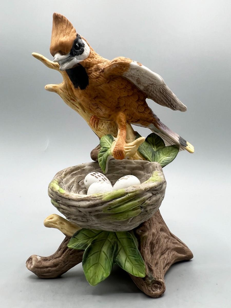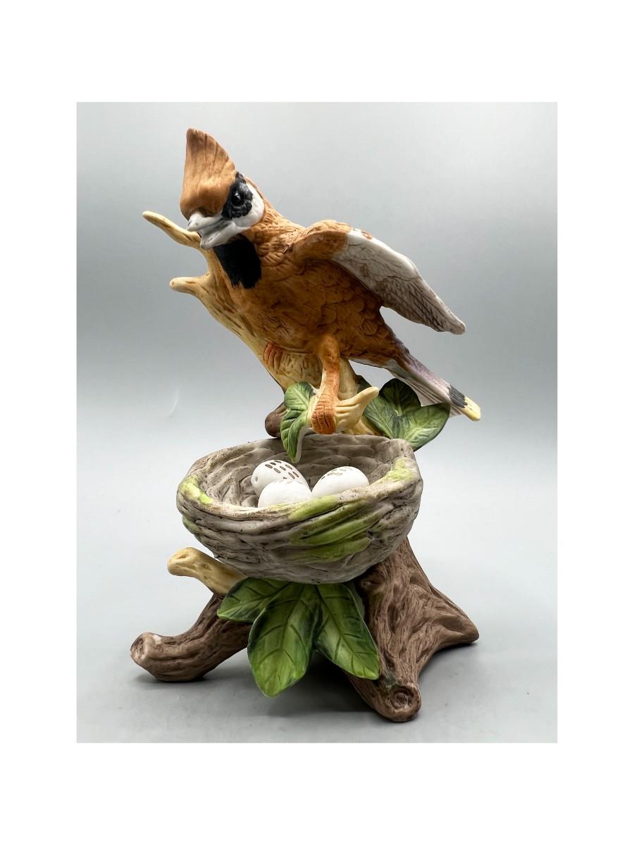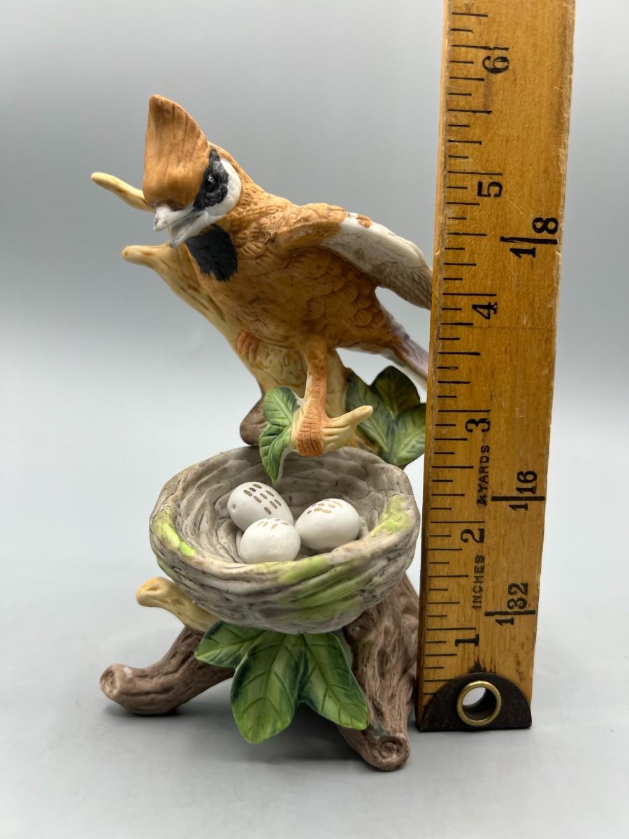 Vintage Bisque Porcelain Bird Figurine. About 6" size. Signed on the bottom. In good condition.