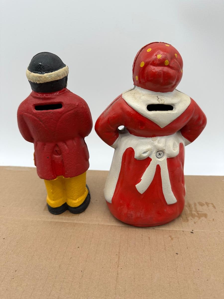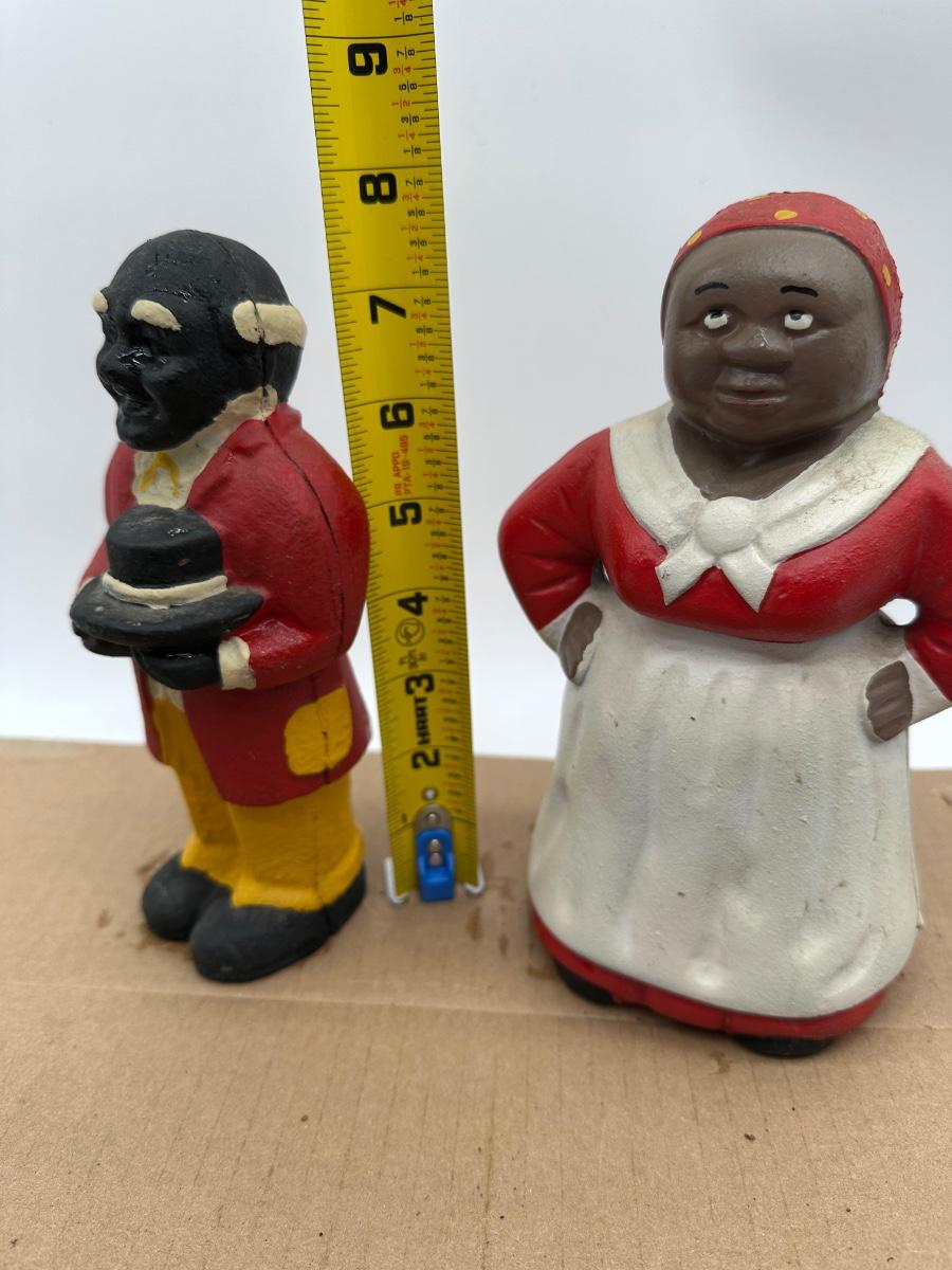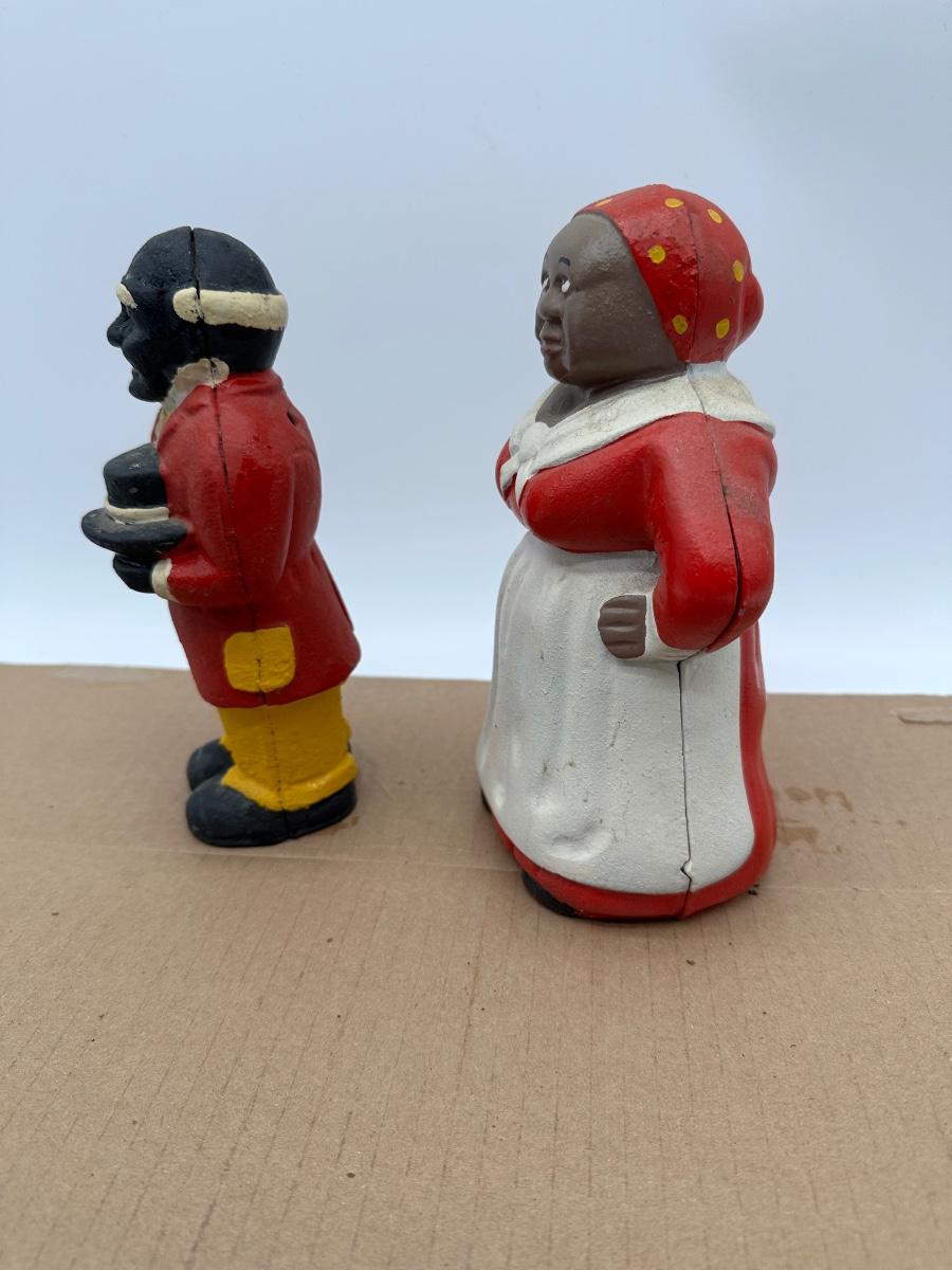 Vintage Black Americana Cast Iron Coin Banks – Man & Woman Figurines (Pair)