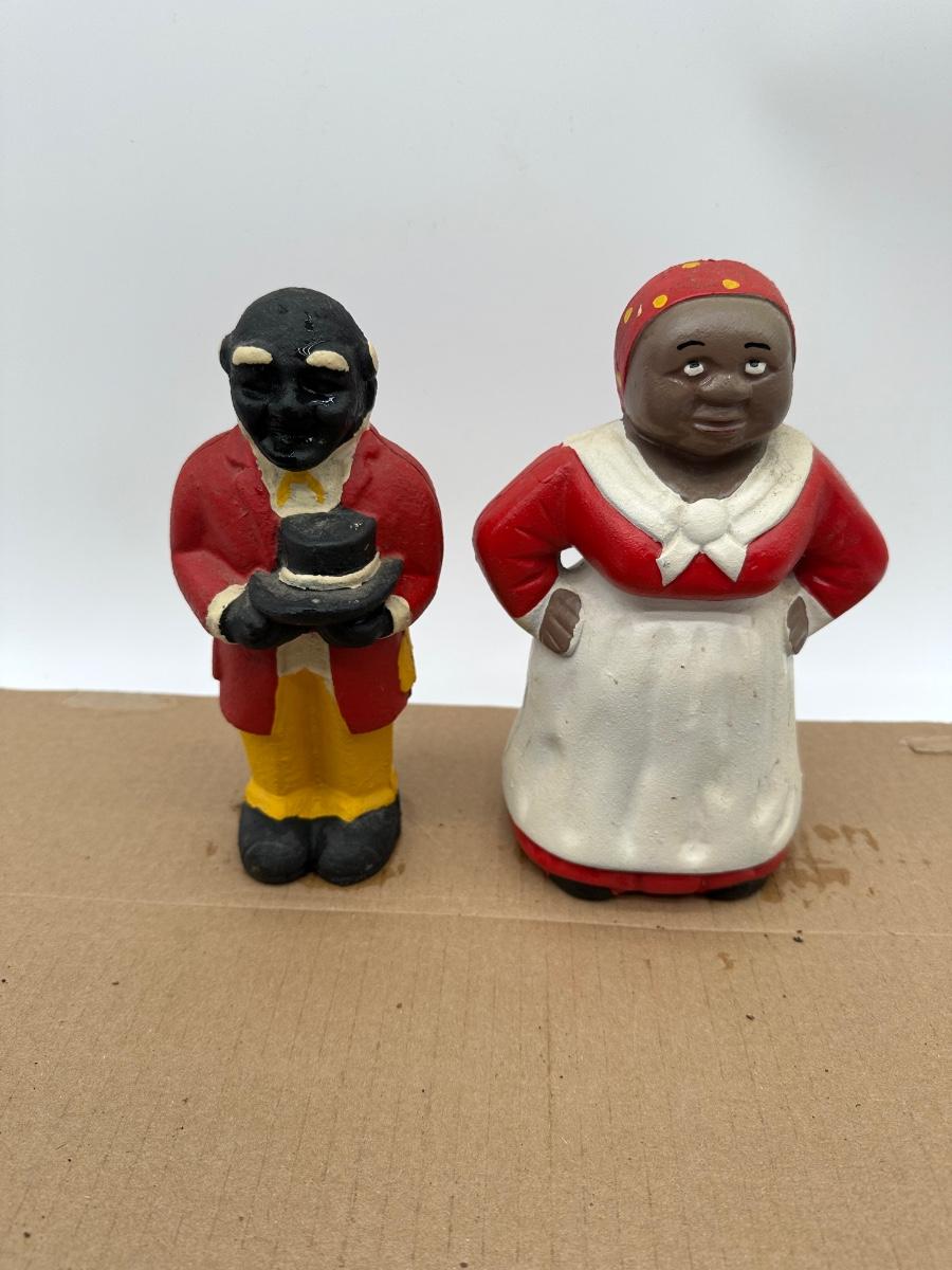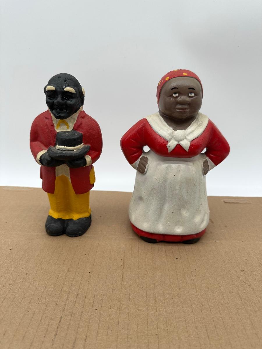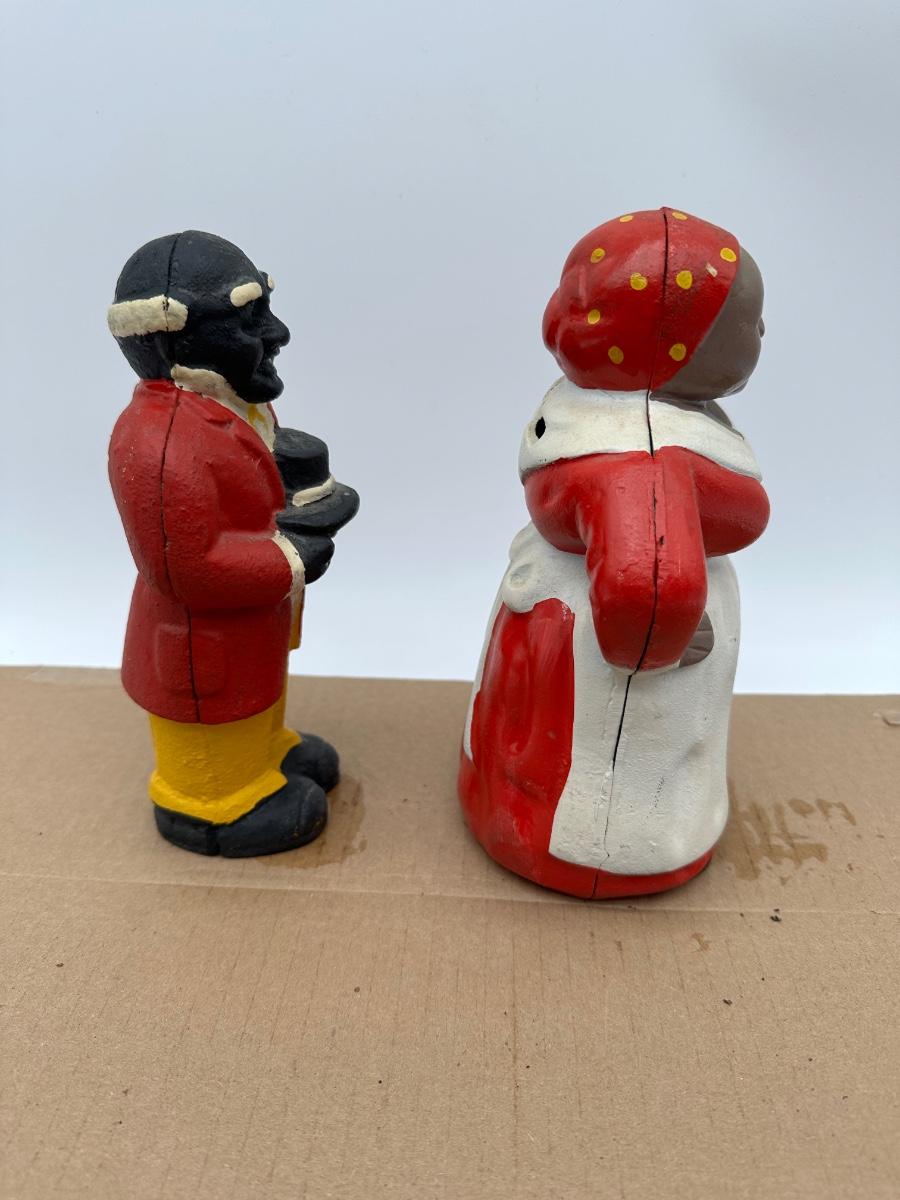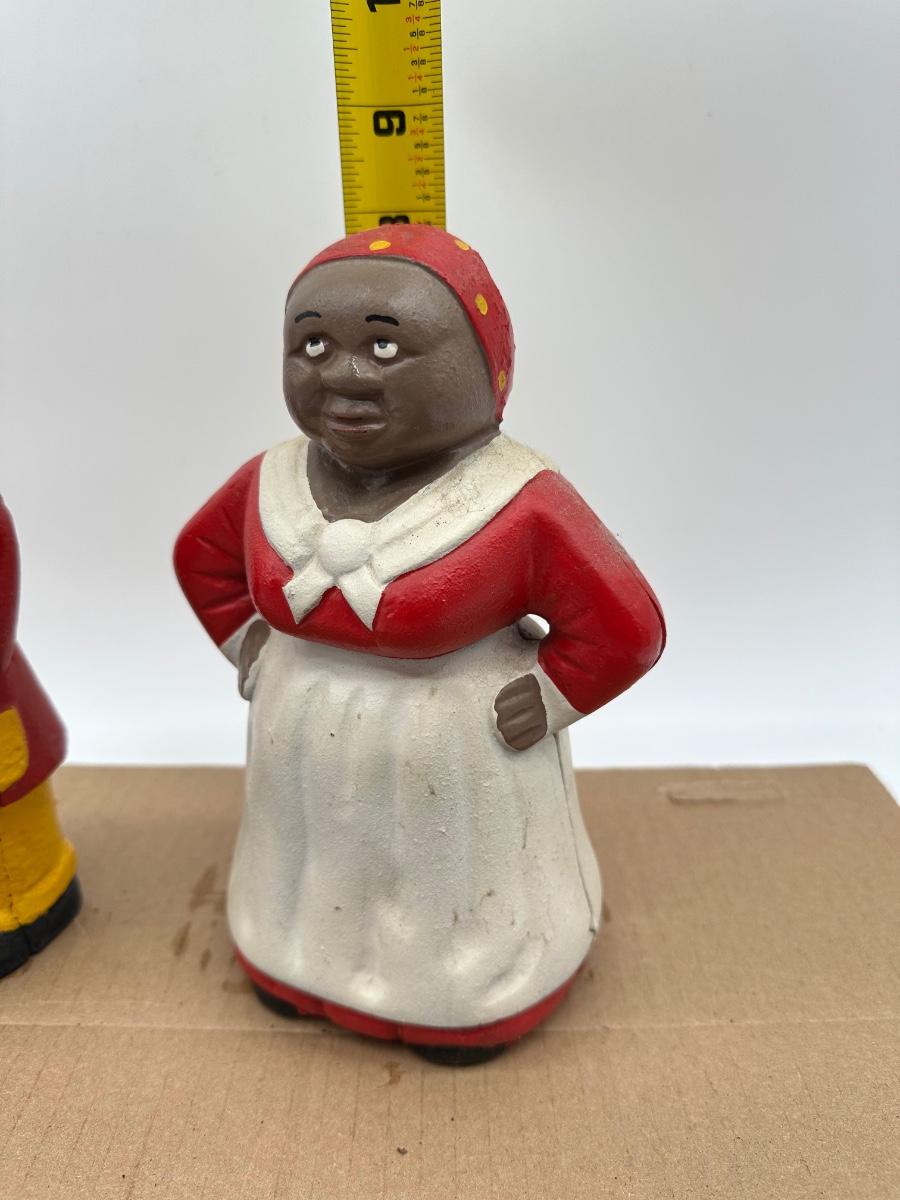Vintage Black Americana Cast Iron Coin Banks – Man & Woman Figurines (Pair)