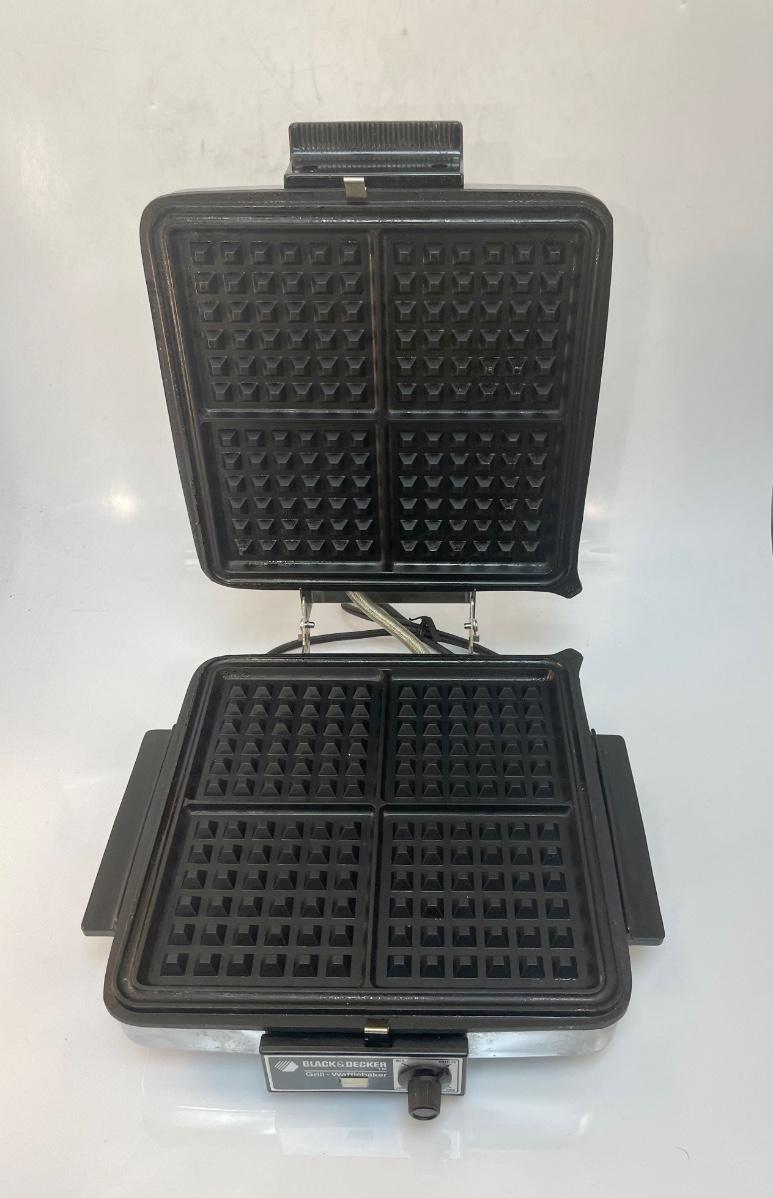 Vintage Black and Decker Waffle Maker. 900 Watts, Polished chrome outer surface in very good condition, no rust or dents. Model 9125-Z.