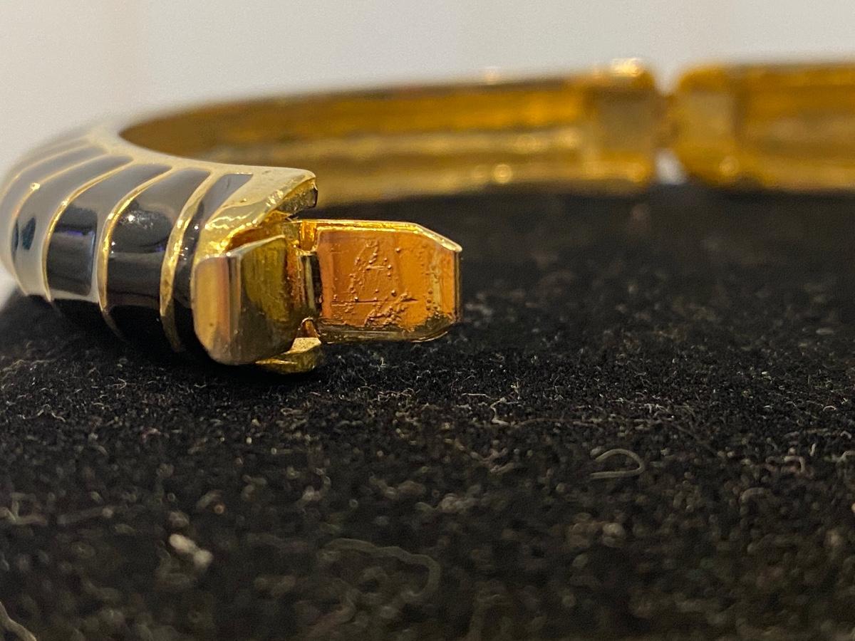 Vintage Black and Gold Enamel Zebra Hinged Bangle Bracelet