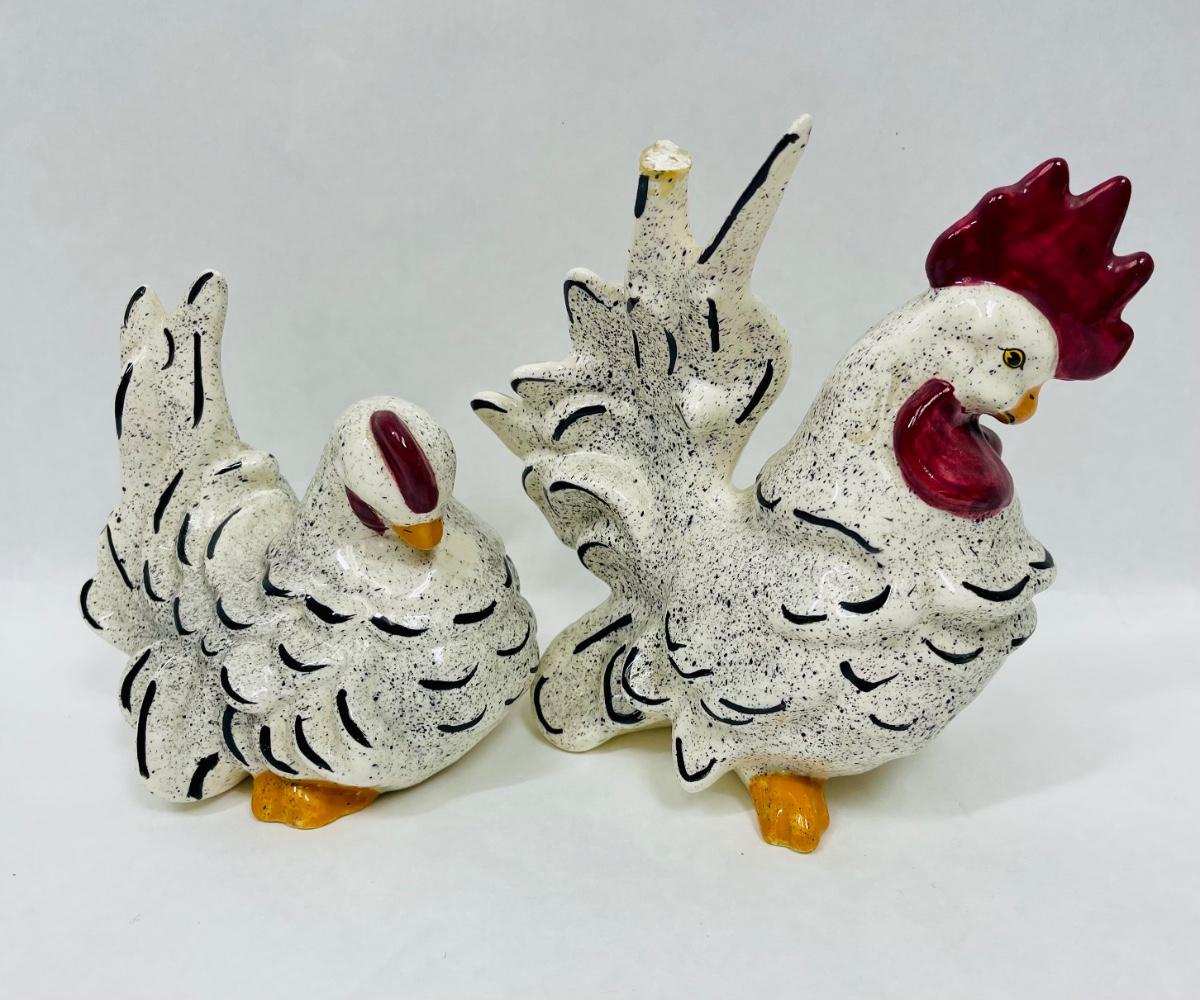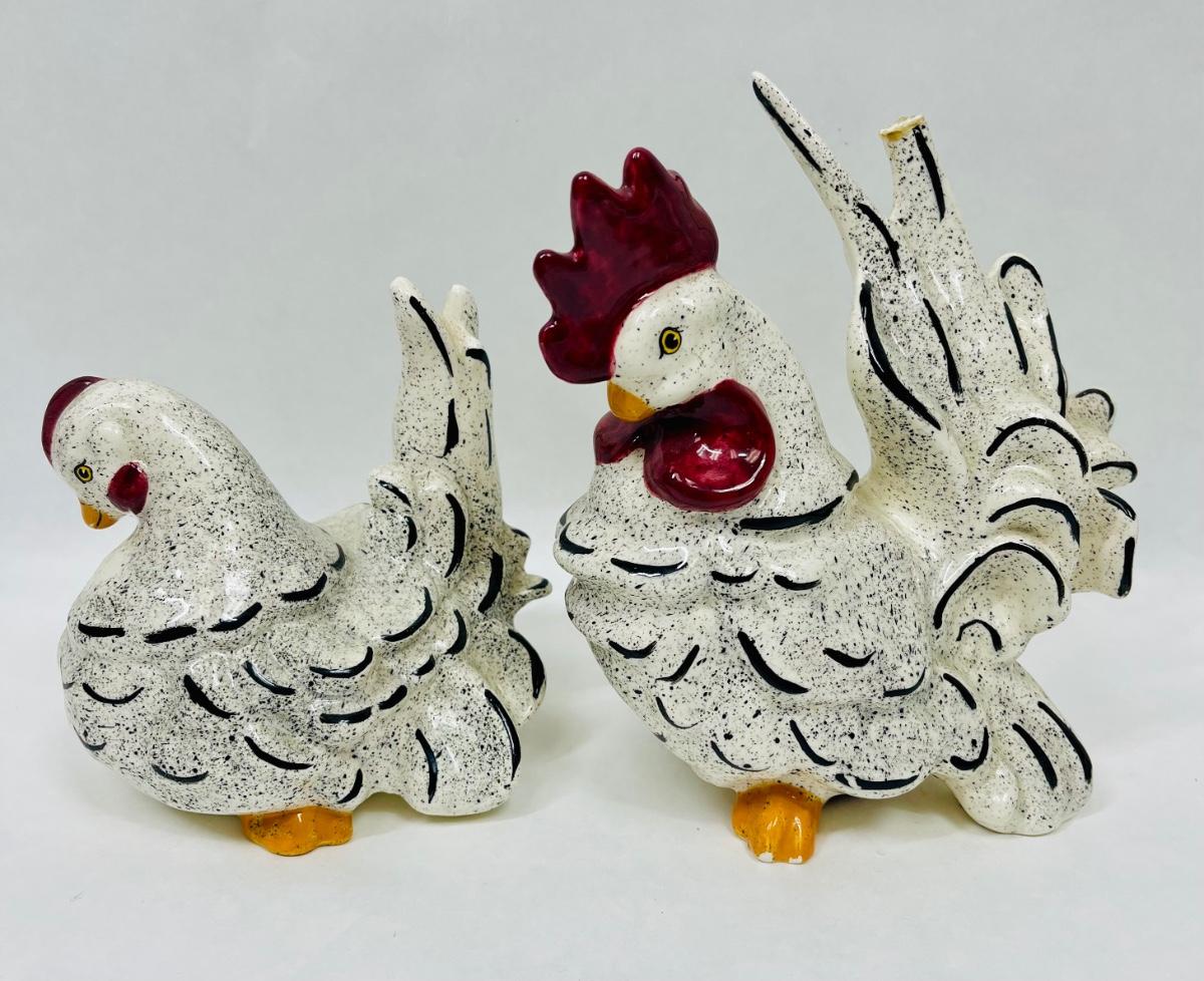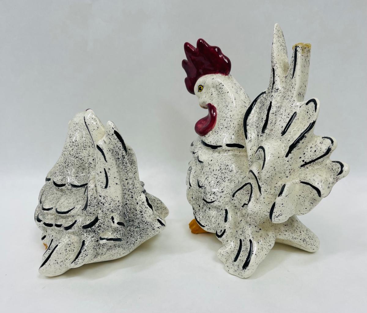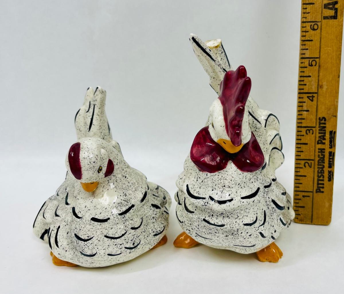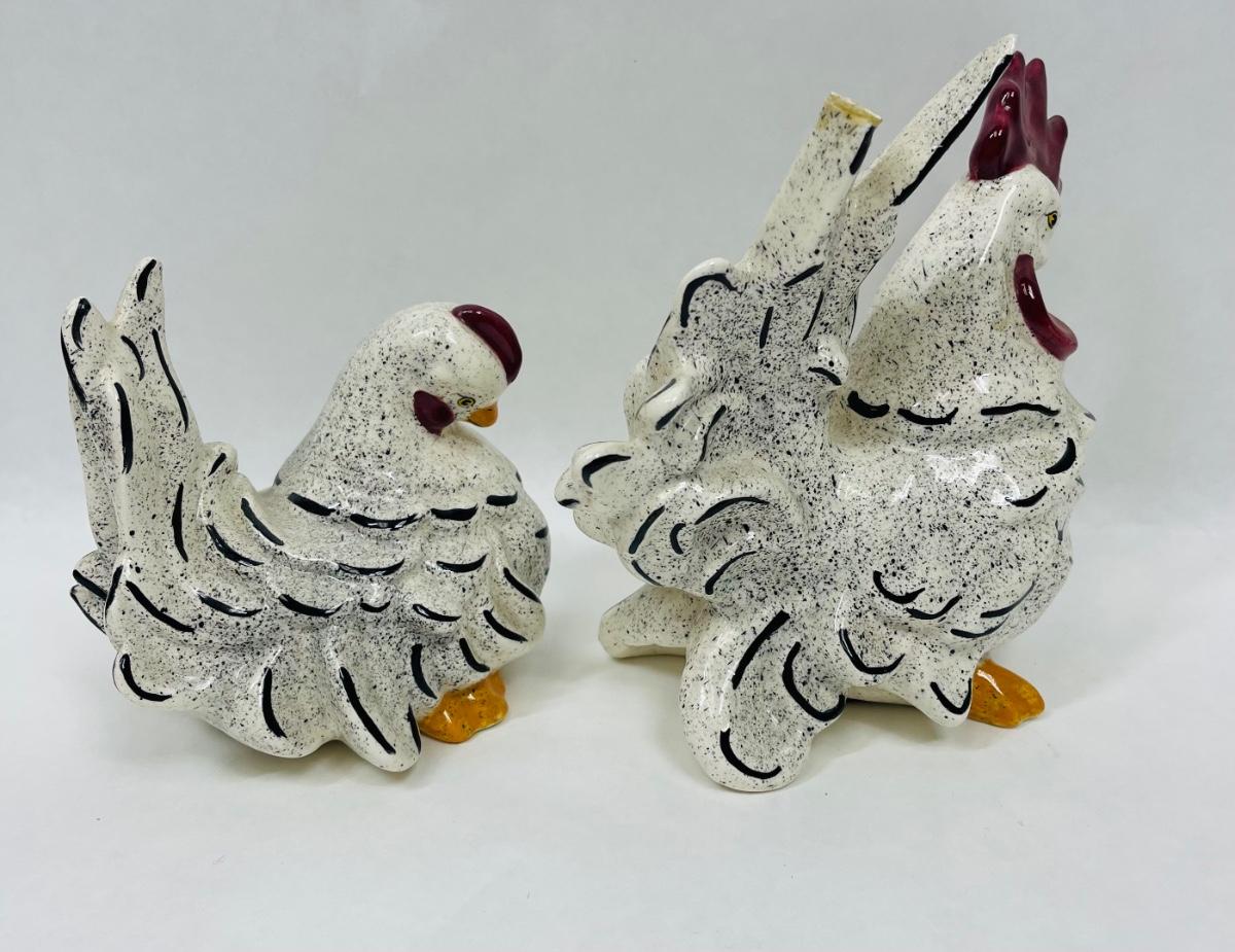 Vintage Black and White Dalmatian Chicken Figurine Pair - handpainted