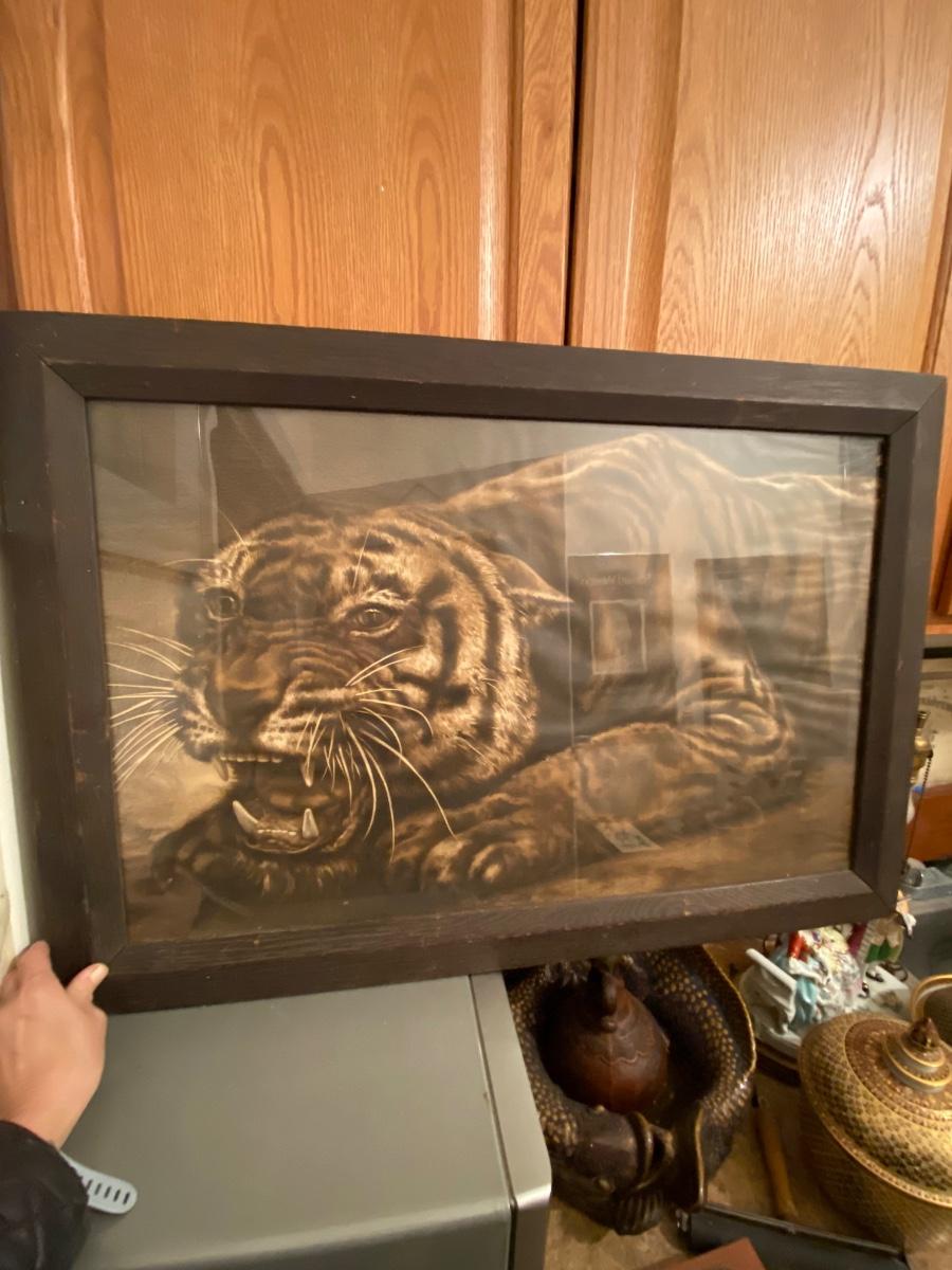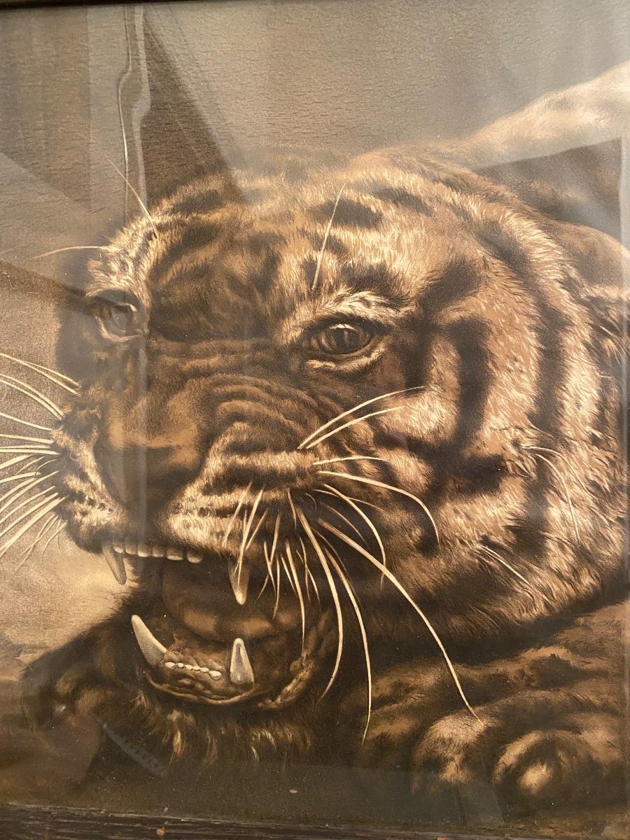 Black and white lithograph in original vintage frame. Approx 32x22 in frame.