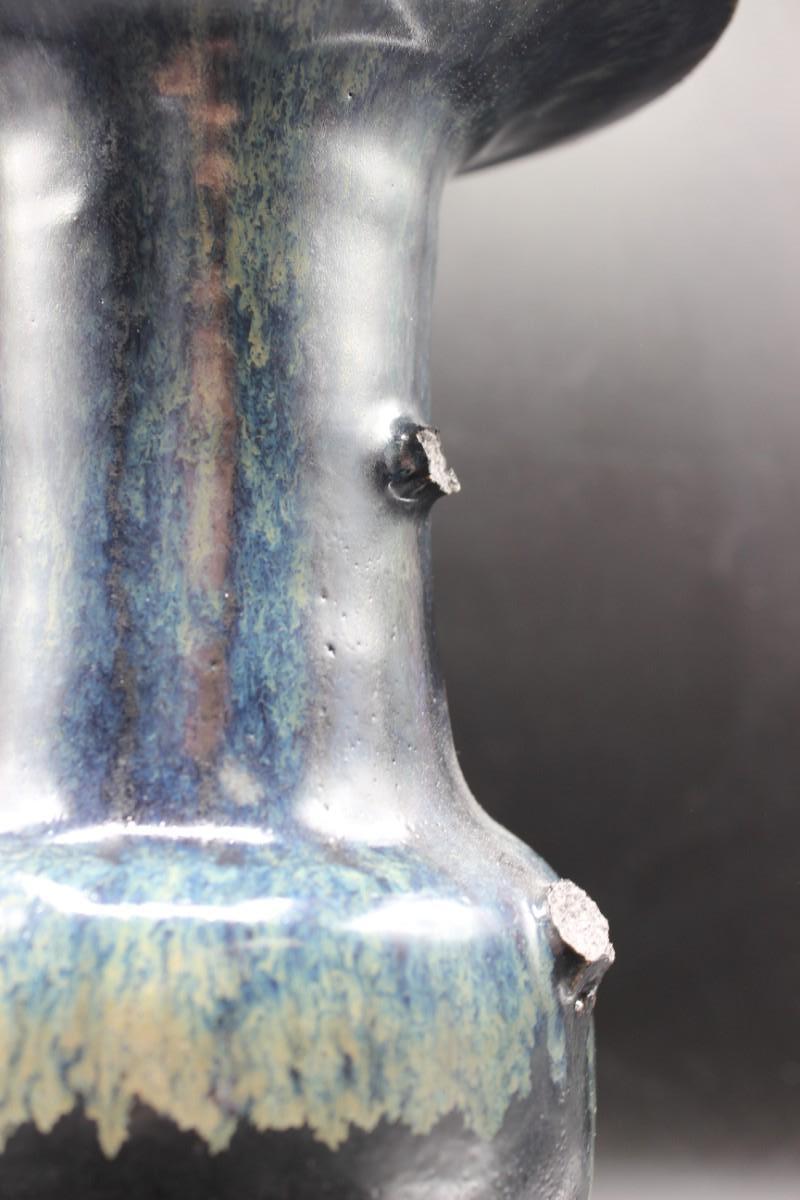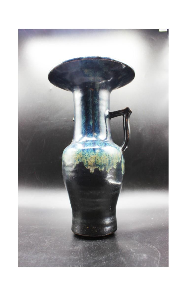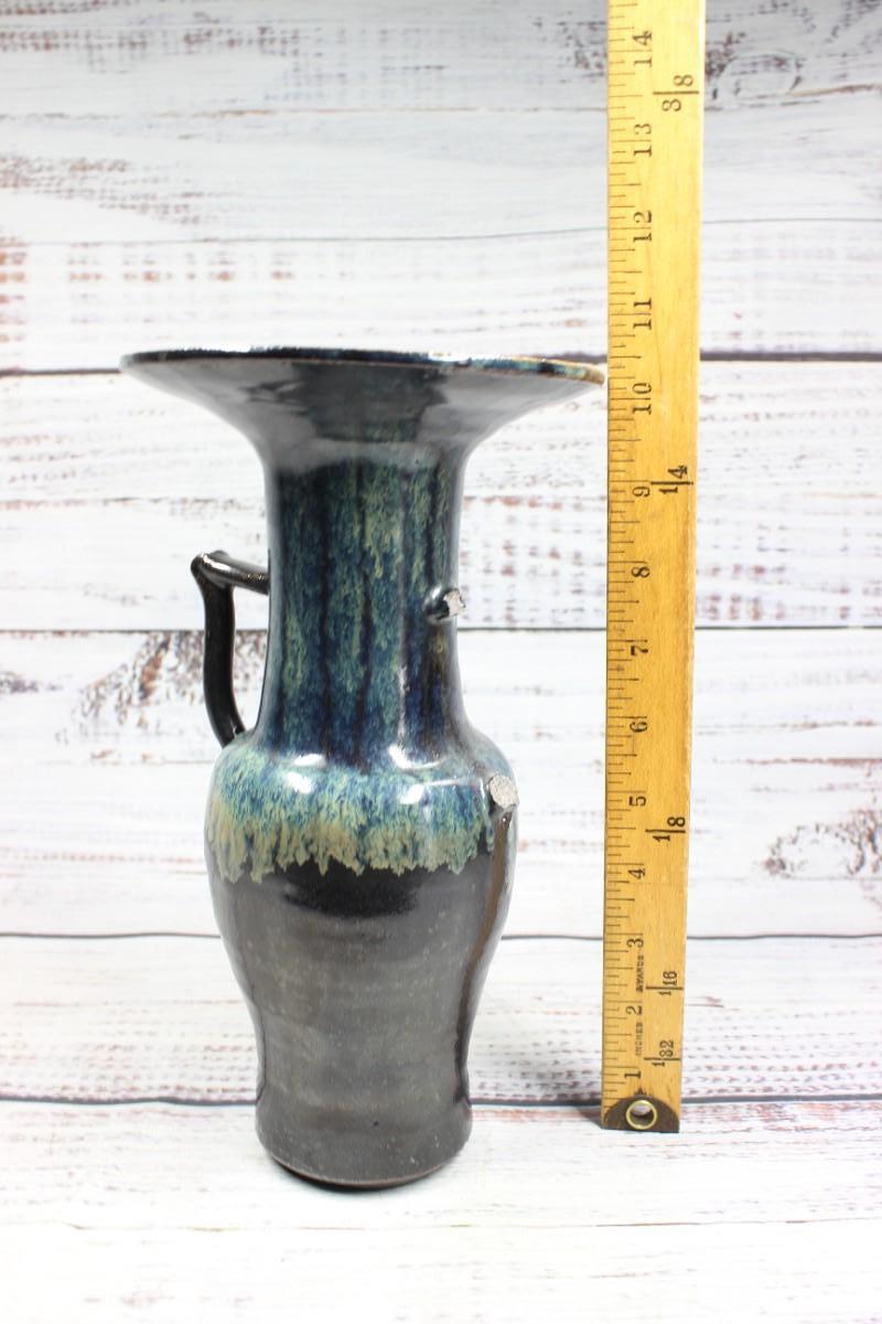 Vintage Black & Blue Gradient Trumpet Lip Vase, the other handle of the vase has been broken off, but there are no other significant chips or cracks to the vase and is in good vintage condition. Check pictures for more details and for sizing.