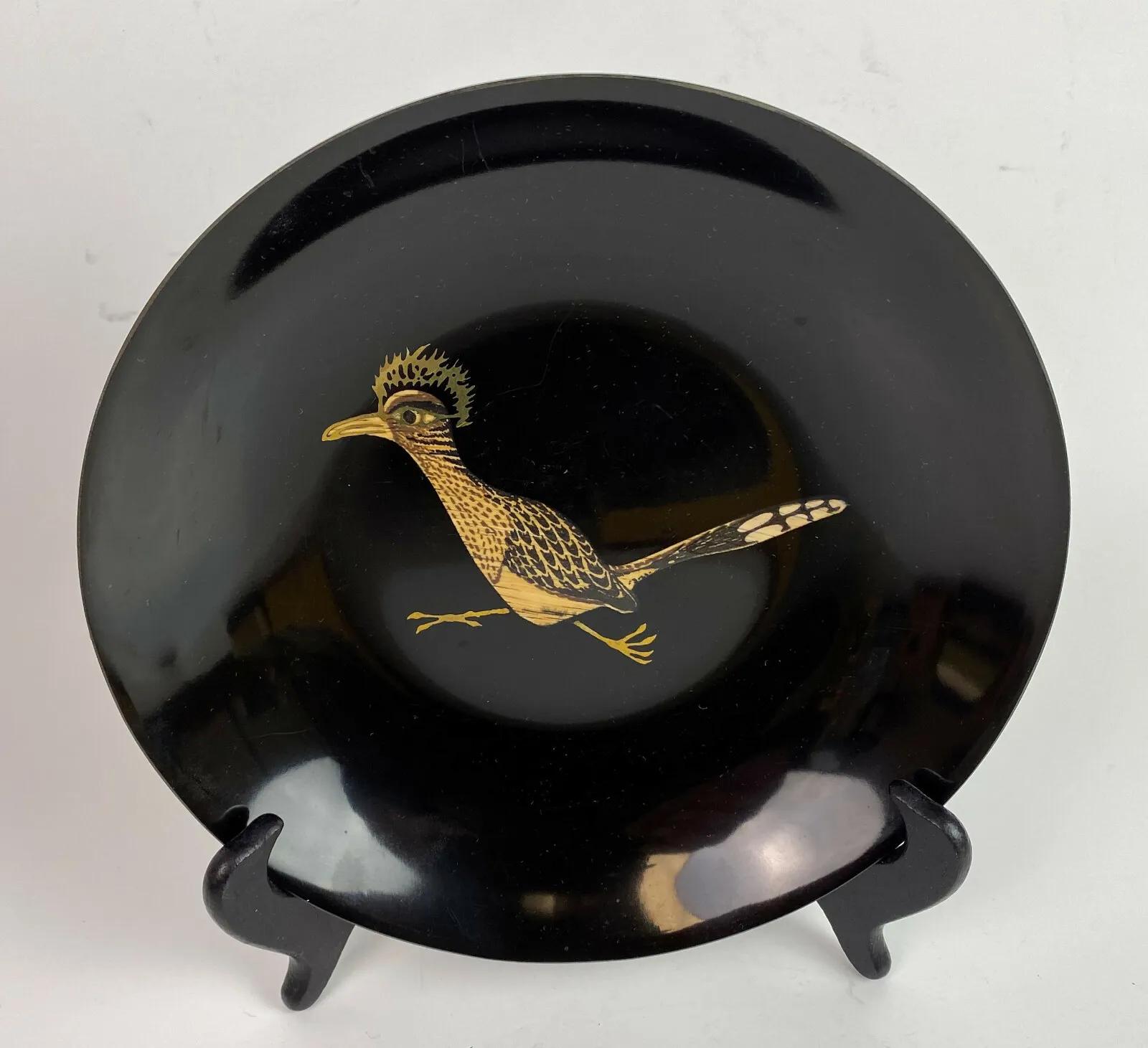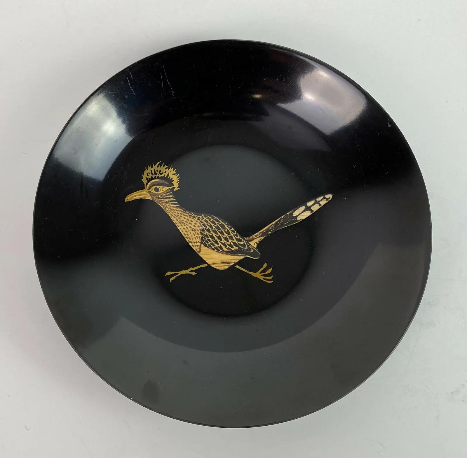 vintage black COUROC OF MONTEREY ROADRUNNER DECORATION BOWL