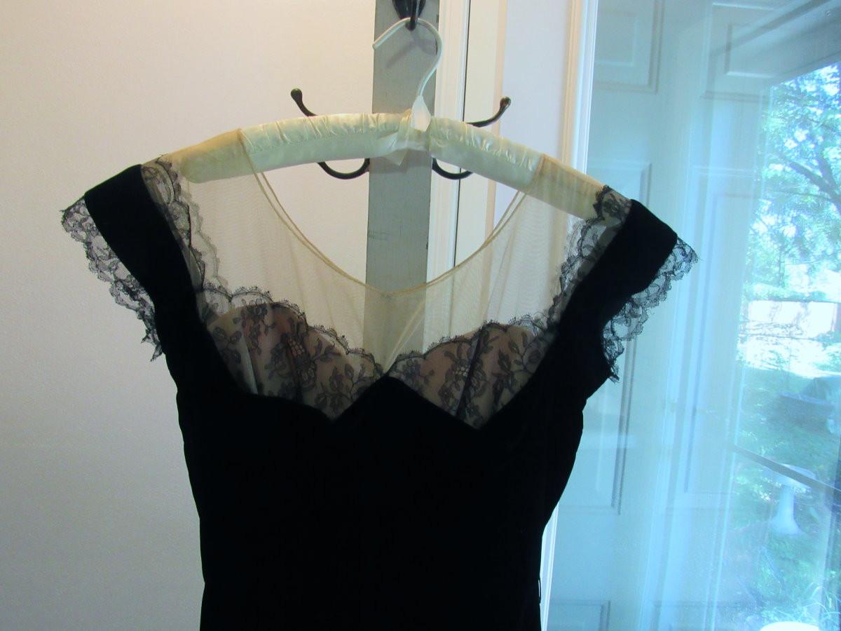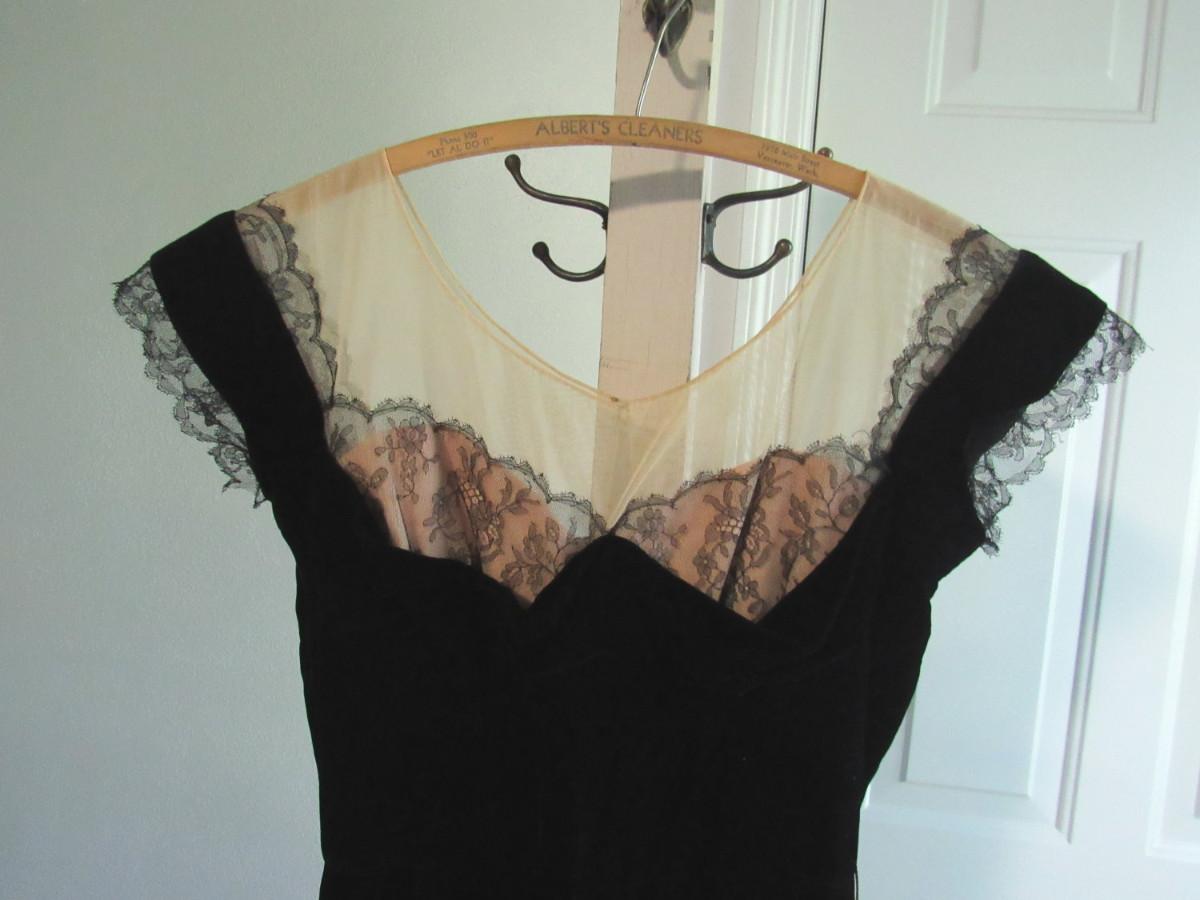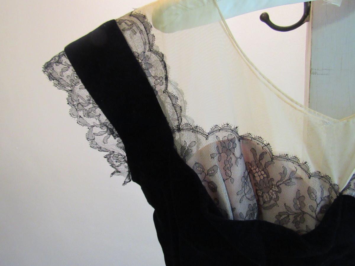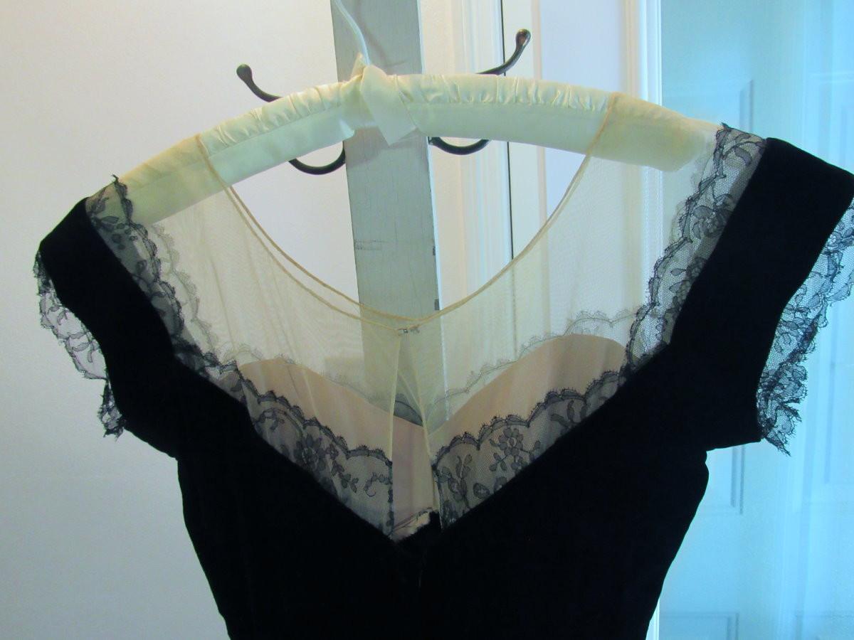 Lot 56:  Vintage 1940-50s Black Velvet Dress With Black Lace