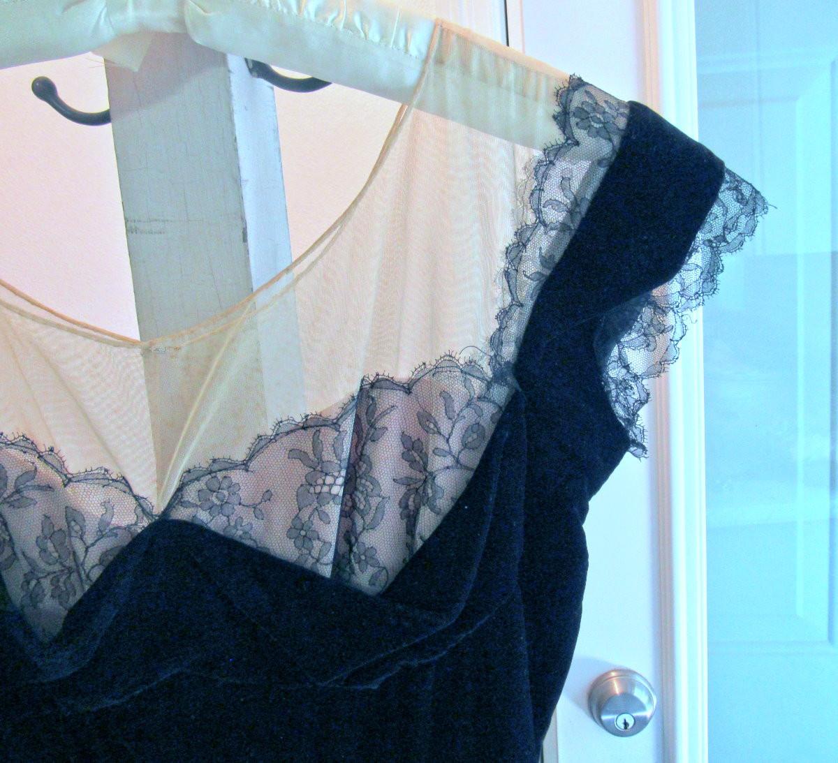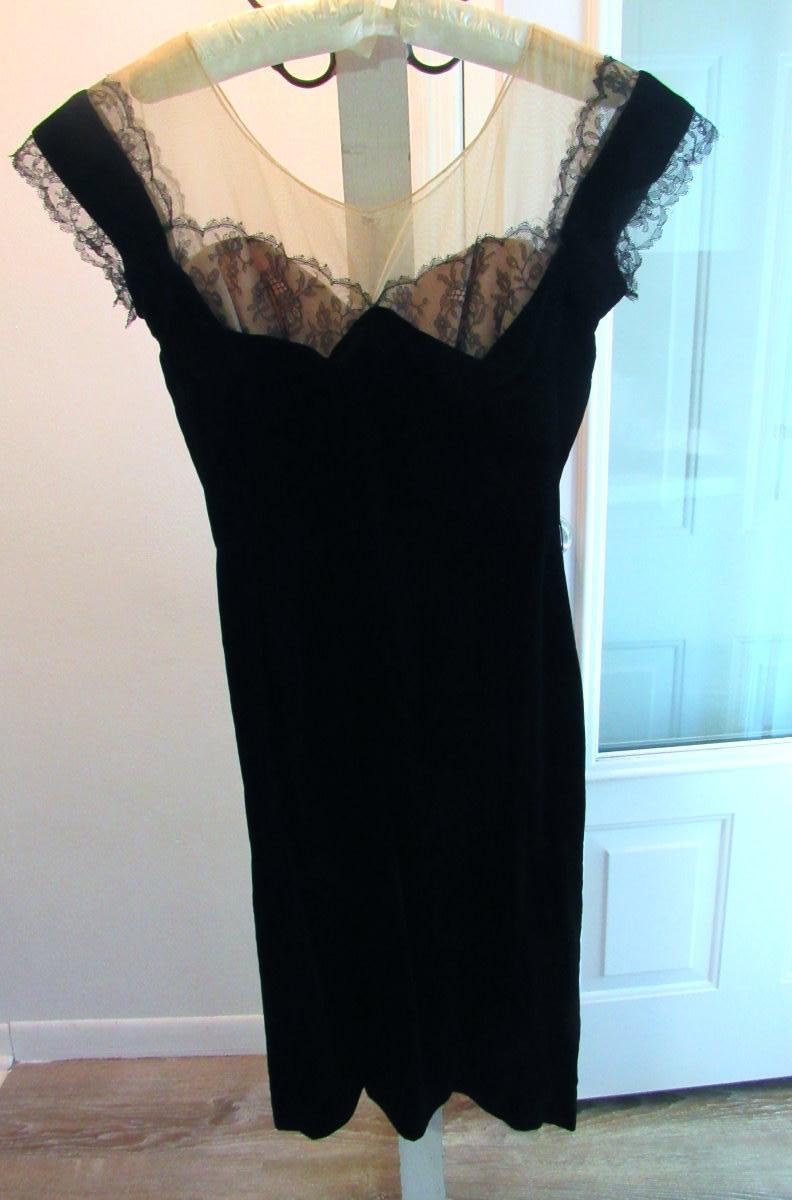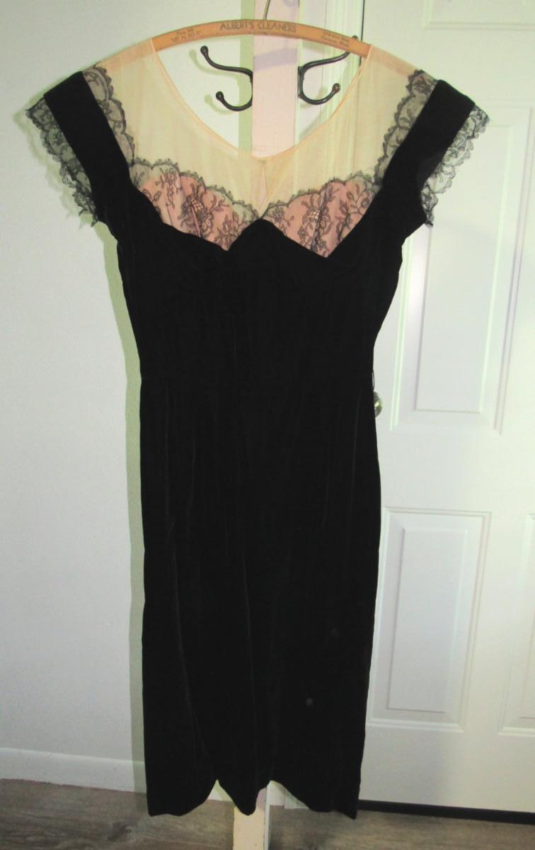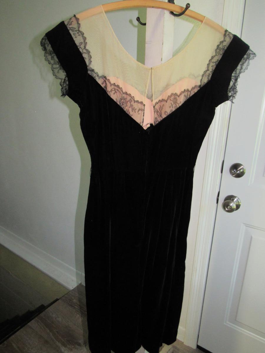 Lot 56:  Vintage 1940-50s Black Velvet Dress With Black Lace
