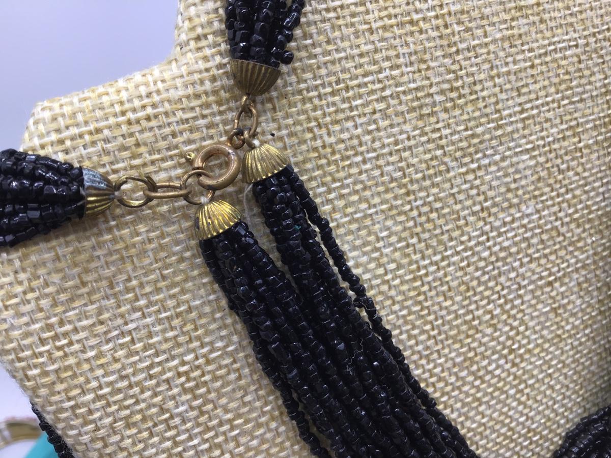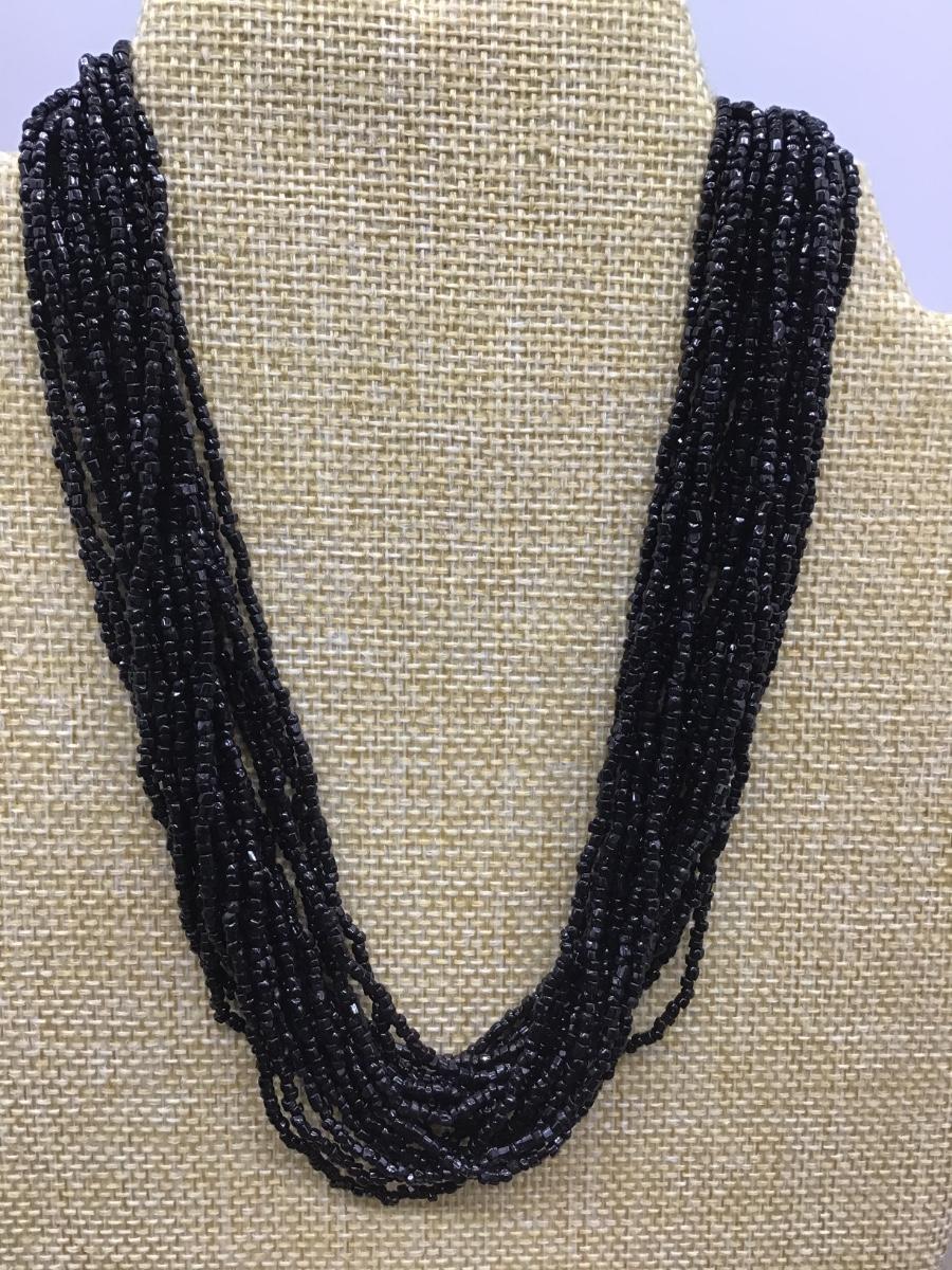 Vintage Black glass Beaded Necklace 2 Strand