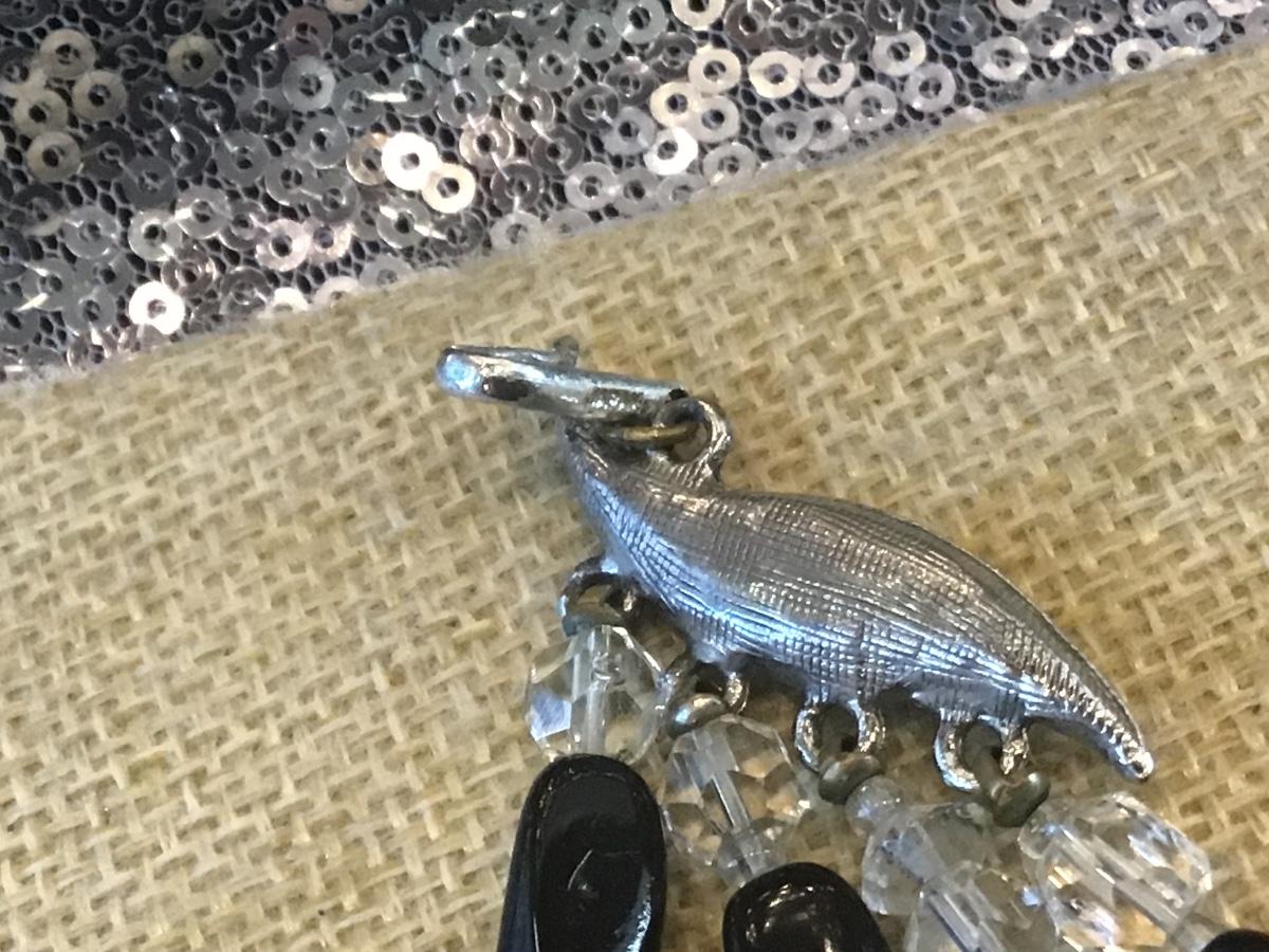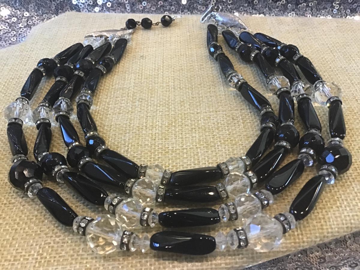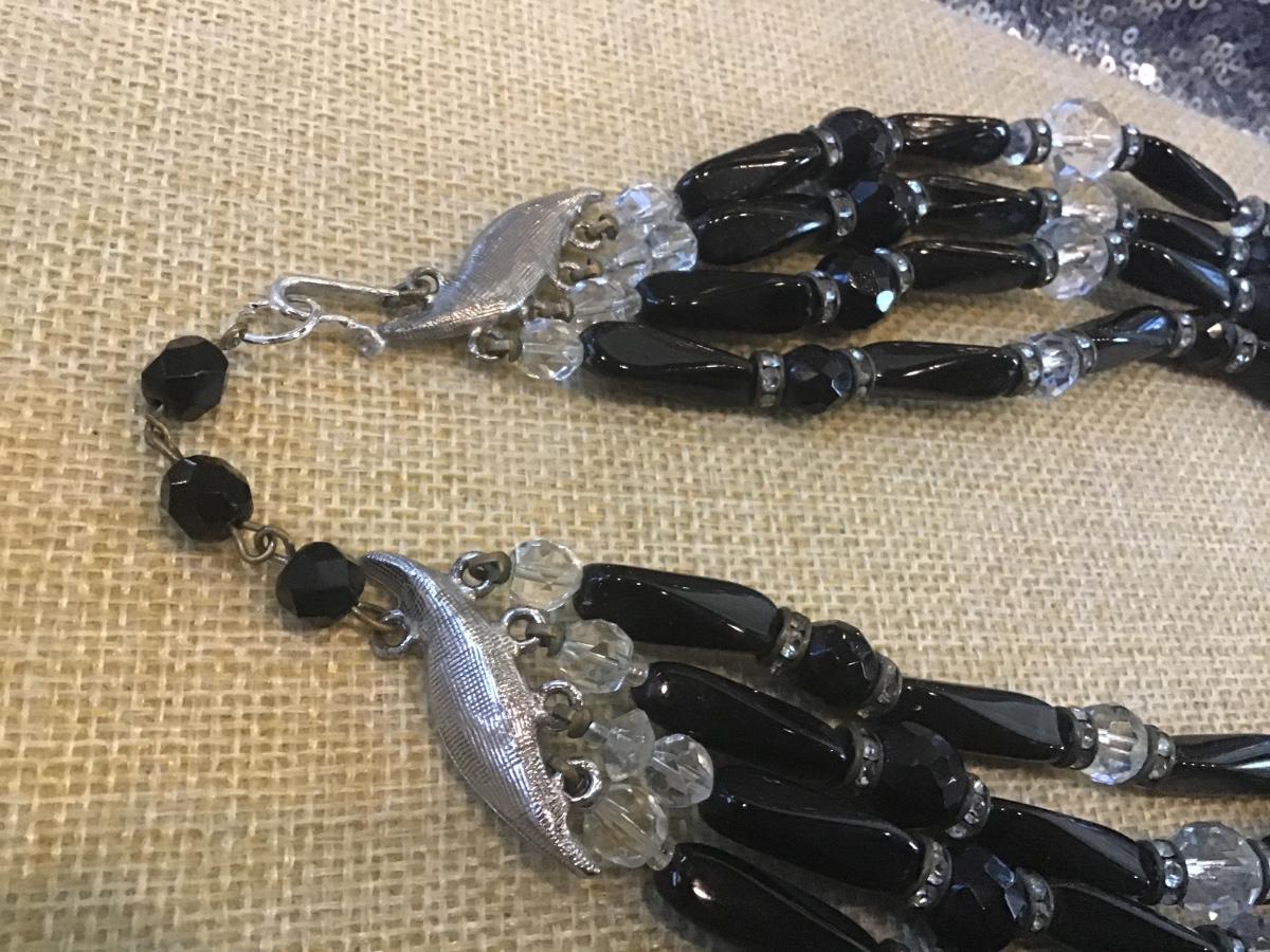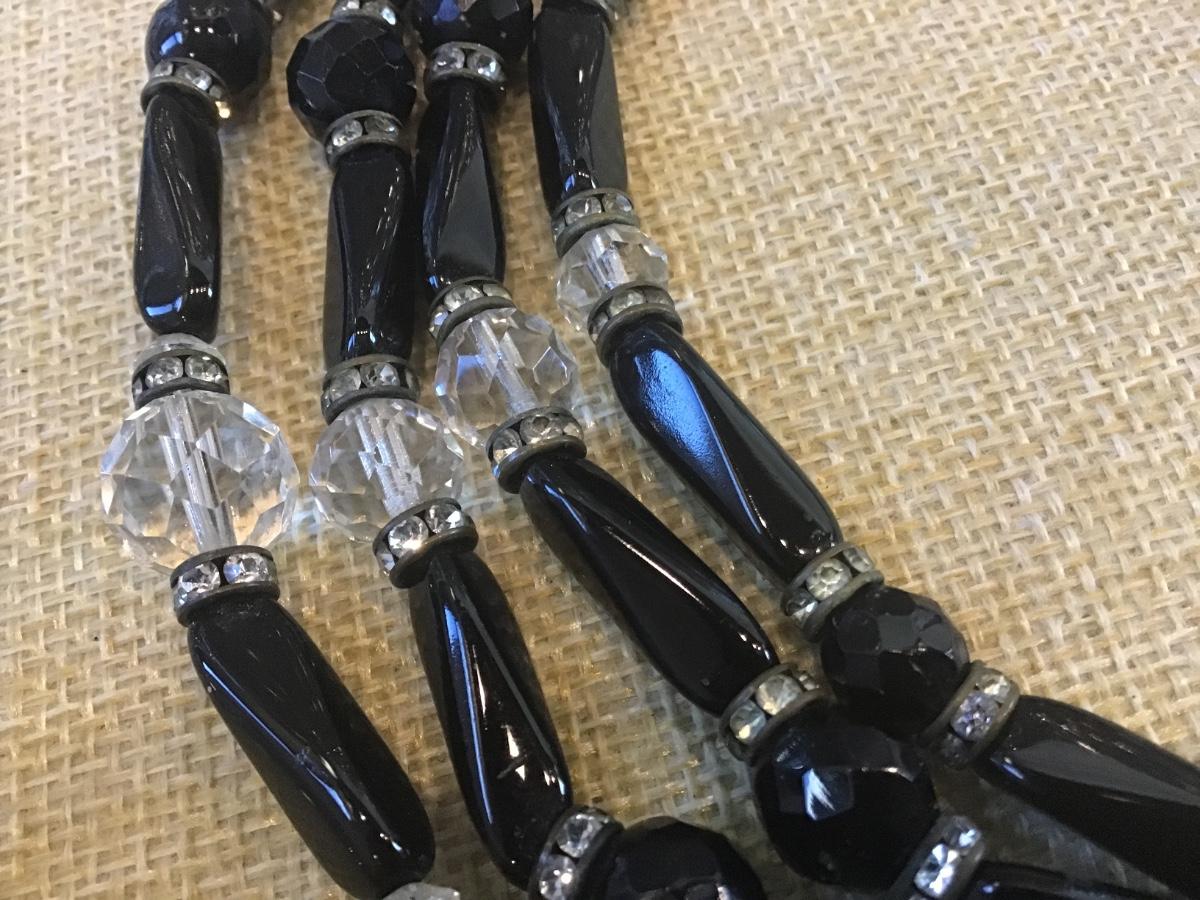 Vintage Black Glass Crystal Beaded Necklace. Japan