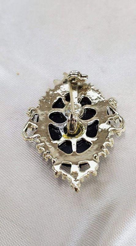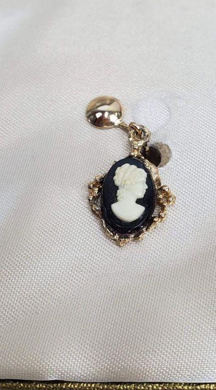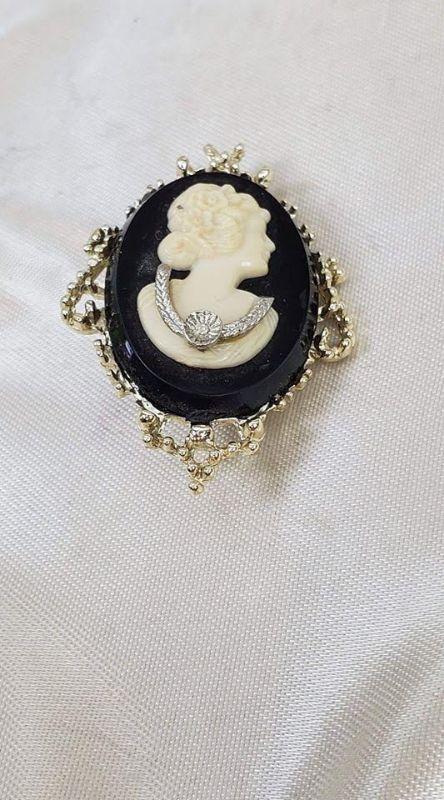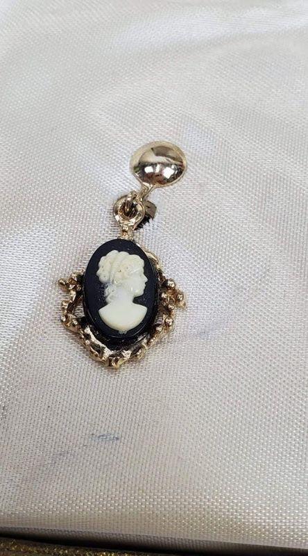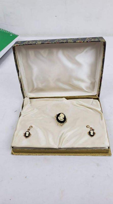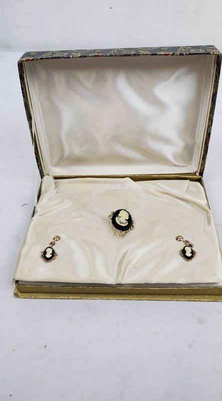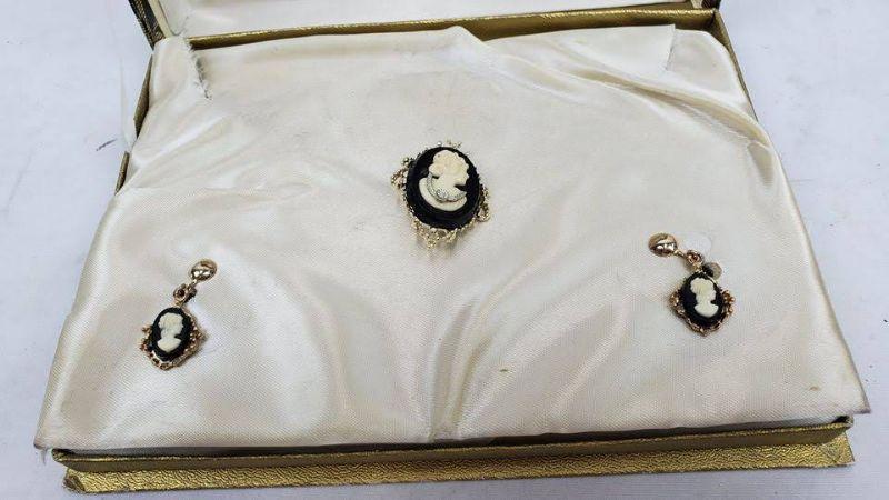 Vintage Black & Gold Cameo Pin & Clip on Earrings